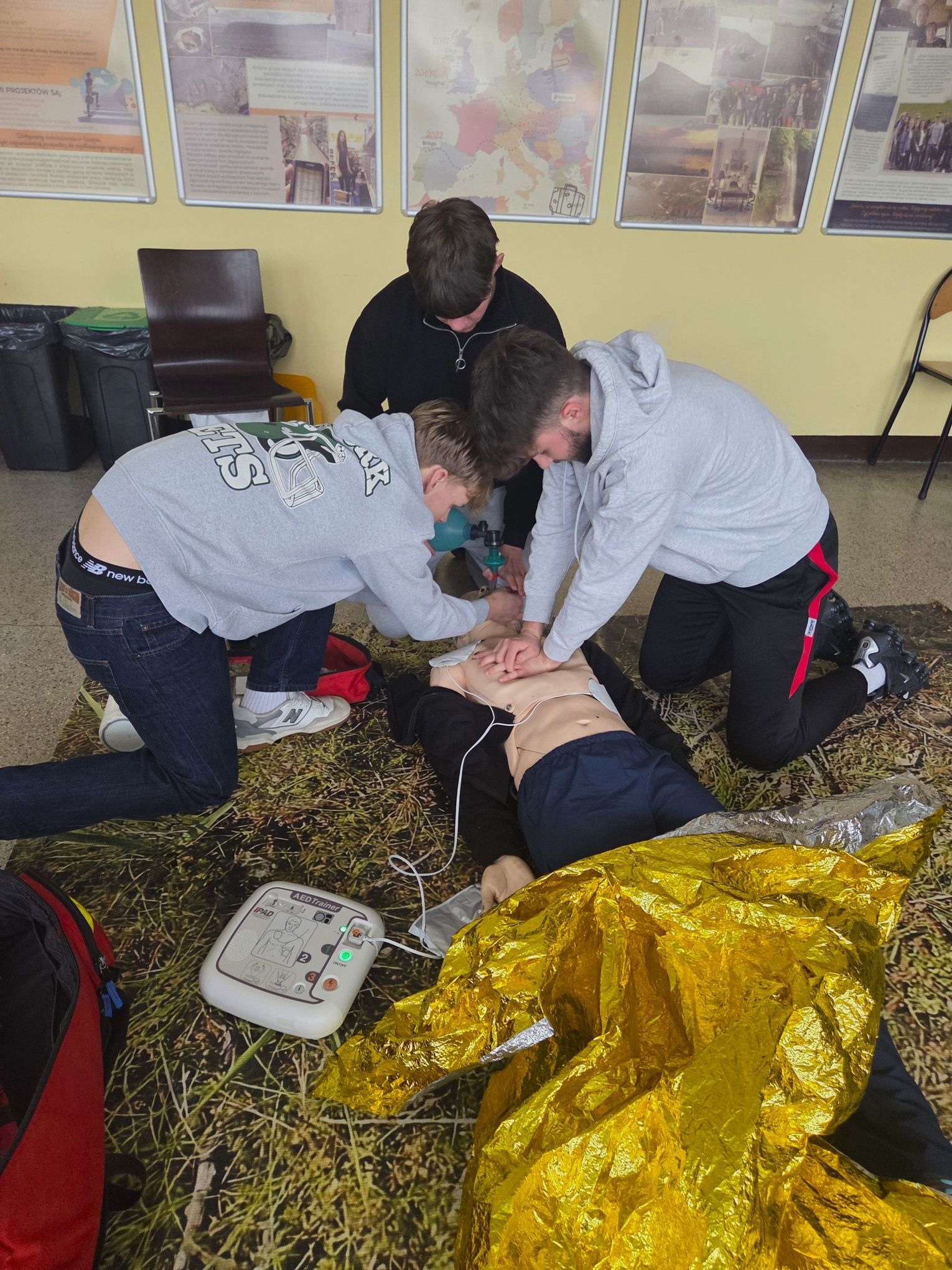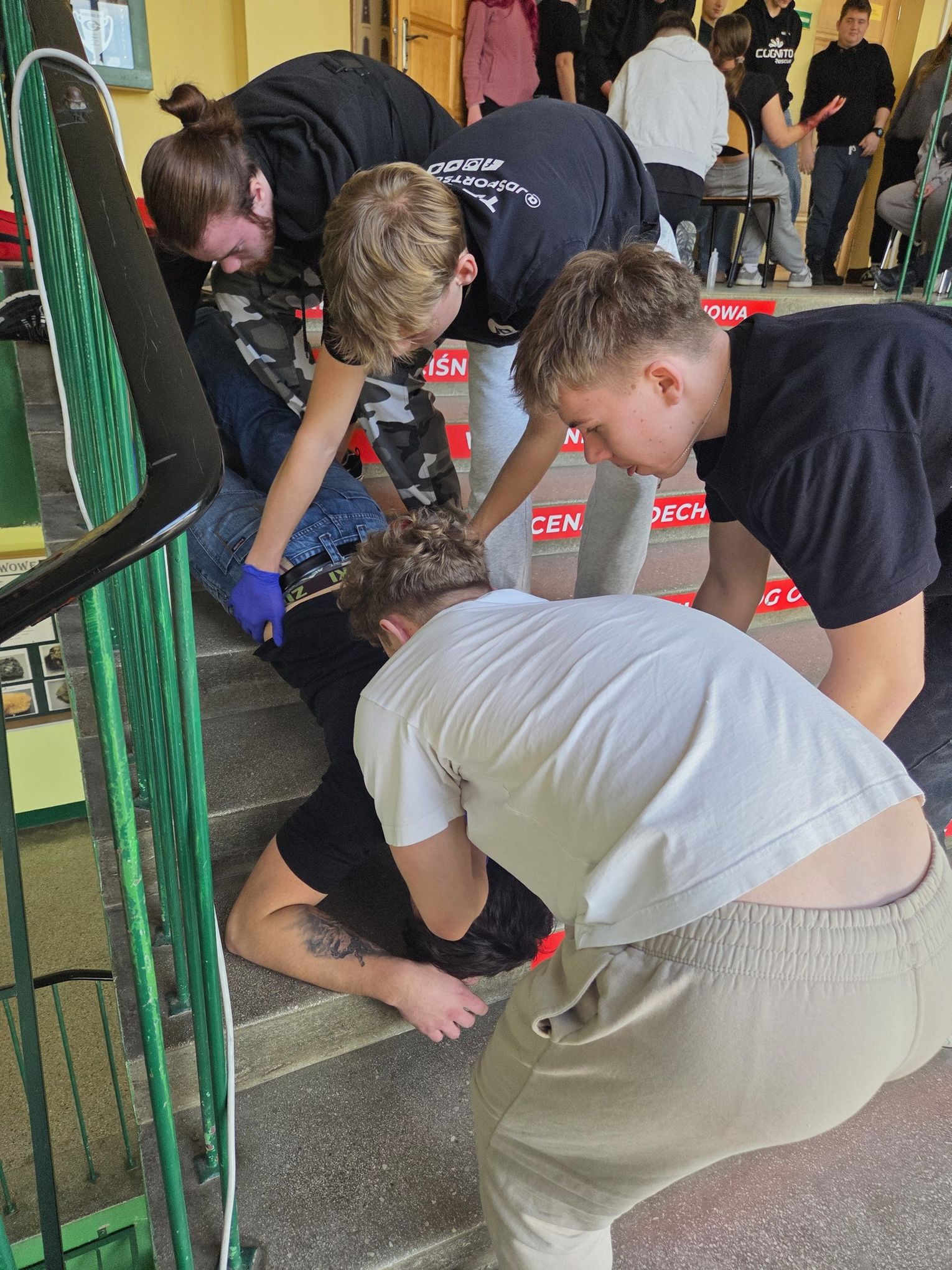 Szkolenie obejmowało zarówno zajęcia teoretyczne, jak i intensywne ćwiczenia praktyczne z zakresu ratownictwa. Uczniowie uczyli się m.in. oceny stanu poszkodowanego, prowadzenia resuscytacji krążeniowo-oddechowej, postępowania w urazach oraz zasad współpracy z systemem Państwowego Ratownictwa Medycznego.