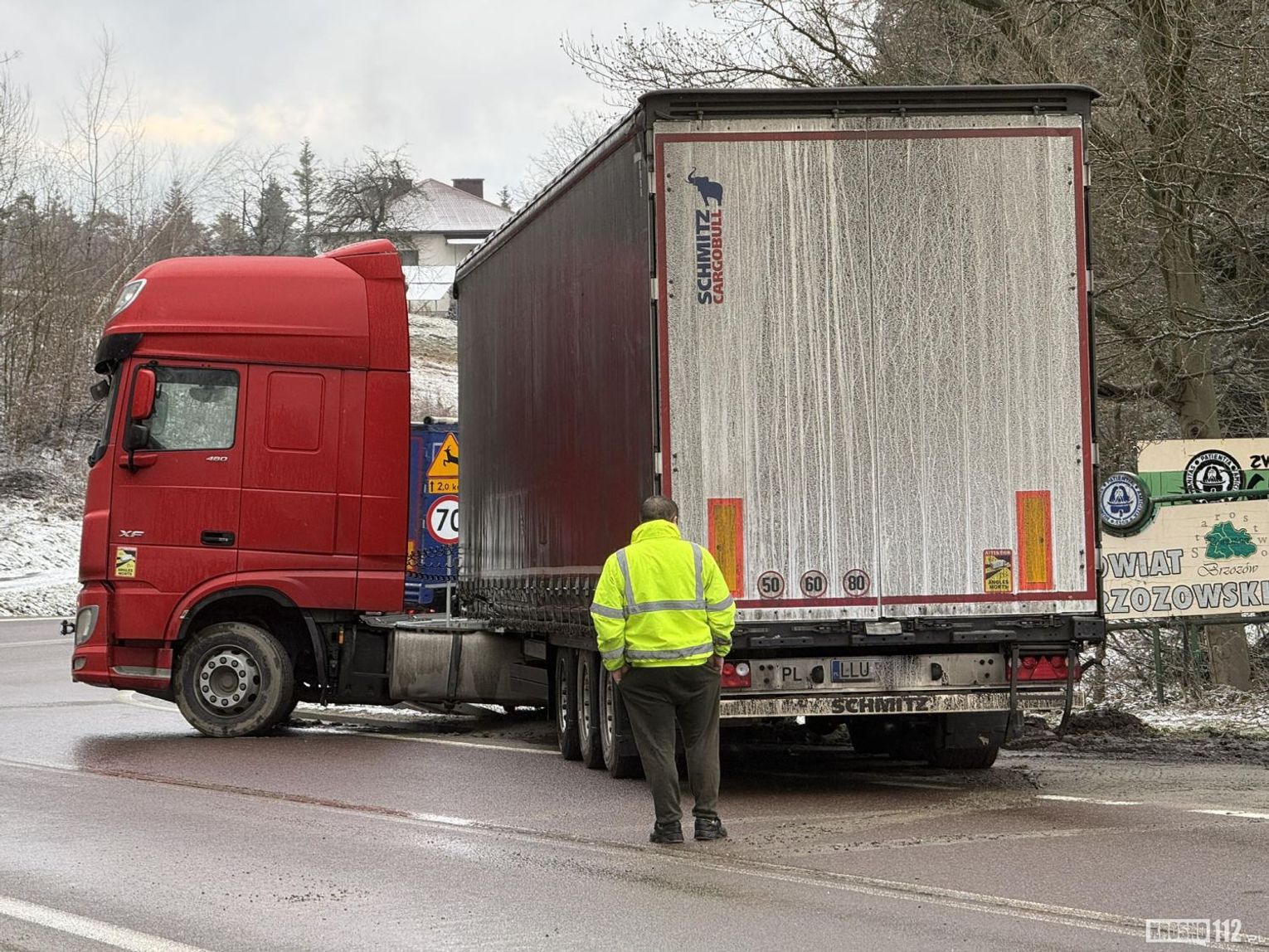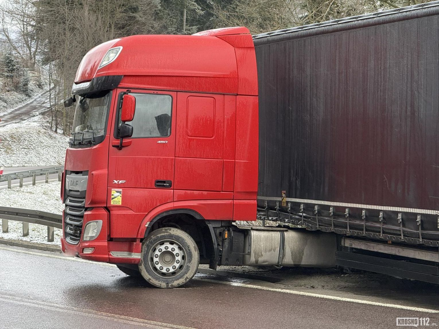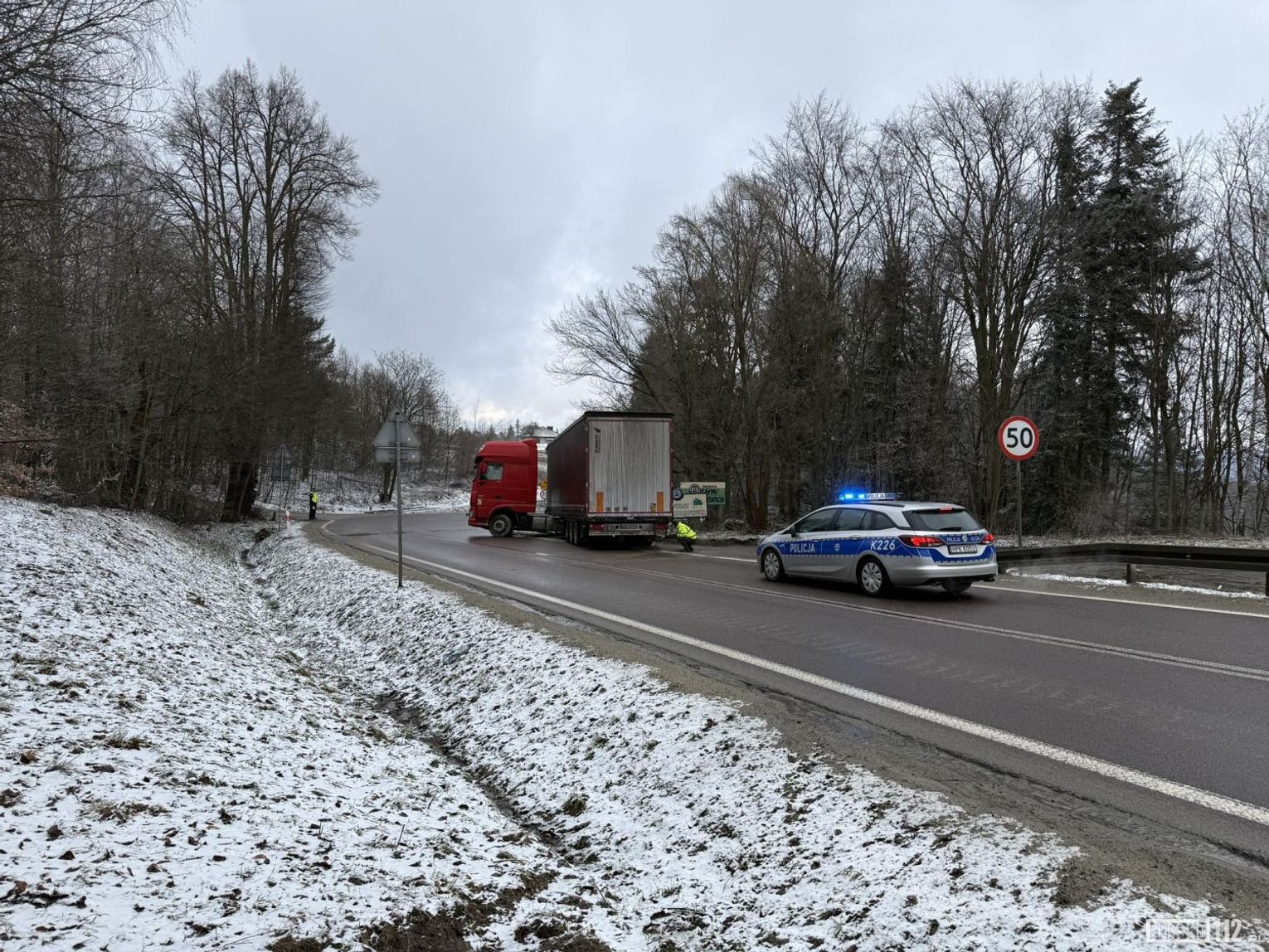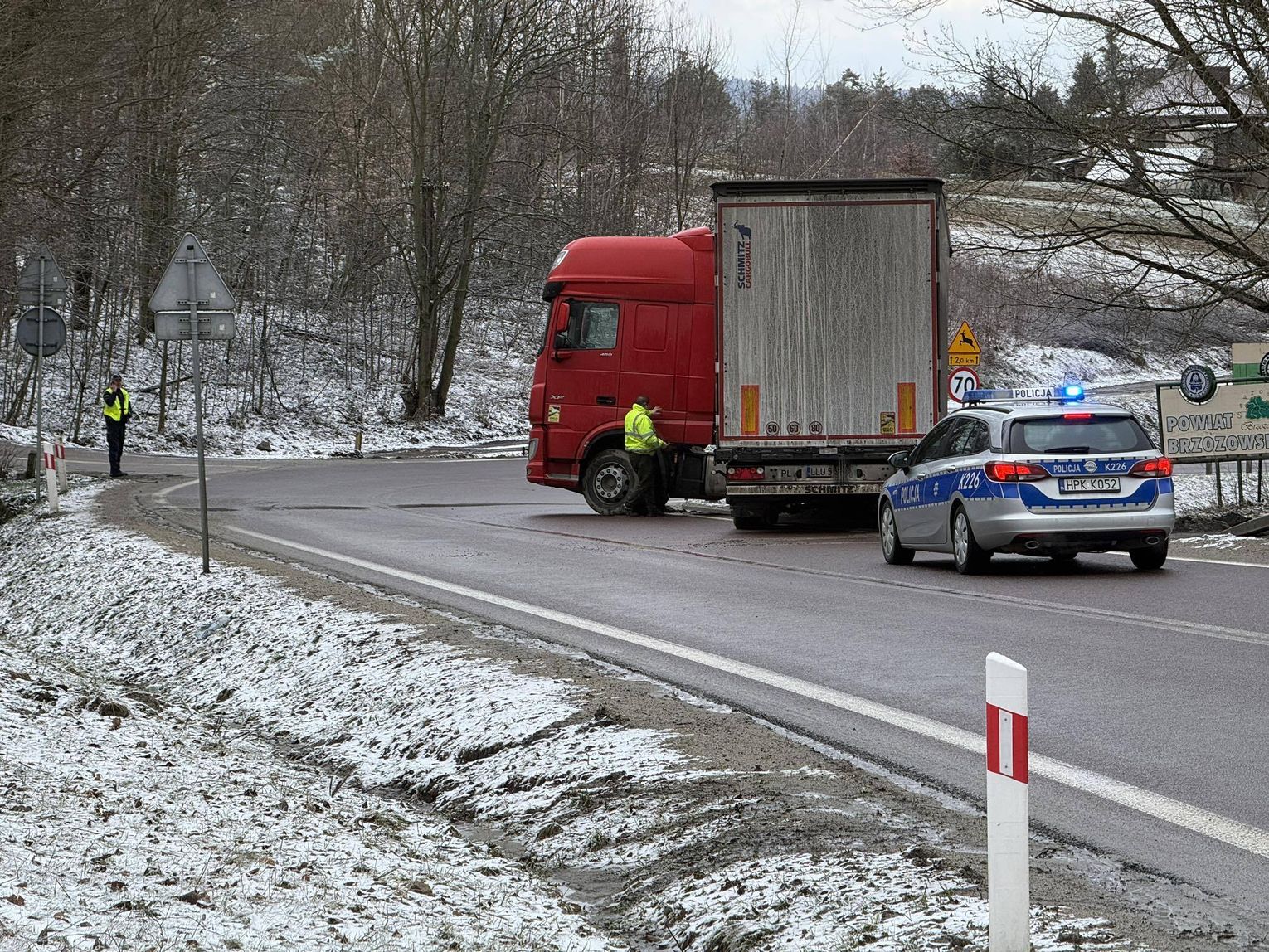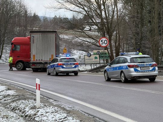 W miejscu zdarzenia ruch odbywa się wahadłowo. Po ciężarówkę wyjechała już Pomoc Drogowa. Miejsce zabezpieczają policjanci WRD KMP Krosno oraz PP Korczyna.