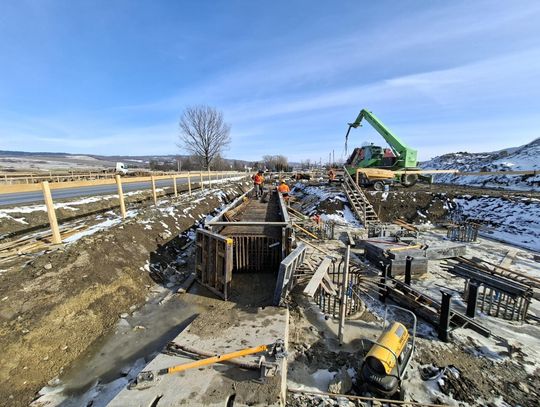 Znaczące postępy widać także w segmencie obiektów inżynierskich. Ekipy mostowe pracują jednocześnie na kilku estakadach oraz przy moście oznaczonym jako MD 44/1. W górzystym terenie Podkarpacia obiekty mostowe odgrywają szczególną rolę – umożliwiają bezpieczne pokonanie dolin, cieków wodnych i lokalnych dróg bez ingerencji w naturalny układ terenu.