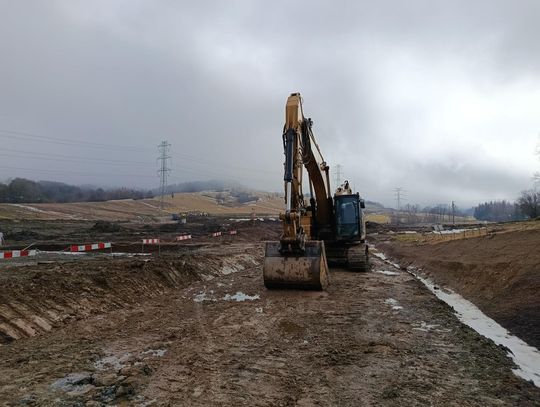Obecnie prowadzone są szeroko zakrojone roboty ziemne obejmujące wykopy i formowanie nasypów. To jeden z kluczowych etapów przygotowania przyszłej trasy ekspresowej – od jakości i stabilności podłoża zależy trwałość całej konstrukcji drogi.