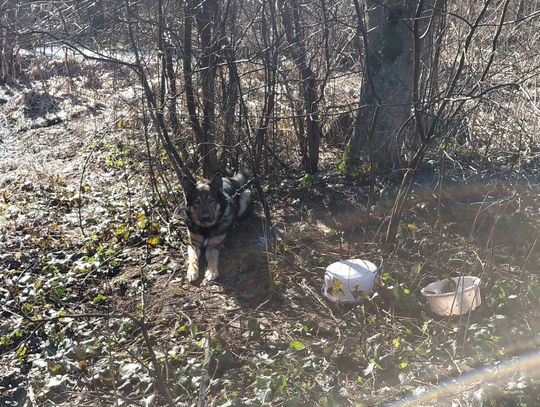 - Piesek był młody, ale w dobrej kondycji, ktoś, kto go porzucił zostawił przy nim dwie miski plastikowe, które były już puste, natomiast smycz owinięta wokół drzewa i zarośli nie pozwalała psu na swobodne ruchy - opowiada Rafał Wróblewski, szef Straży Leśnej z Nadleśnictwa Rymanów.