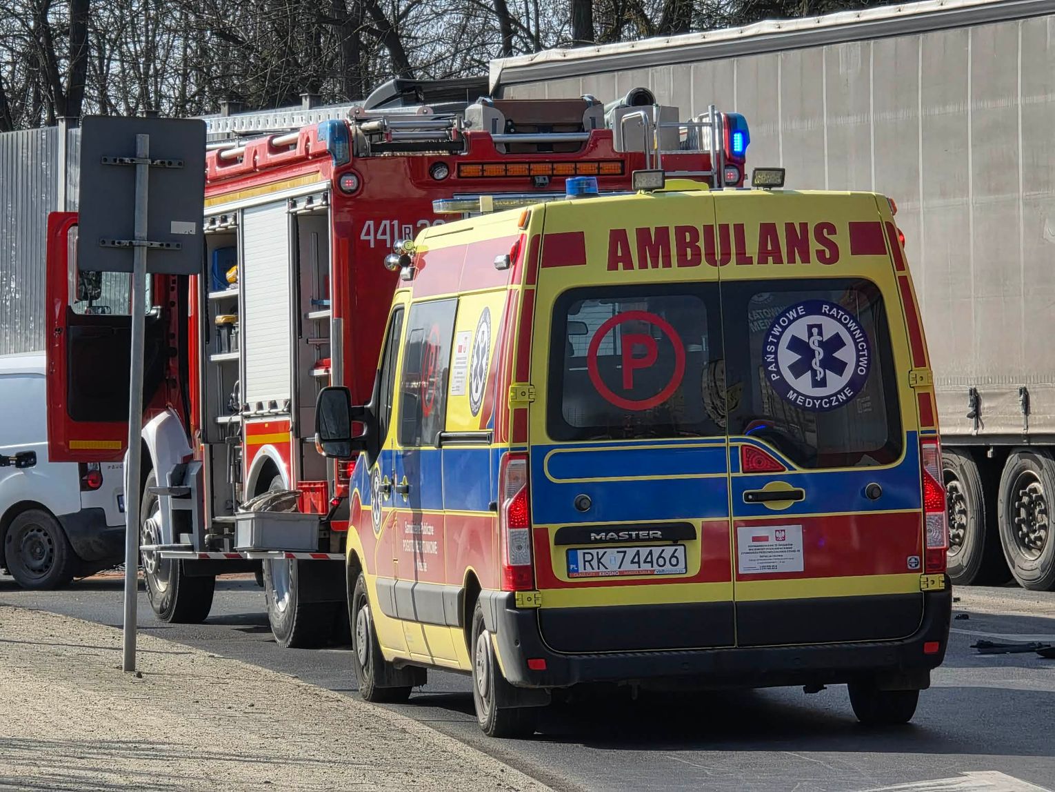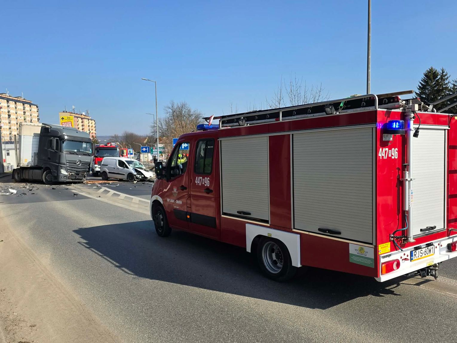 Na miejscu pracowały zastępy z JRG PSP Jasło, druhowie z KSRG OSP Trzcinica oraz OSP Jasło-Żółków, podstawowy zespół ratownictwa medycznego z Samodzielnego Publicznego Pogotowia Ratunkowego w Krośnie – podstacja w Jaśle, a także funkcjonariusze z KPP Jasło.