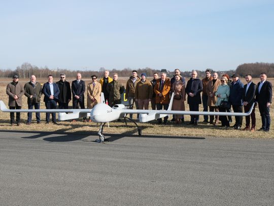 Po spotkaniu w laboratorium sieci 5G PANS uczestnicy przejechali na lotnisko, gdzie spółka Ekolot Aerospace&Defense, która współpracuje z krośnieńską uczelnią, zaprezentowała swój produkt – drona nowej generacji.