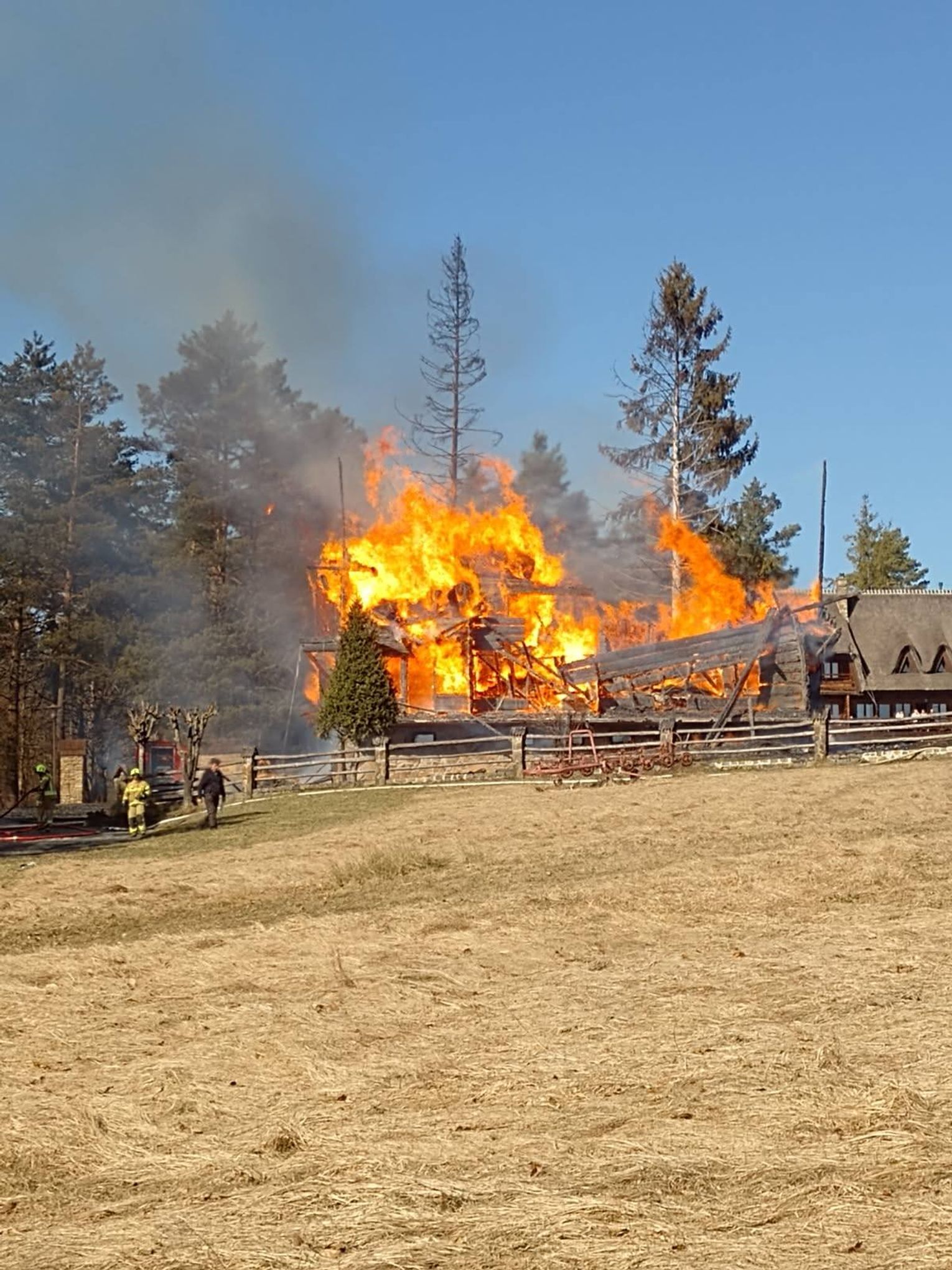 - Informacja o pożarze wpłynęła do służb około godziny 11.30. Na miejsce skierowano łącznie 13 zastępów straży pożarnej. Gdy strażacy dotarli na miejsce, cały drewniany budynek był już objęty ogniem - informuje st. bryg. Marcin Betleja z KW PSP w Rzeszowie.