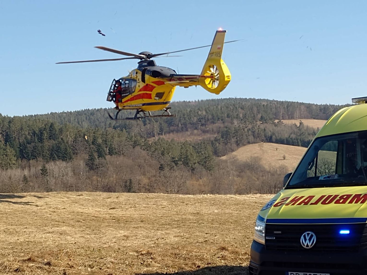 + W dniu dzisiejszym o godz.12:18 Dyspozytornia Medyczna DM 09 01 Rzeszów zadysponowała nasz Zespół Ratownictwa Medycznego R 01 152 Bircza do pacjentki z urazem głowy w miejscowości Trójca gmina Ustrzyki Dolne. Po przybyciu w miejsce wezwania okazało się, że 51-letnia kobieta doznała dużej rany tłuczonej głowy wskutek uderzenia przez spadający przedmiot podczas pożaru budynku. ZRM zabezpieczył pacjentkę, która następnie została przetransportowana do SOR w Sanoku przez Ratownika 10 HEMS Sanok - informuje WSPR Przemyśl.