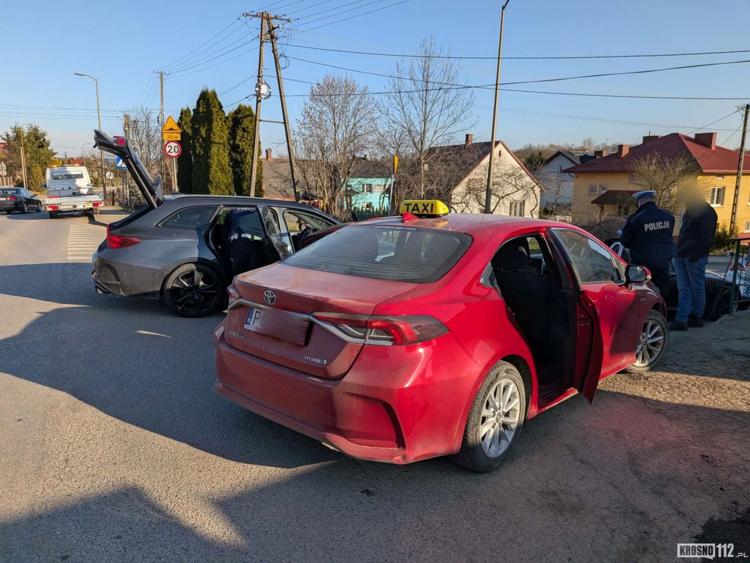 Z ustaleń policjantów wynika, że kobieta kierująca taksówką nie udzieliła pierwszeństwa przejazdu kierującemu BMW. W wyniku tego doszło do bocznego zderzenia obu pojazdów. Na szczęście w zdarzeniu nikt nie odniósł obrażeń.