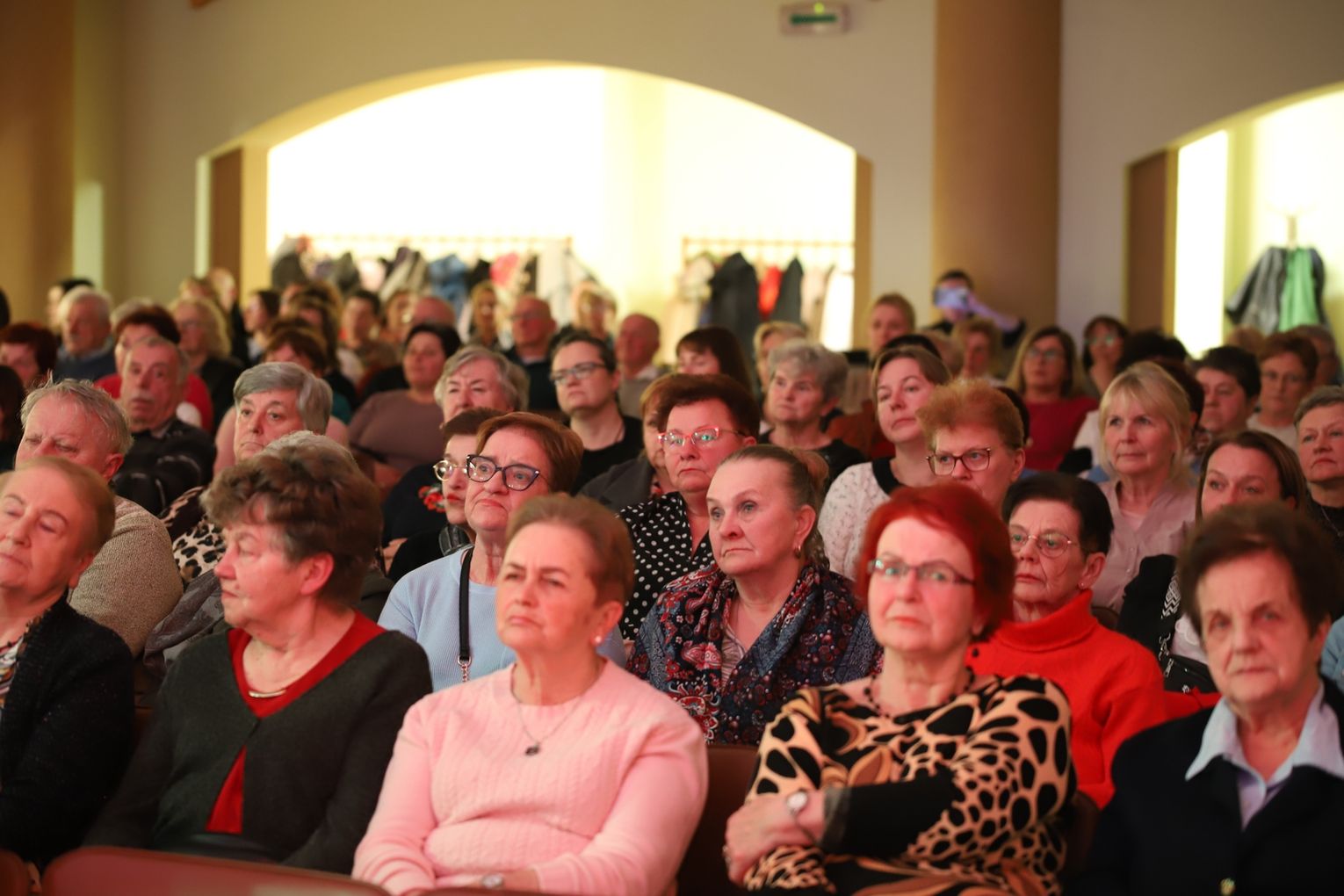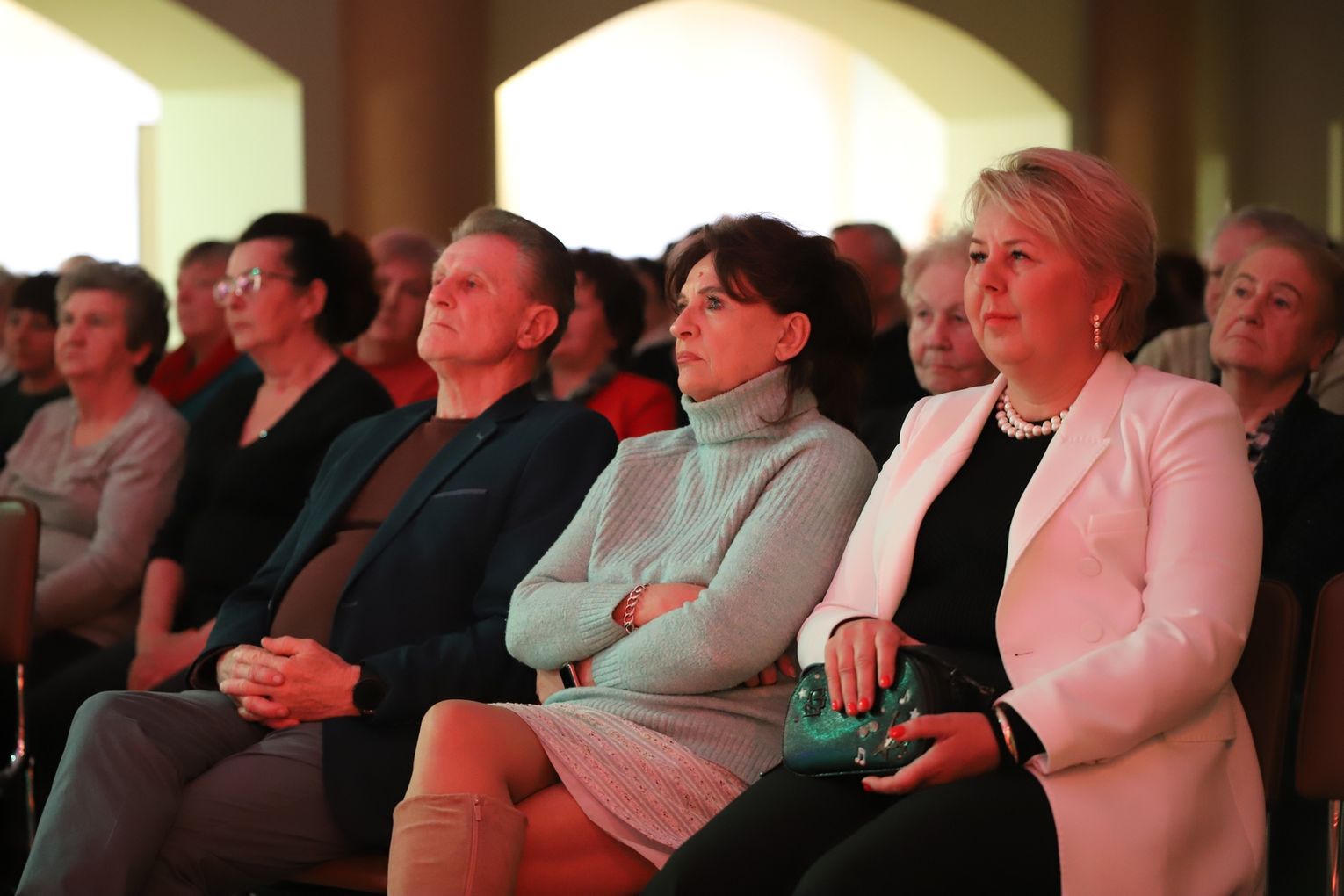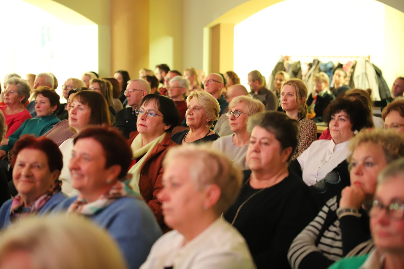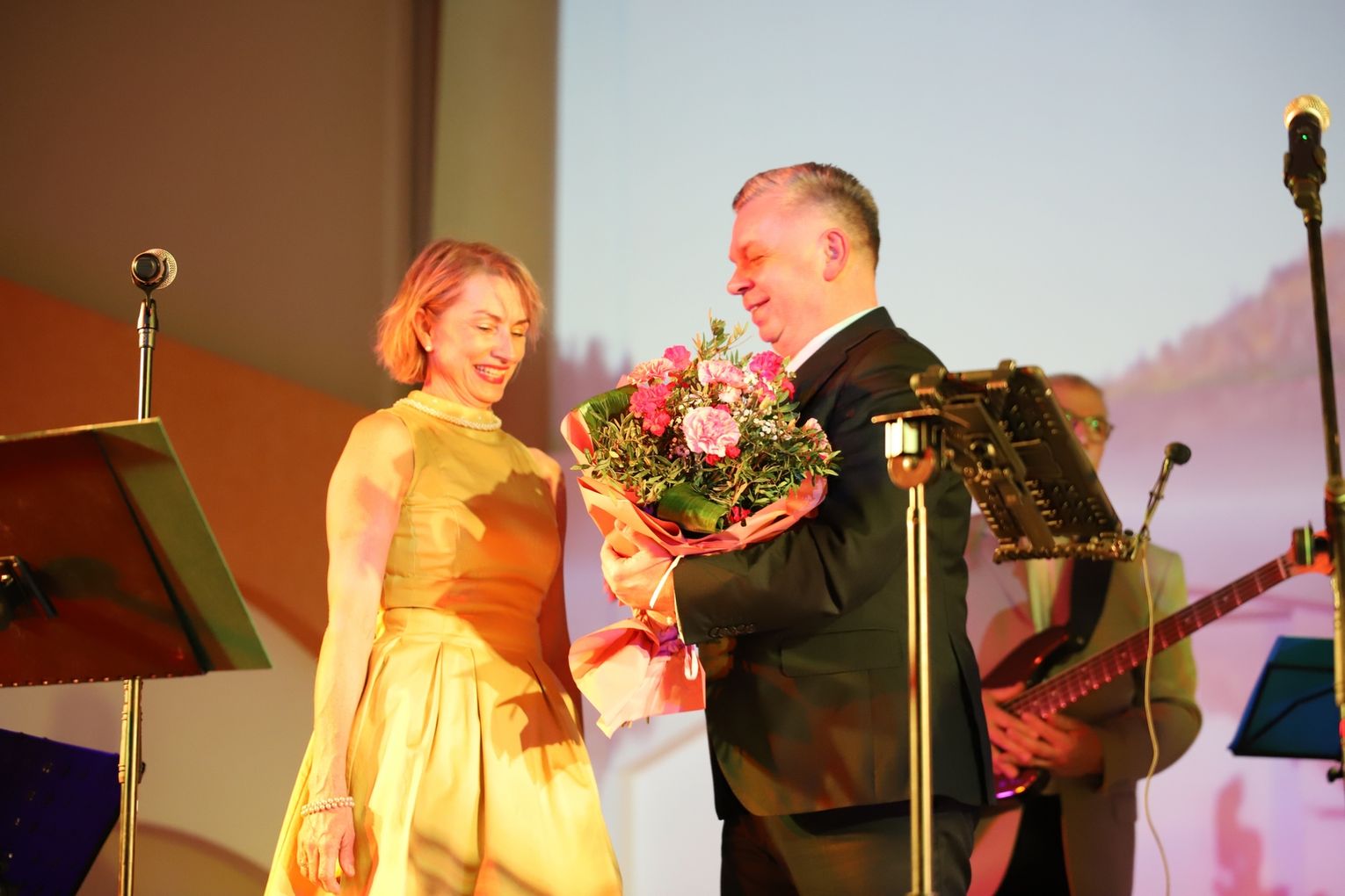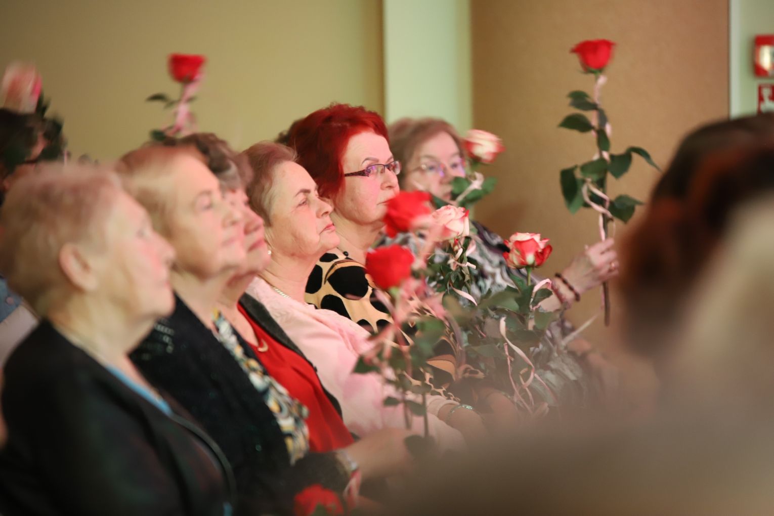 Nie zabrakło również ciepłych słów skierowanych do wszystkich pań obecnych na sali. Burmistrz, w towarzystwie radnego Wojciech Uram oraz muzyków zespołu, wręczył kobietom kwiaty, podkreślając świąteczny charakter spotkania.