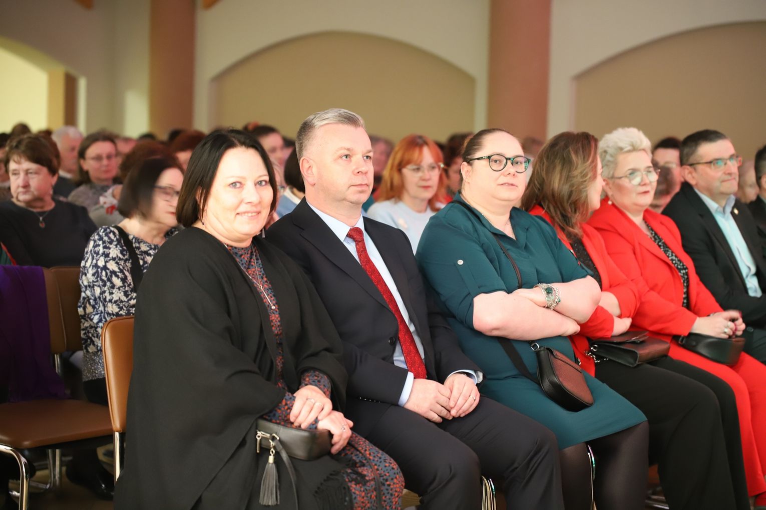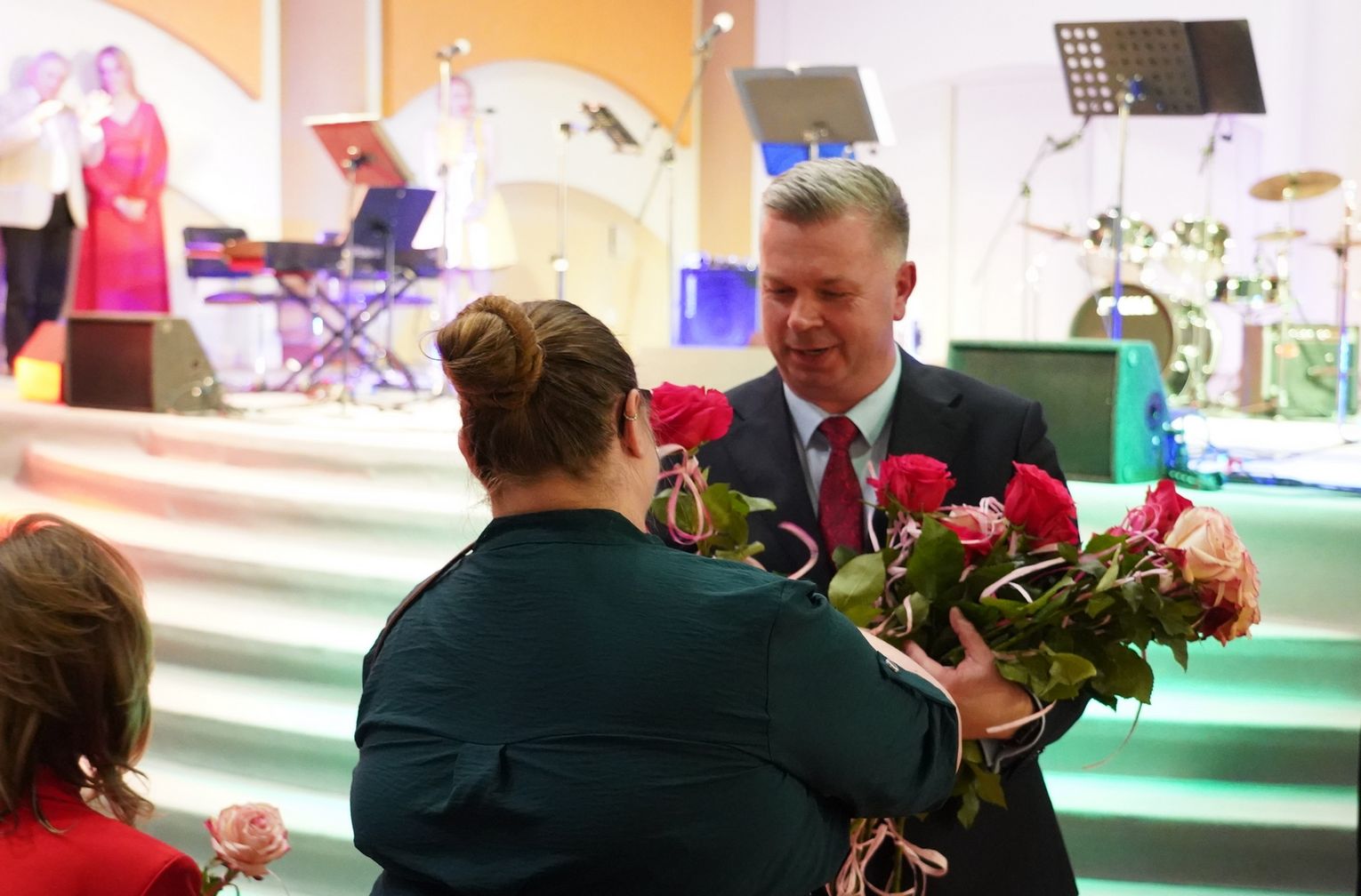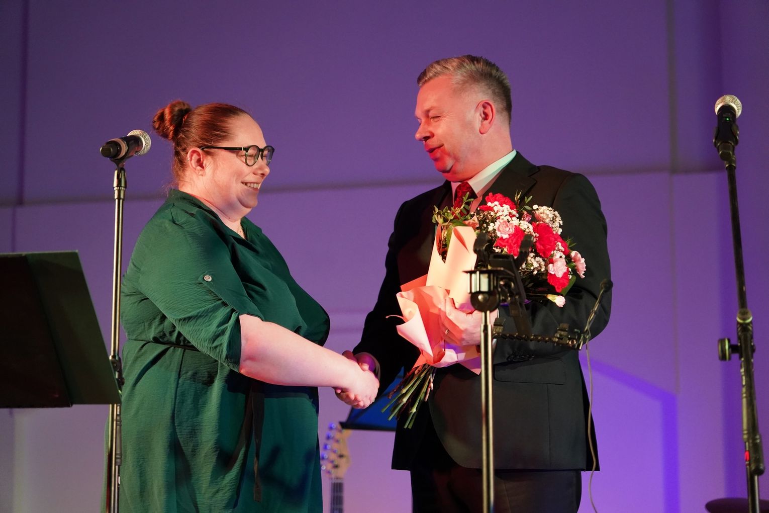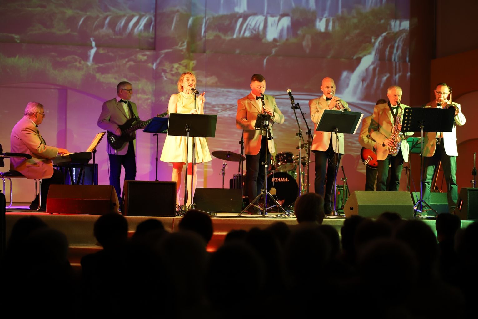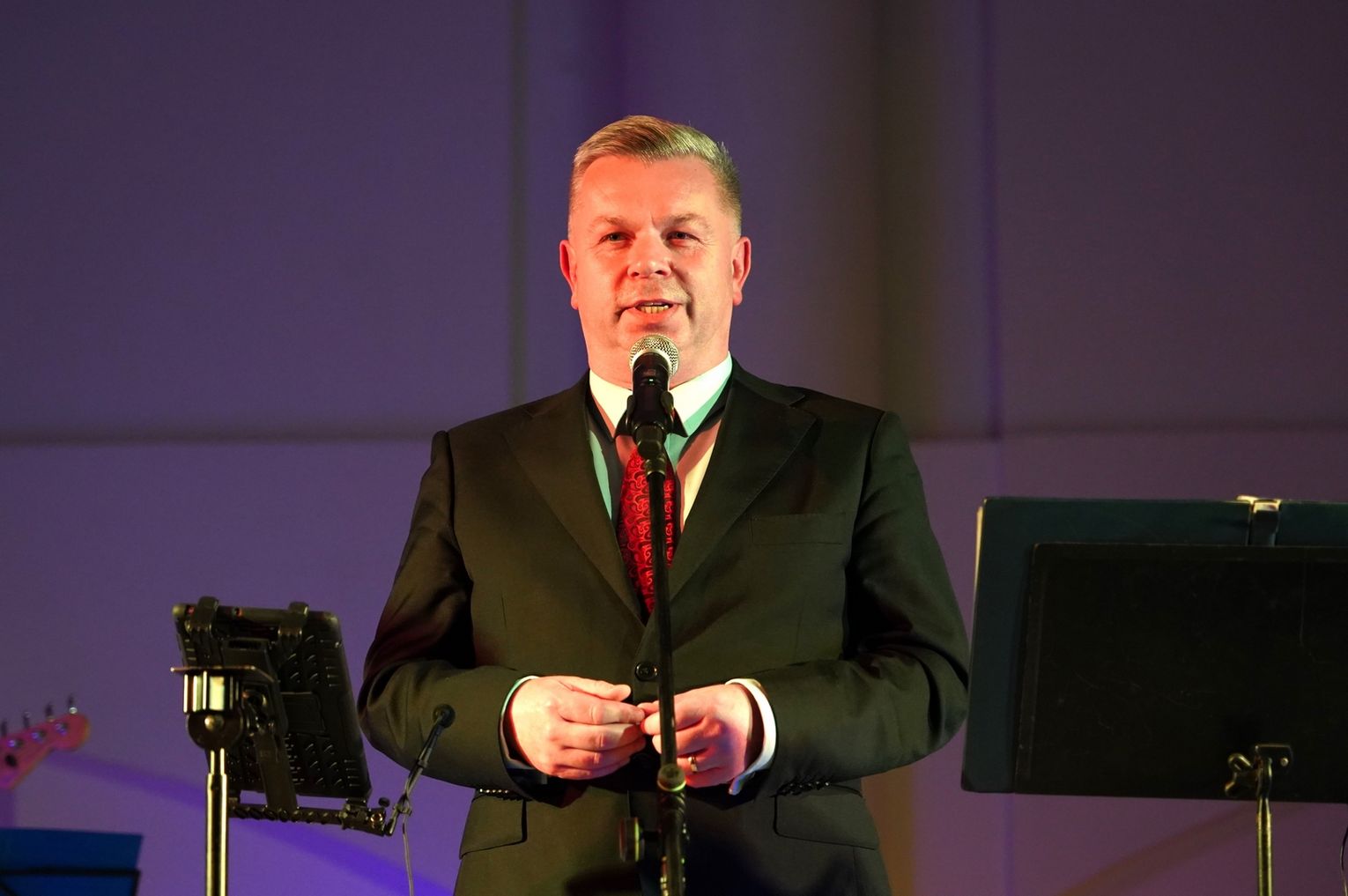 Nie zabrakło również ciepłych słów skierowanych do wszystkich pań obecnych na sali. Burmistrz, w towarzystwie radnego Wojciech Uram oraz muzyków zespołu, wręczył kobietom kwiaty, podkreślając świąteczny charakter spotkania.