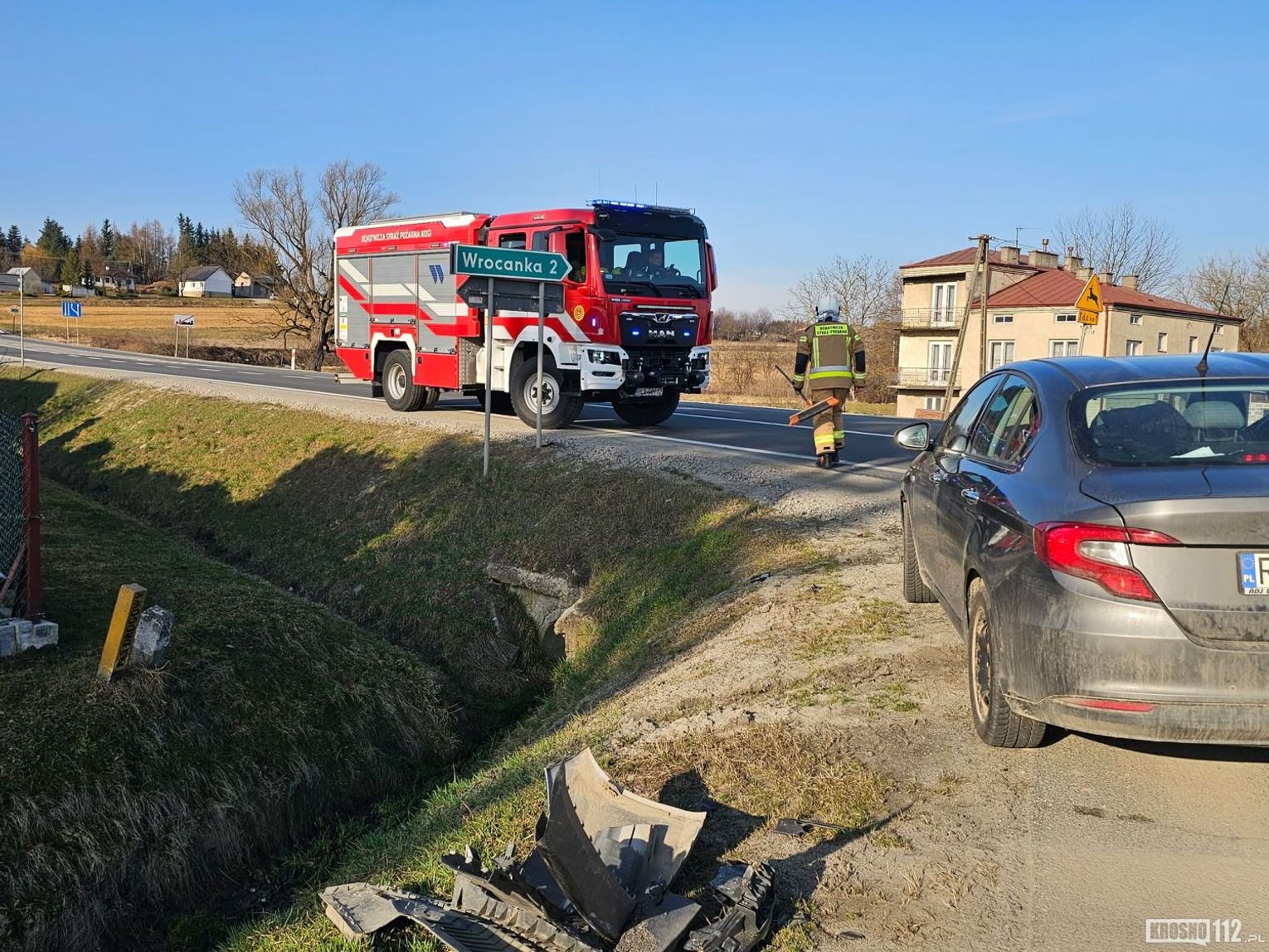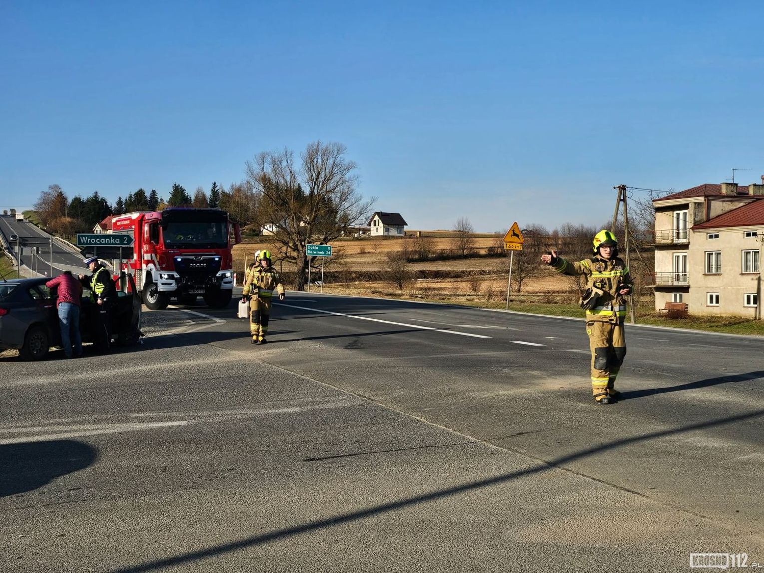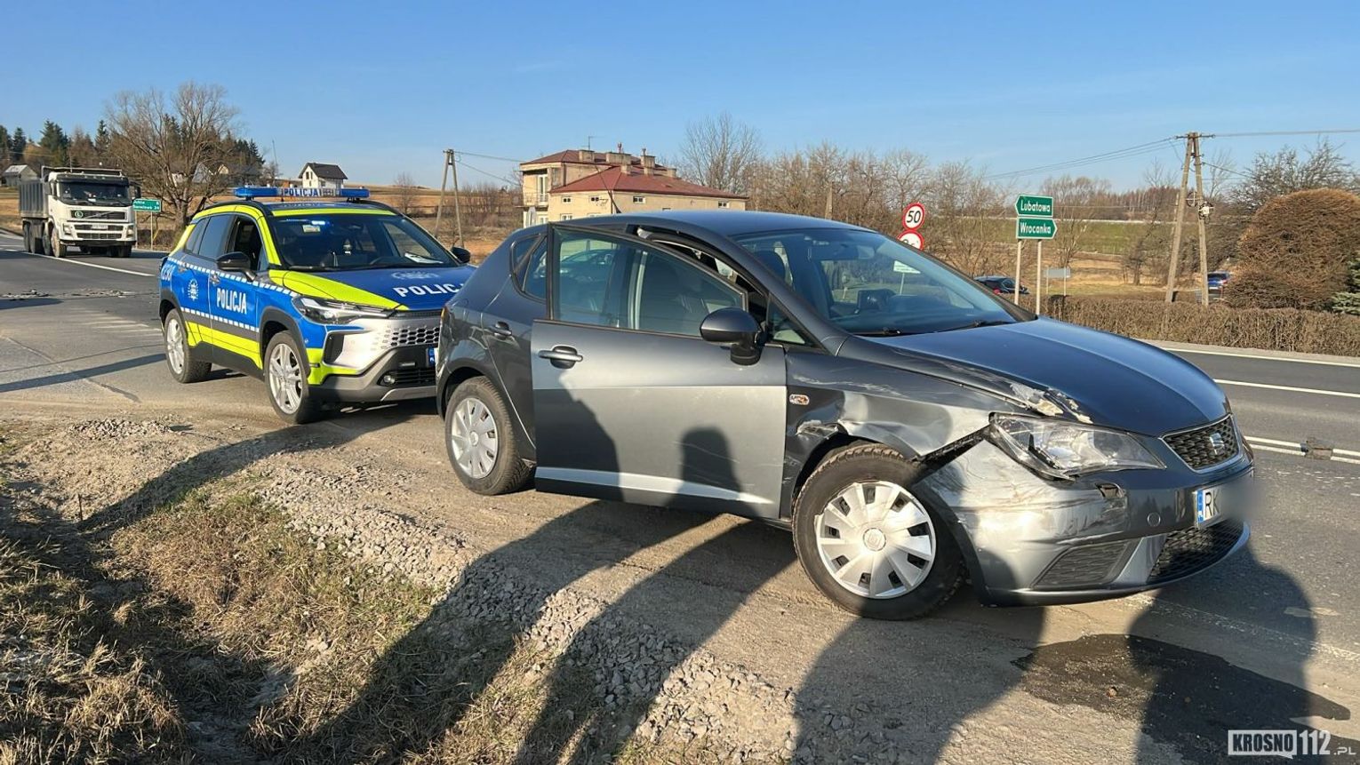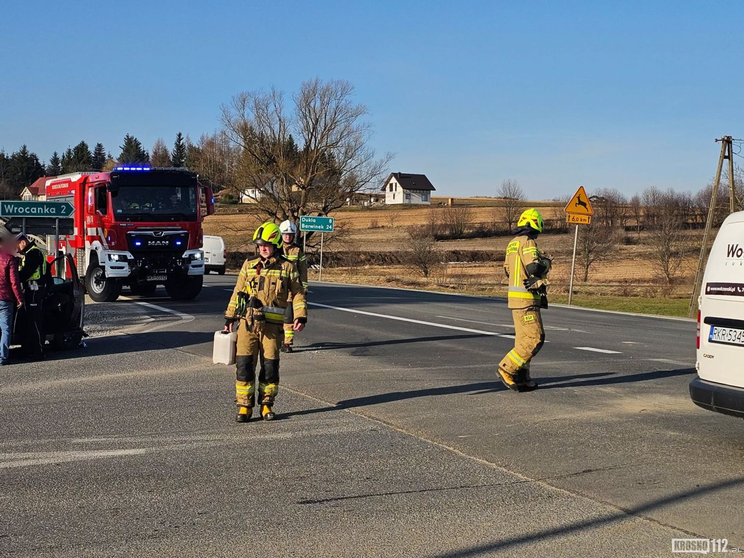 Na miejsce wezwano policjantów WRD KMP w Krośnie, którzy wyjaśniają okoliczności zdarzenia. Na szczęście nikt nie został ranny.