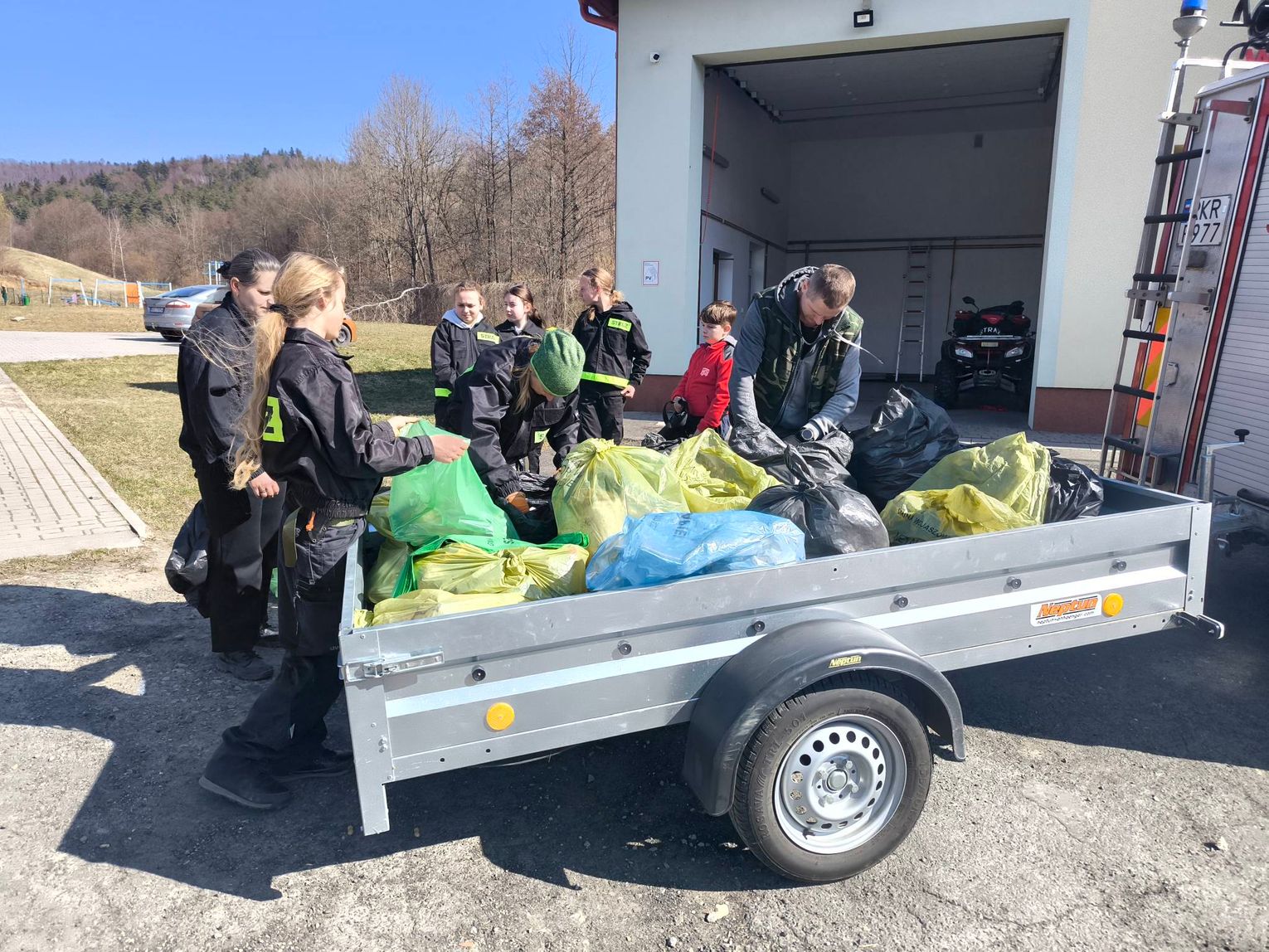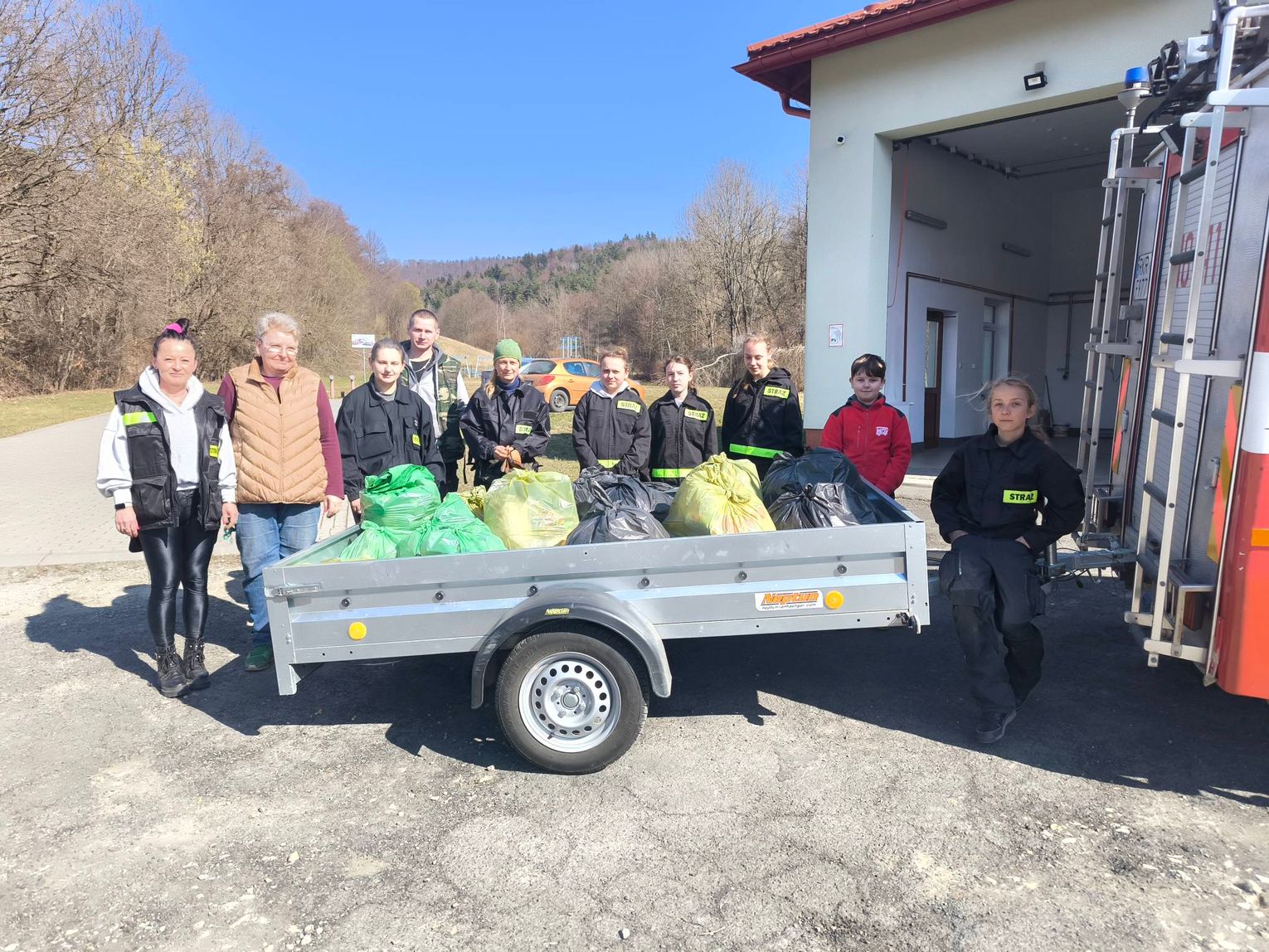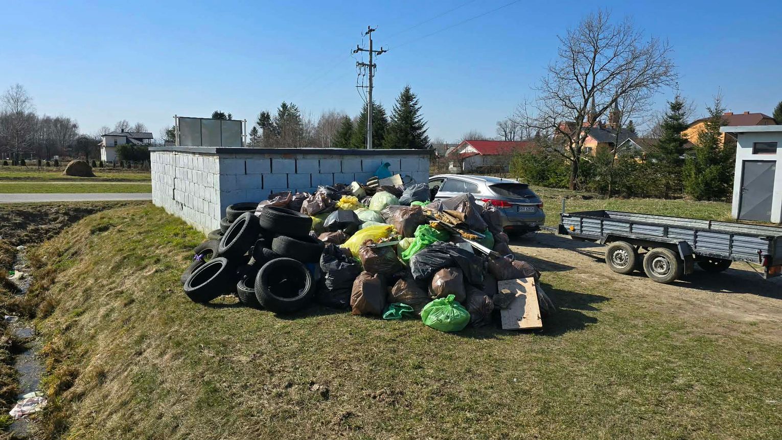Uczestnicy podzielili się na grupy i wyruszyli w różne rejony obu miejscowości – wzdłuż dróg, w okolice lasów, potoków oraz terenów rekreacyjnych. W ciągu kilku godzin zebrano liczne worki odpadów pozostawionych w przydrożnych rowach i na nieużytkach. W sumie zebrano 180 worów odpadów i 30 starych opon.