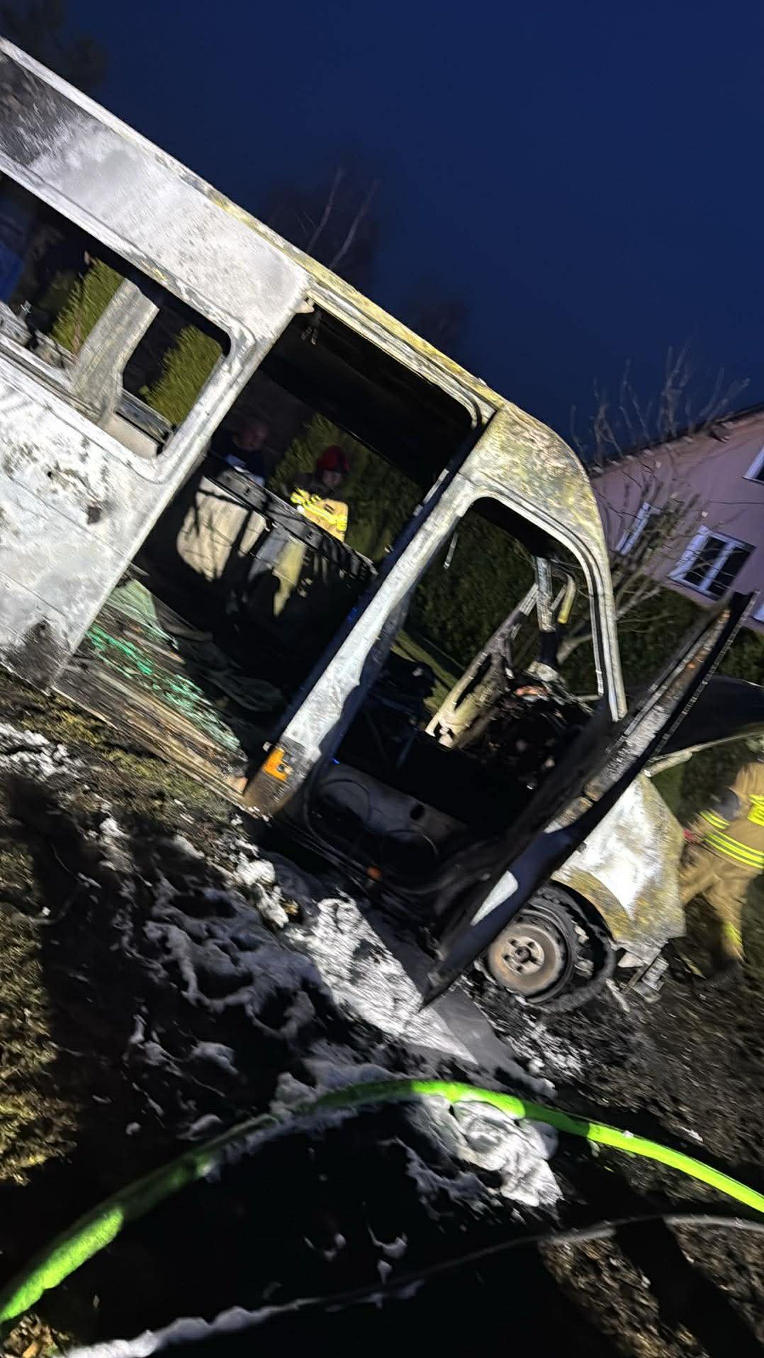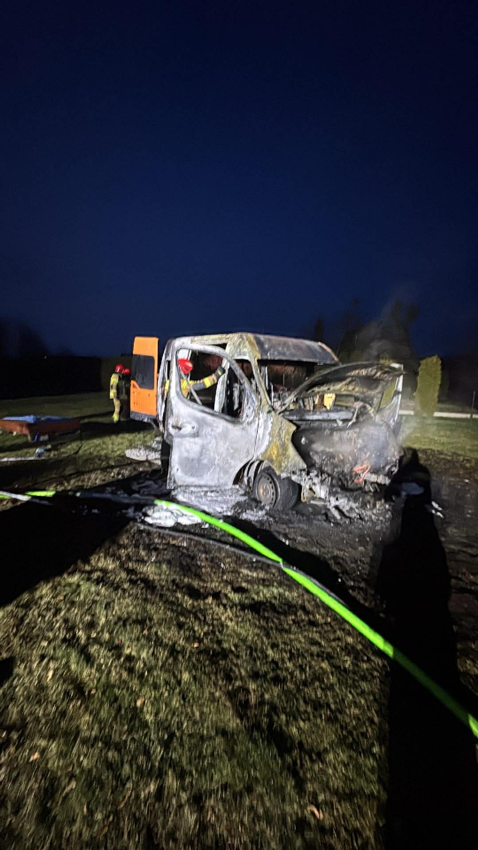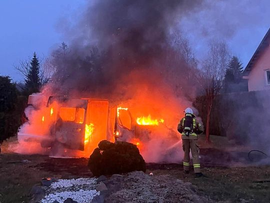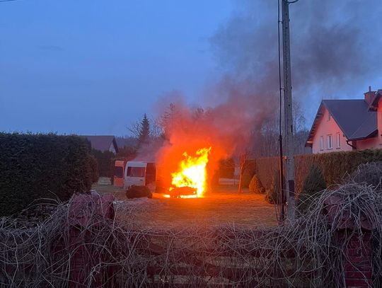 Po dojedzie pierwszego zastępu stwierdzono rozwinięty pożar busa / samochodu dostawczego. Na szczęście nikt nie odniósł obrażeń.