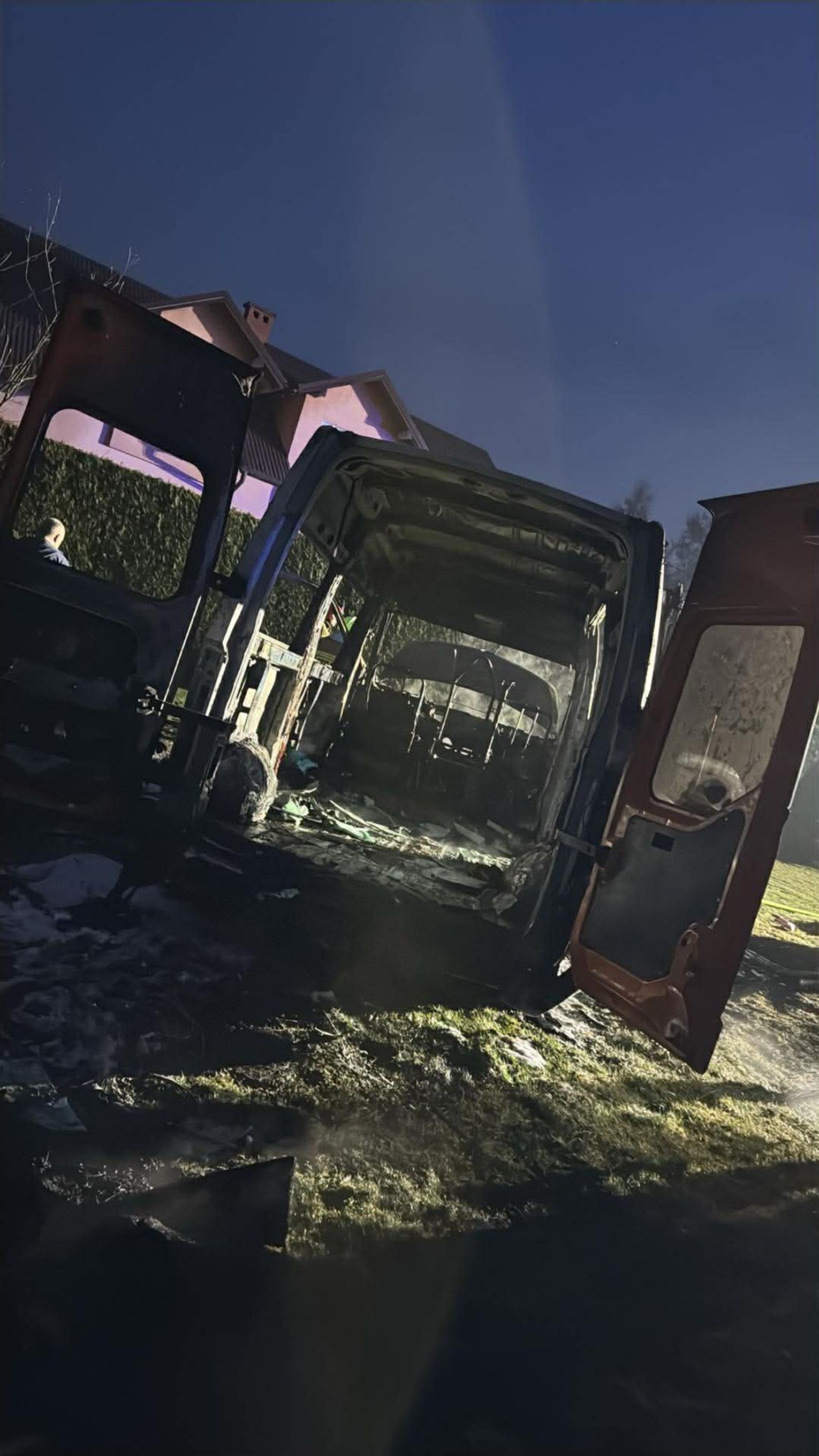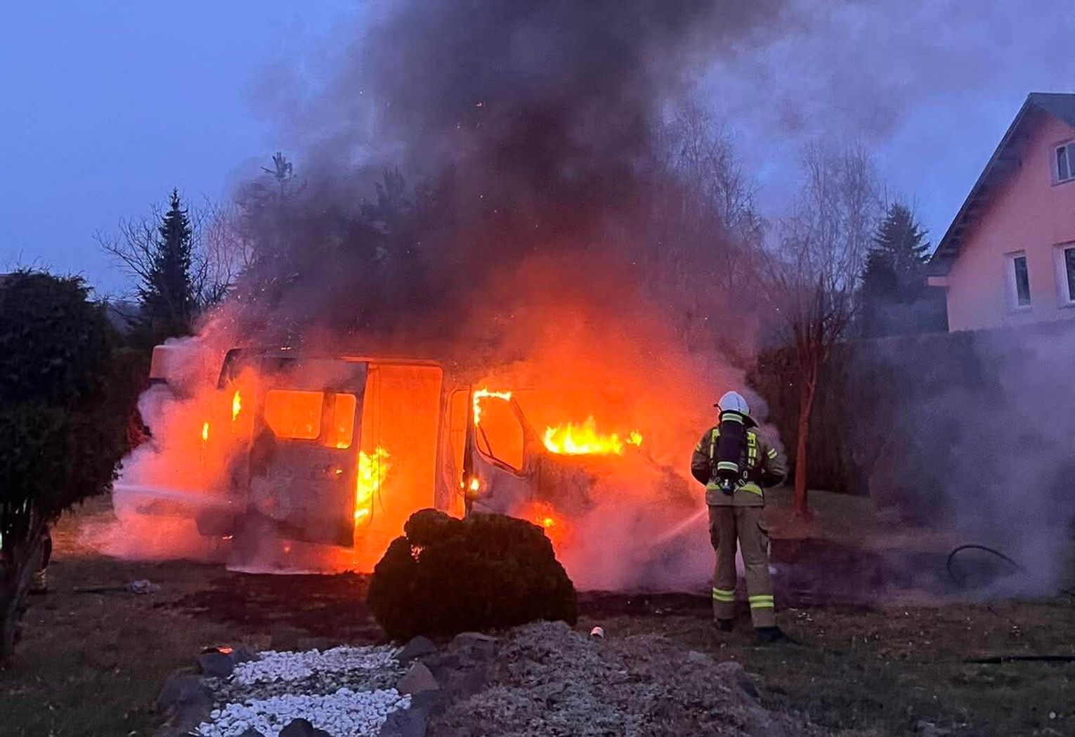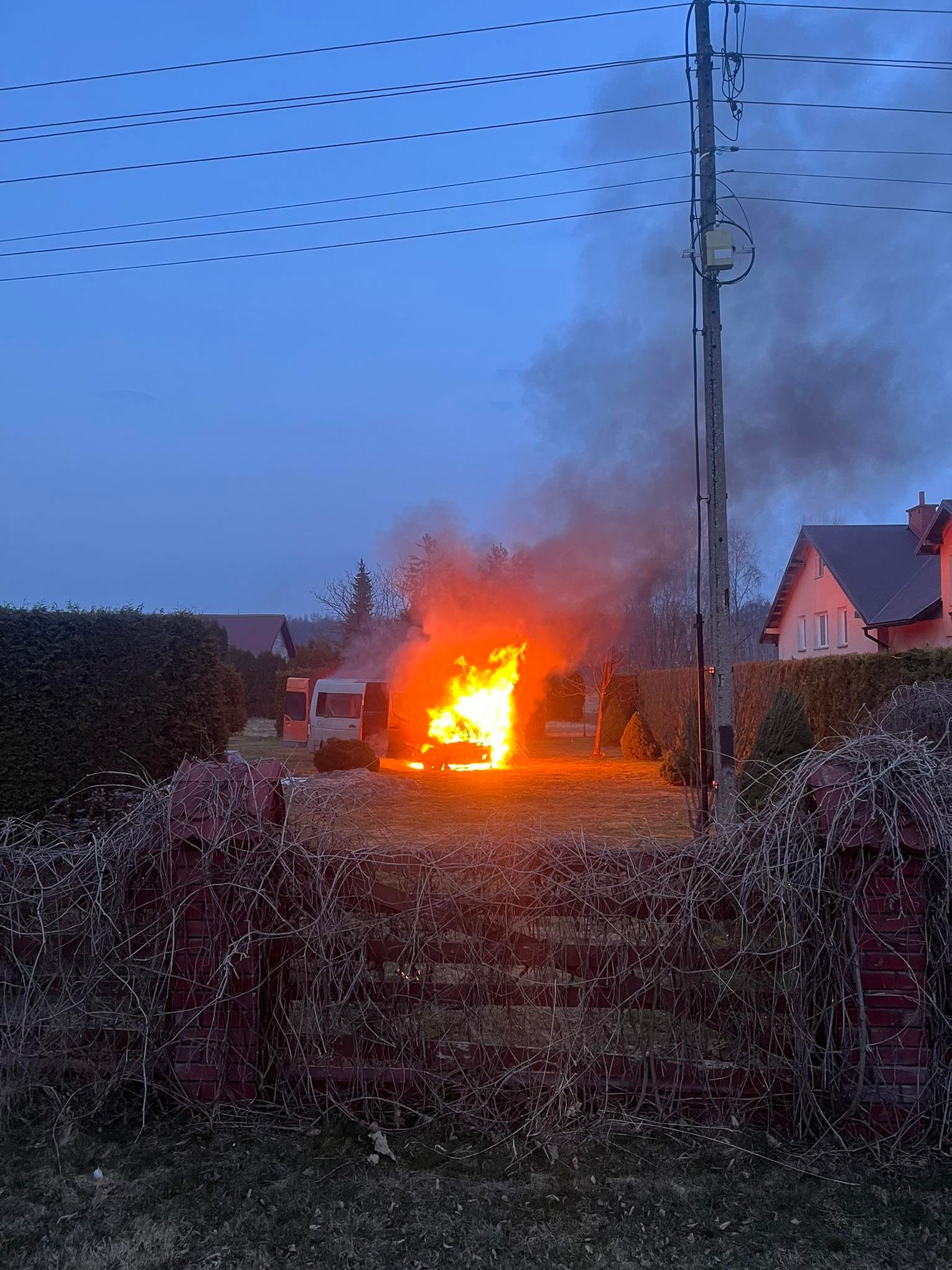 Po dojedzie pierwszego zastępu stwierdzono rozwinięty pożar busa / samochodu dostawczego. Na szczęście nikt nie odniósł obrażeń.