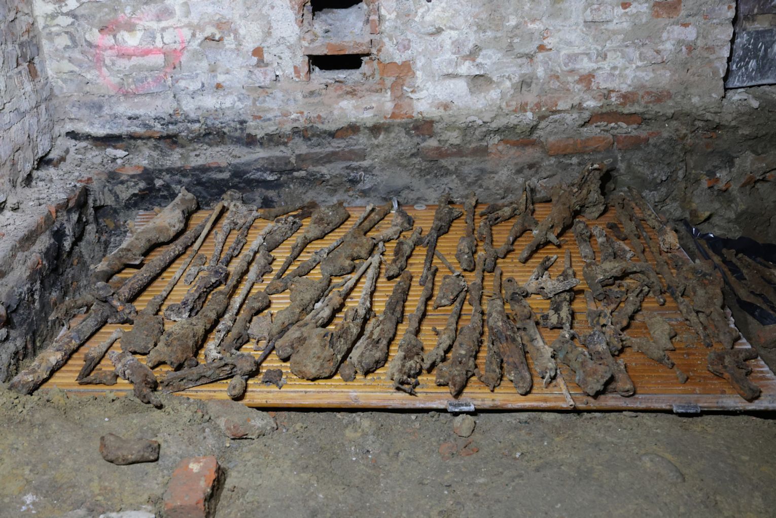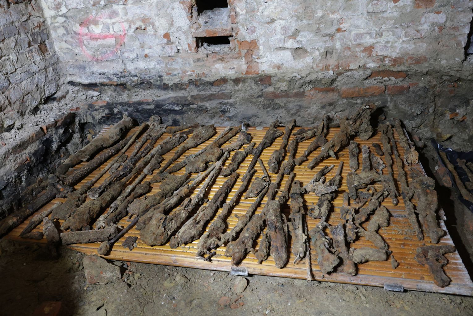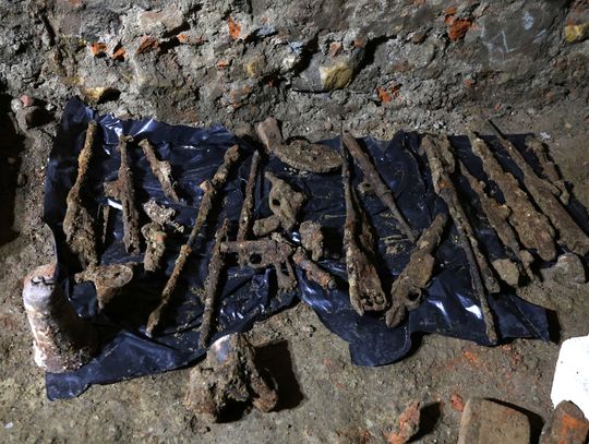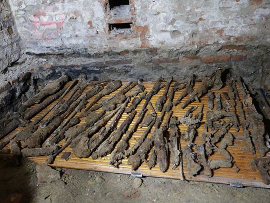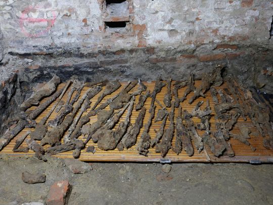 – Podczas prowadzenia badań archeologicznych w piwnicach kamienicy archeolog odkrył zasypisko, w którym znajdował się cały arsenał broni, prawdopodobnie z pierwszej i z drugiej wojny światowej. Oprócz tego znaleziono fragmenty masek gazowych, elementy uzbrojenia i naboje. Trwają obecnie prace polegające na inwentaryzacji znaleziska. Na ten moment naliczyliśmy 82 elementy broni. Powiadomiono Wojewódzkiego Konserwatora Zabytków oraz powiadomiona została policja, która wspólnie z archeologiem prowadzi oględziny i sporządza dokumentację. Każdy element musi być zabezpieczony i zostanie przewieziony w bezpieczne miejsce, gdzie czynności będą kontynuowane wspólnie z prokuratorem – informuje dr inż. Marta Rymar - dyrektor Muzeum Rzemiosła w Krośnie.