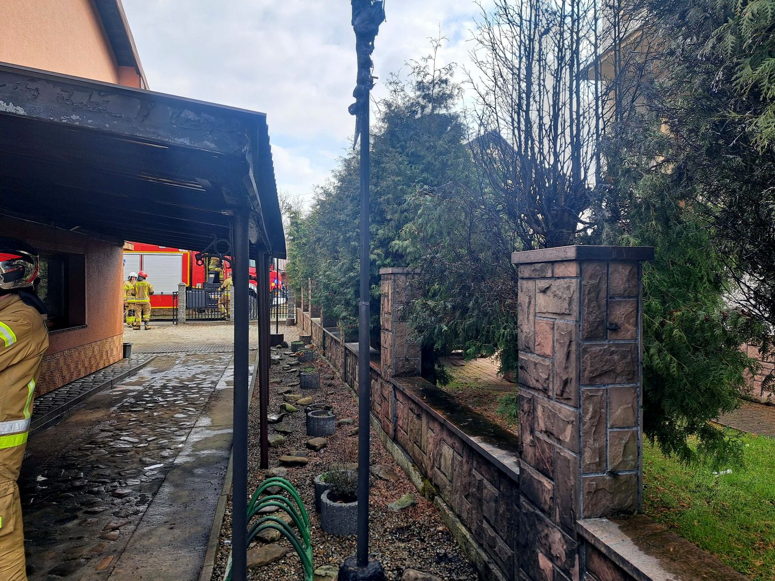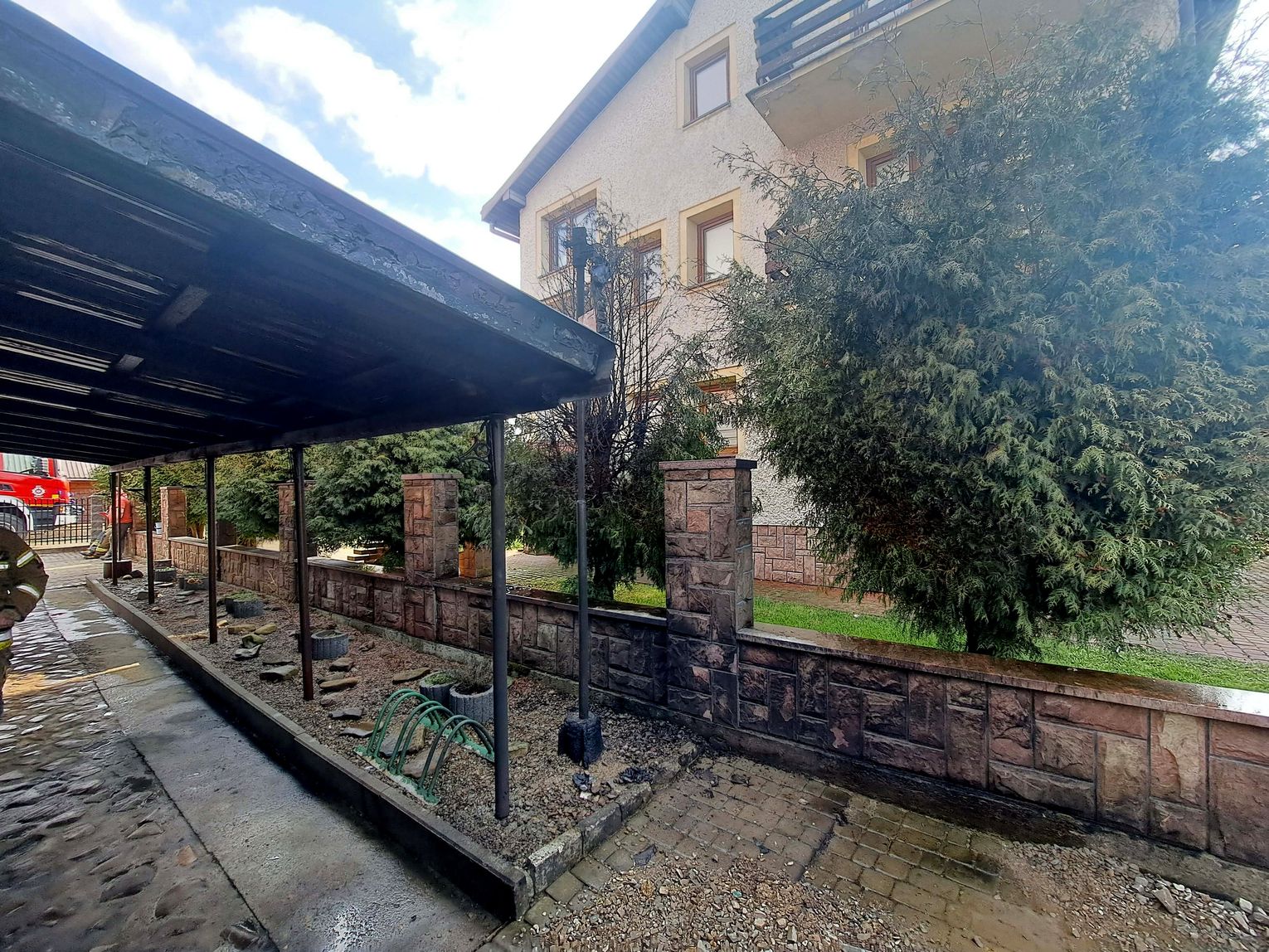 Pożarem objęta była wiata oraz pobliskie rośliny. Lekko poszkodowany został mężczyzna, ale odmówił pomocy medyków.