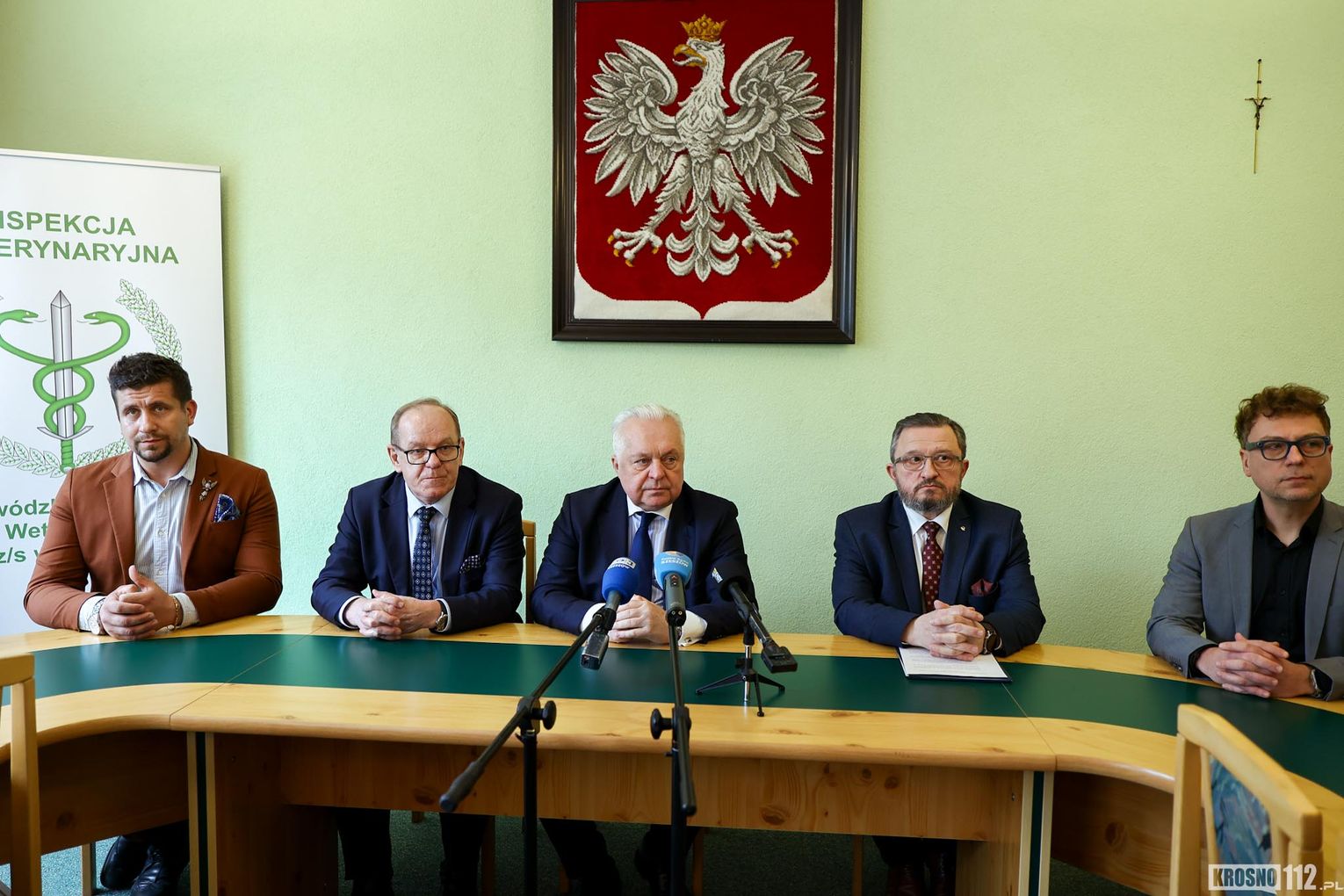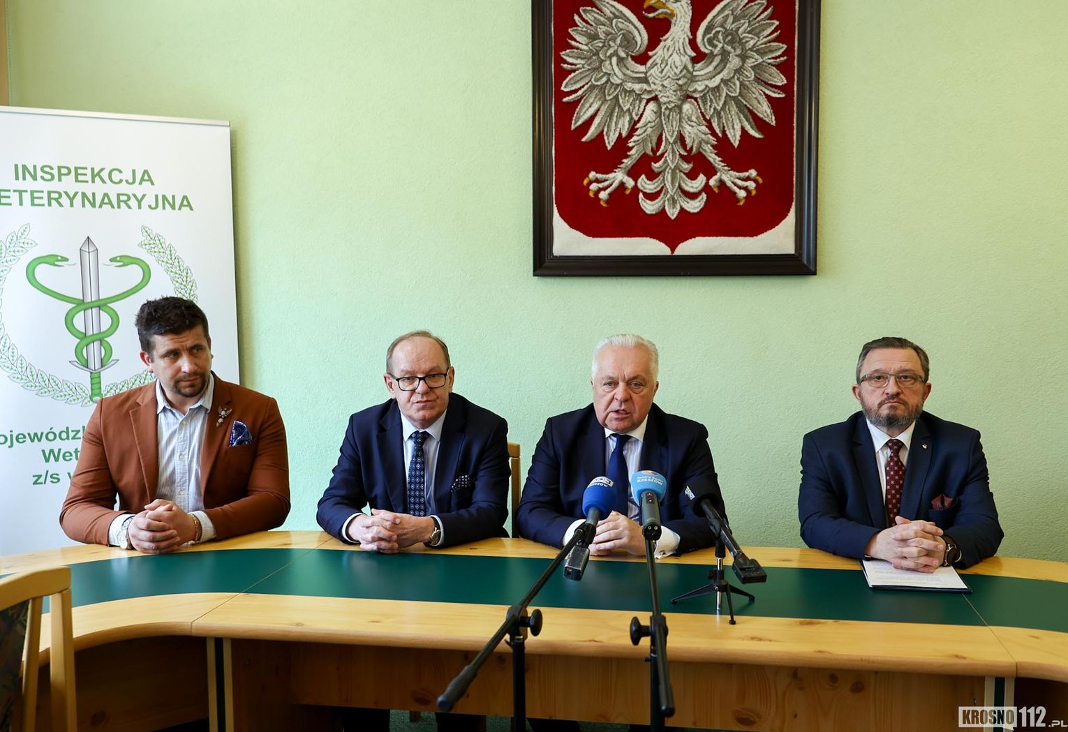 W spotkaniu z mediami, obok wiceministra, udział wzięli również: Wiesław Buż - I Wicewojewoda Podkarpacki, Mirosław Welz - Podkarpacki Wojewódzki Lekarz Weterynarii oraz Gabriel Zajdel - Radny Miasta Krosna.