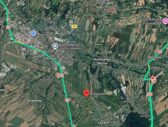 Ulica Rokowiec to nowa, 1,5‑kilometrowa droga łącząca ul. Polną z Sikorskiego w Krośnie, z chodnikiem, ścieżką rowerową i czterema przystankami autobusowymi. Na skrzyżowaniu z Sikorskiego w Krośnie i Jana Pawła II w Łężanach powstało rondo. Zakres prac obejmował także kanalizację deszczową, oświetlenie uliczne, odwodnienie i kanał technologiczny. Inwestycja poprawi dostępność komunikacyjną terenów pod przyszłe osiedla mieszkaniowe. Zakończenie robót planowane jest na kwiecień 2026 r., a koszt wyniesie ok. 12,75 mln zł, z czego 7,65 mln zł pochodzi z Rządowego Funduszu Rozwoju Dróg.