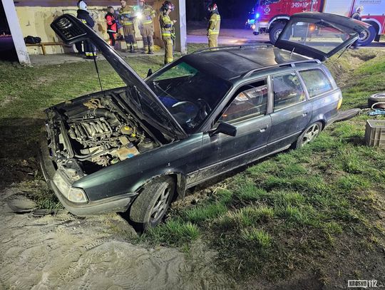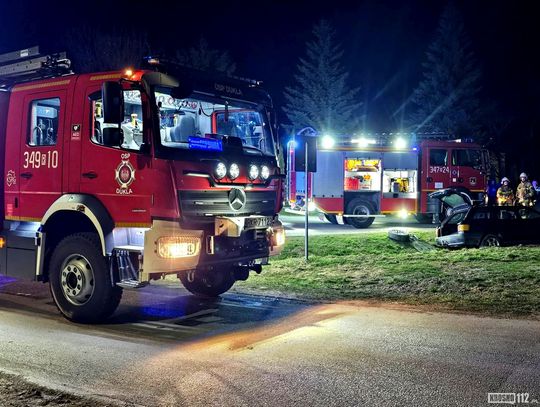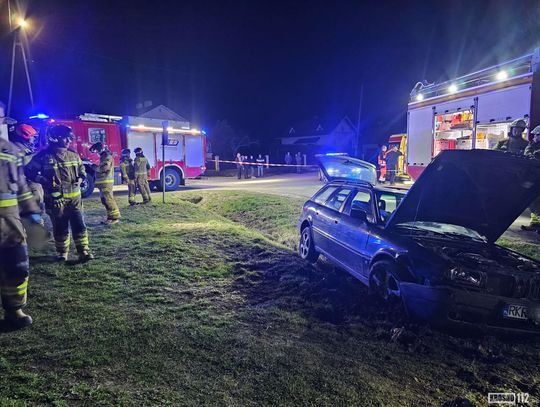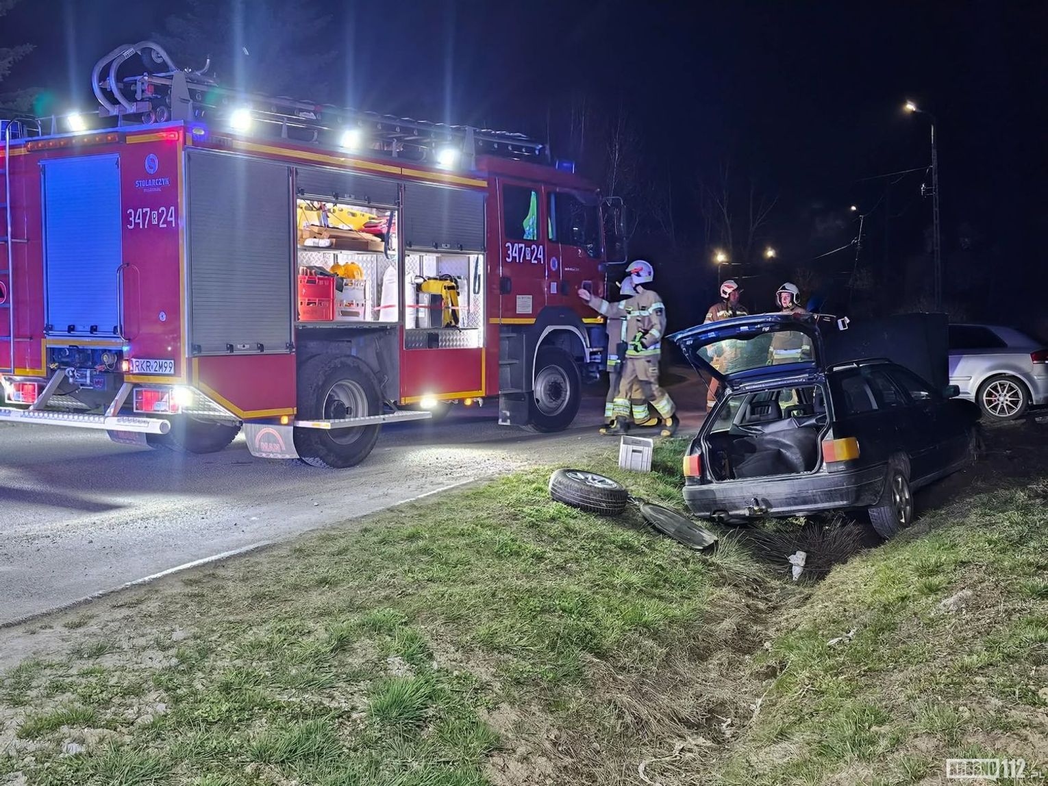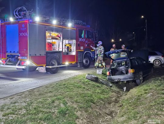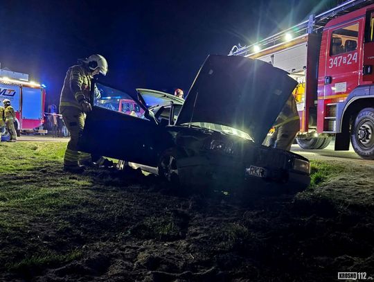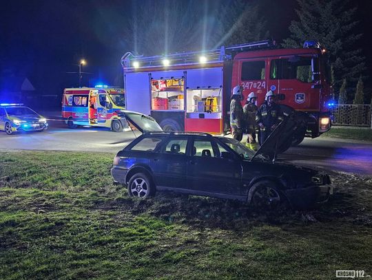 Poszkodowany kierowca trafił pod opiekę medyków. Jego życiu nie zagraża niebezpieczeństwo.