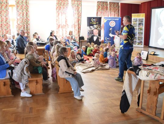 Nie zabrakło także ciekawostek ze świata motosportu. Dzieci mogły dowiedzieć się m.in. ile pali samochód wyścigowy, jak wygląda przygotowanie kierowcy oraz czym różni się wyścig od rajdu.