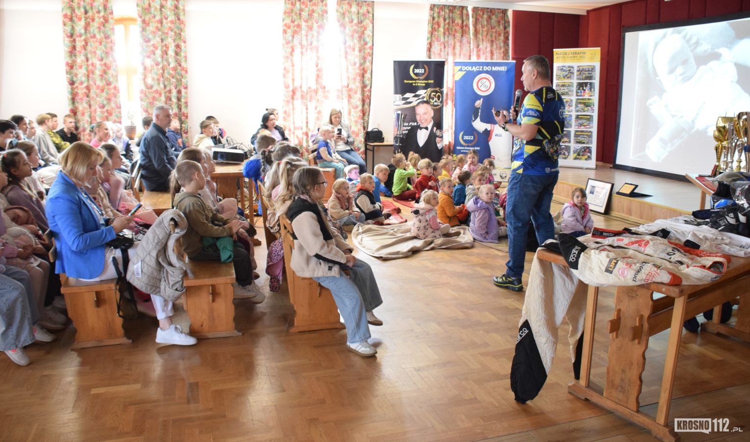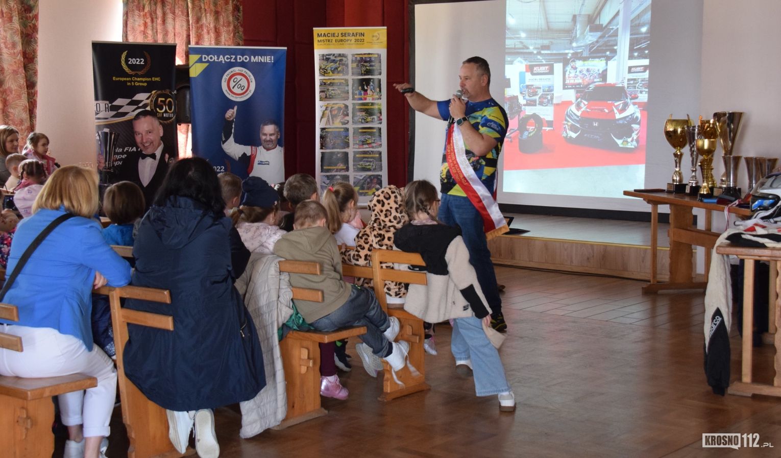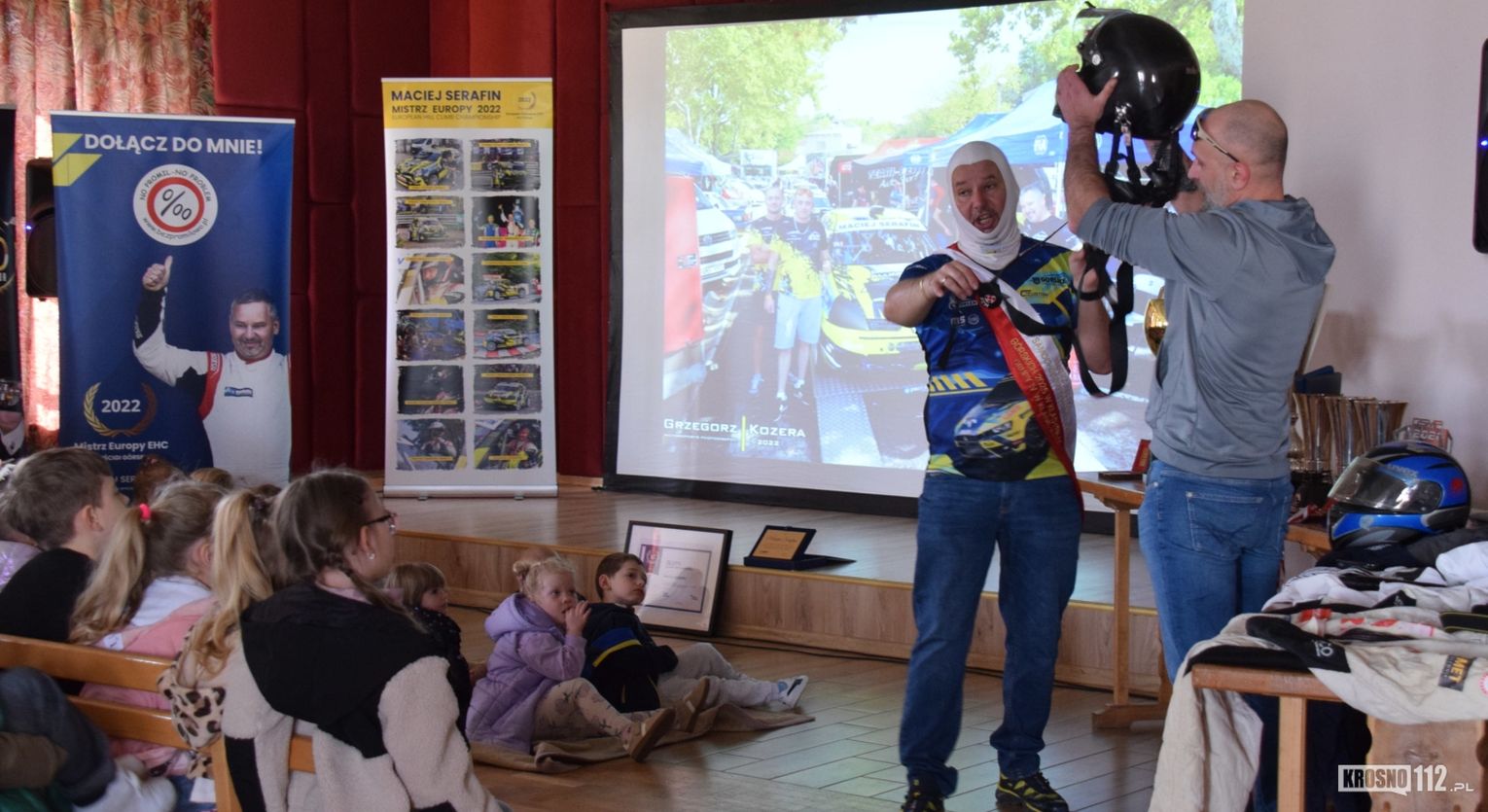 Maciej Serafin pochodzi z Gorlic. Spotkanie z nim w Dworze Stojowskich w Jaszczwi zostało zorganizowane z inicjatywy Rad Rodziców miejscowego przedszkola i szkoły. Głównym celem było uświadomienie najmłodszym, jak niebezpieczna może być szybka jazda po drogach publicznych.