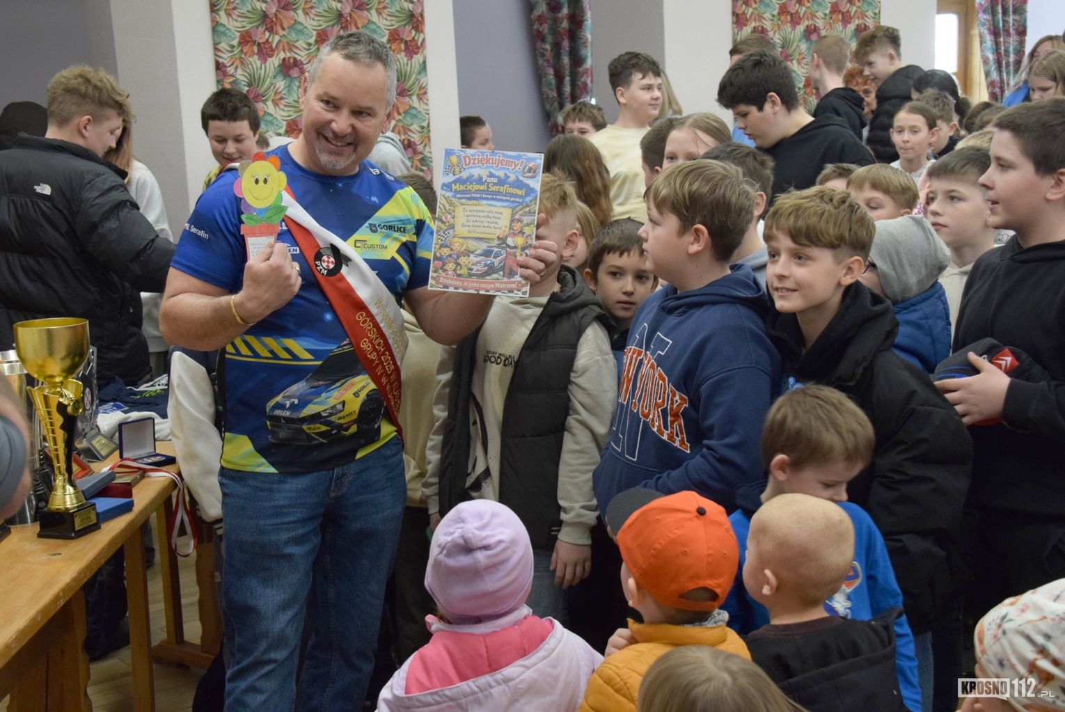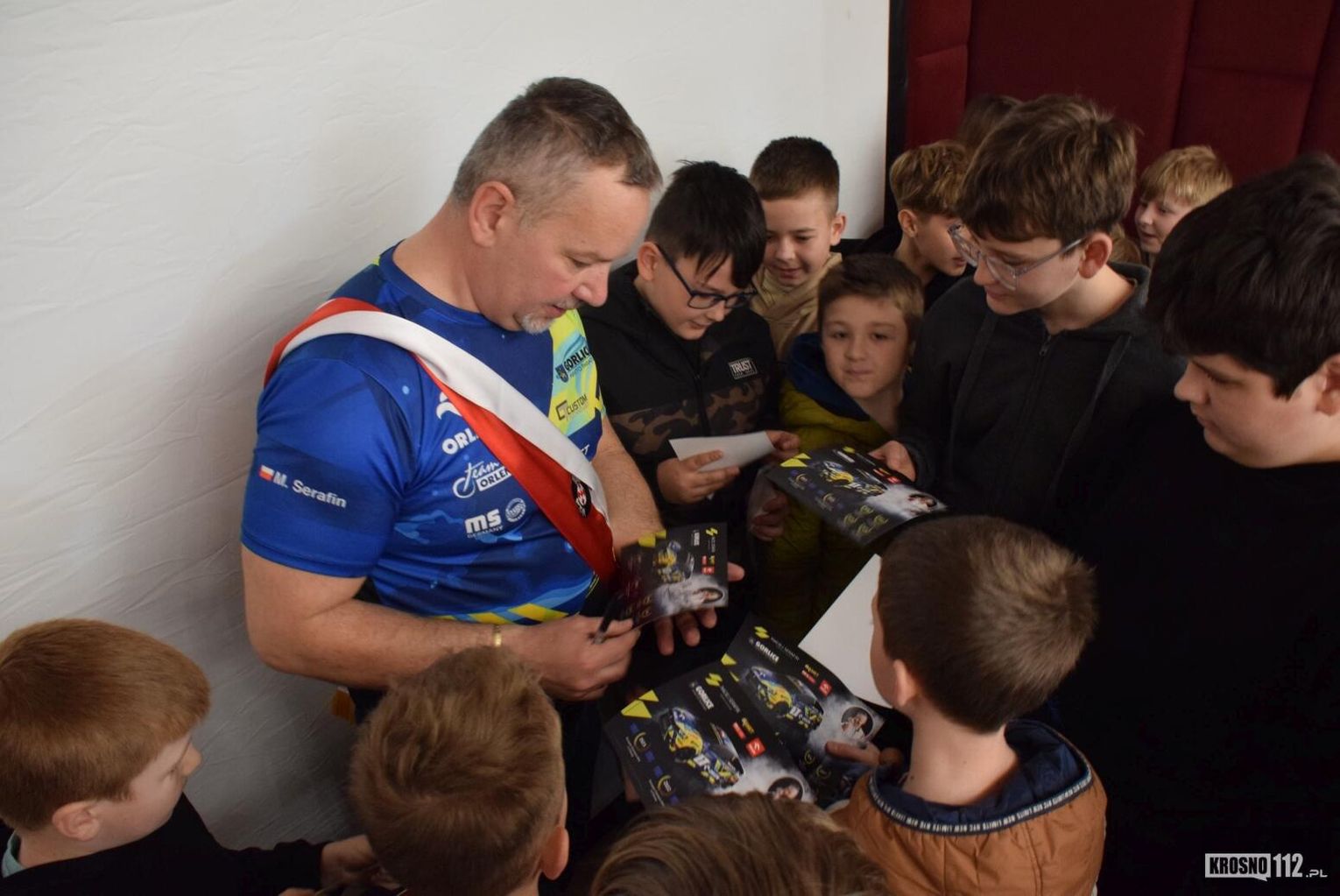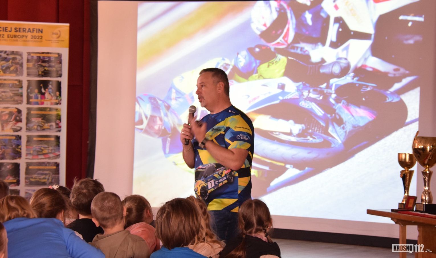 Maciej Serafin pochodzi z Gorlic. Spotkanie z nim w Dworze Stojowskich w Jaszczwi zostało zorganizowane z inicjatywy Rad Rodziców miejscowego przedszkola i szkoły. Głównym celem było uświadomienie najmłodszym, jak niebezpieczna może być szybka jazda po drogach publicznych.