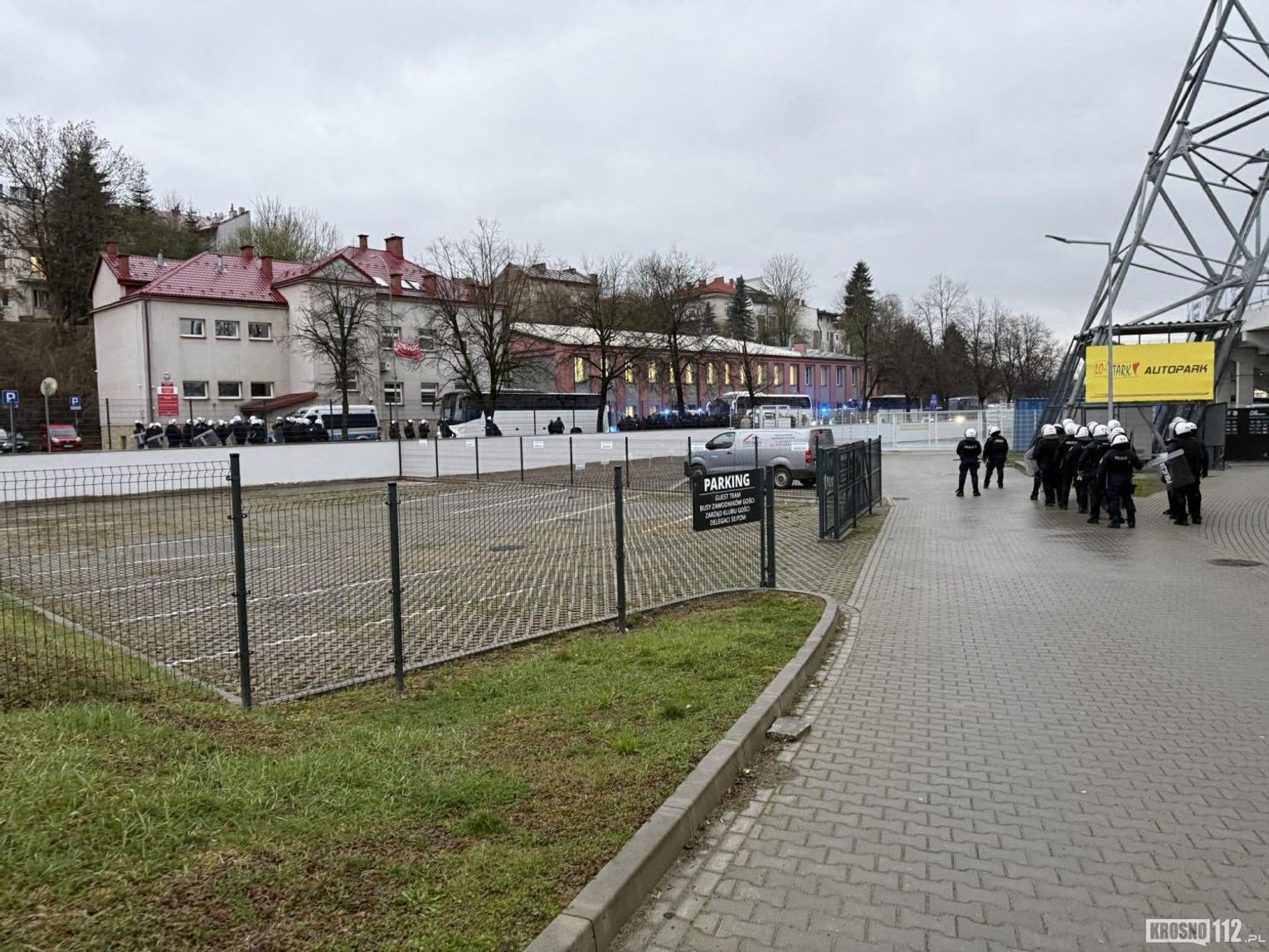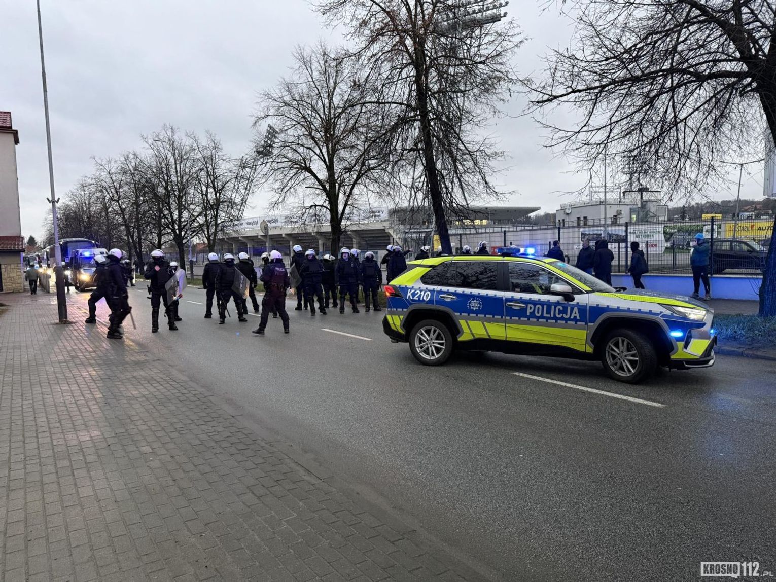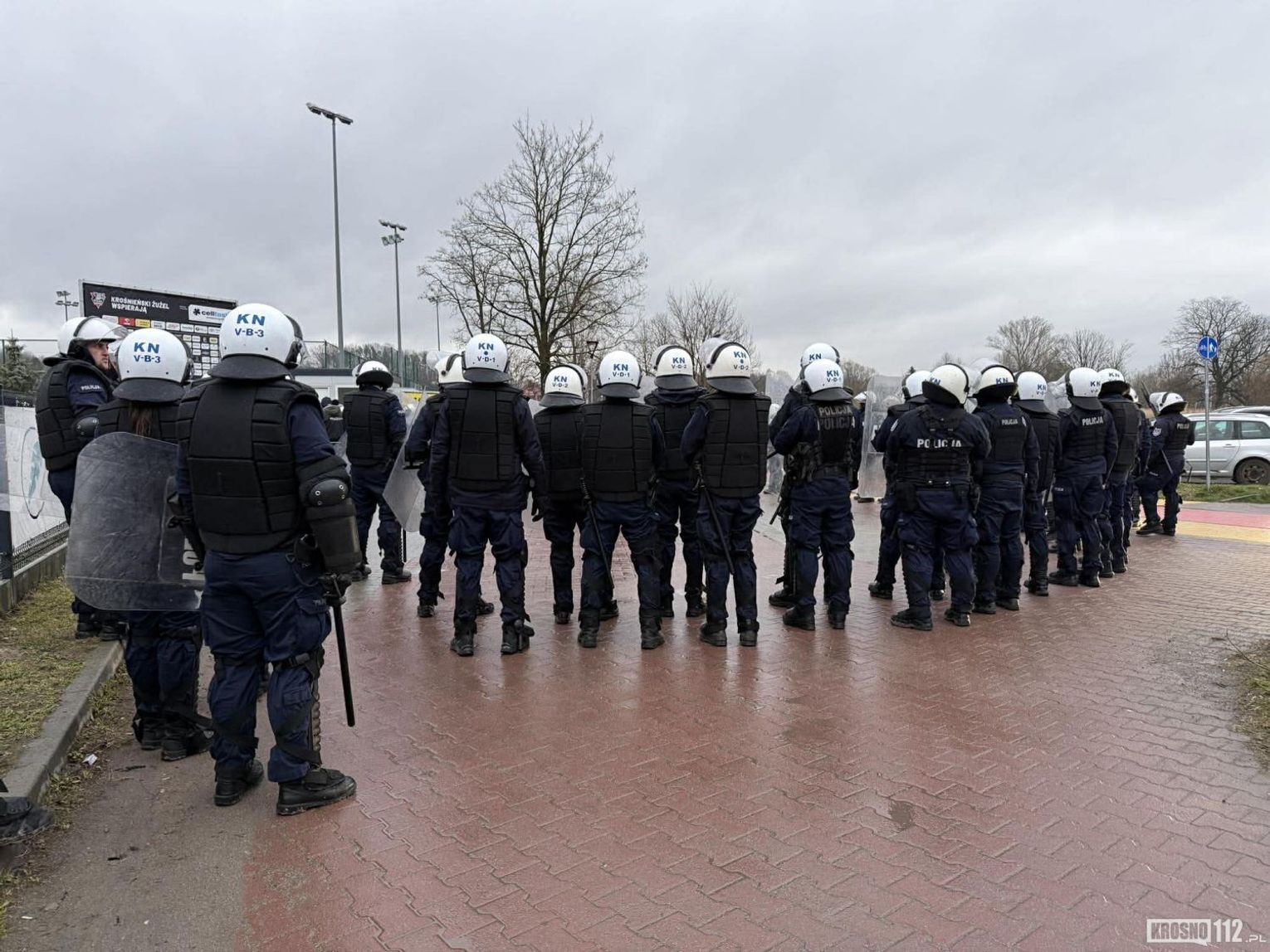 Nad bezpieczeństwem kibiców i spokojnym przebiegiem spotkania czuwają policjanci z kilku wydziałów krośnieńskiej komendy, wspierani przez kolegów z innych jednostek z Podkarpacia i Małopolski w tym z Oddziału Prewencji Policji w Rzeszowie. Obecni są także przewodnicy psów oraz funkcjonariusze z Ogniwa Konnego Wydziału Prewencji Komendy Wojewódzkiej Policji w Rzeszowie.