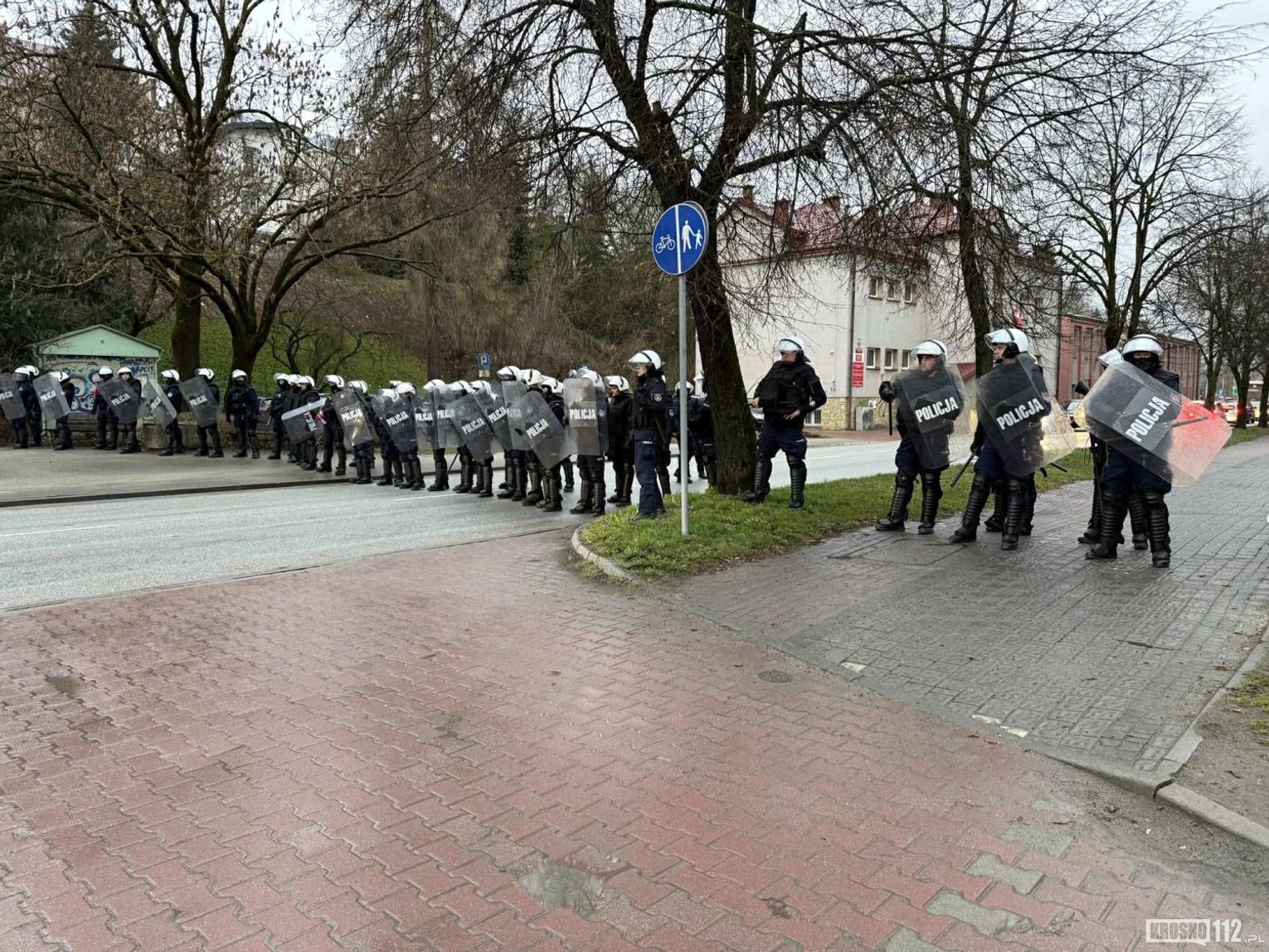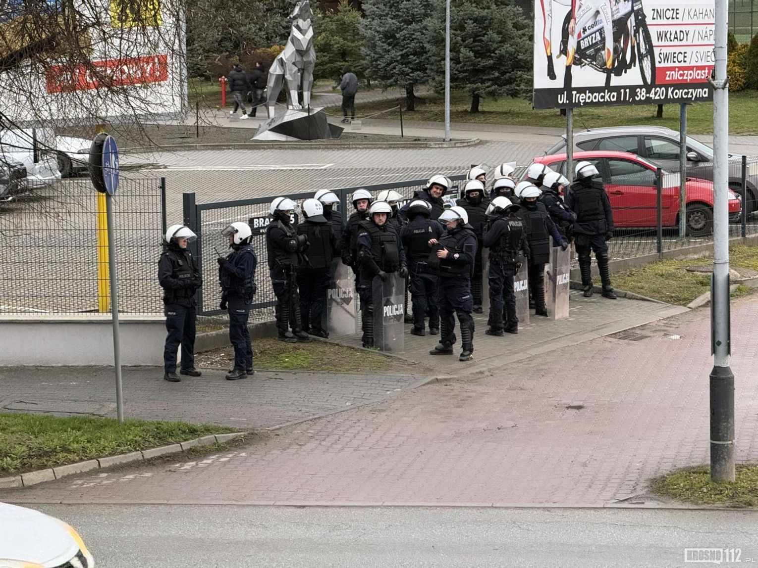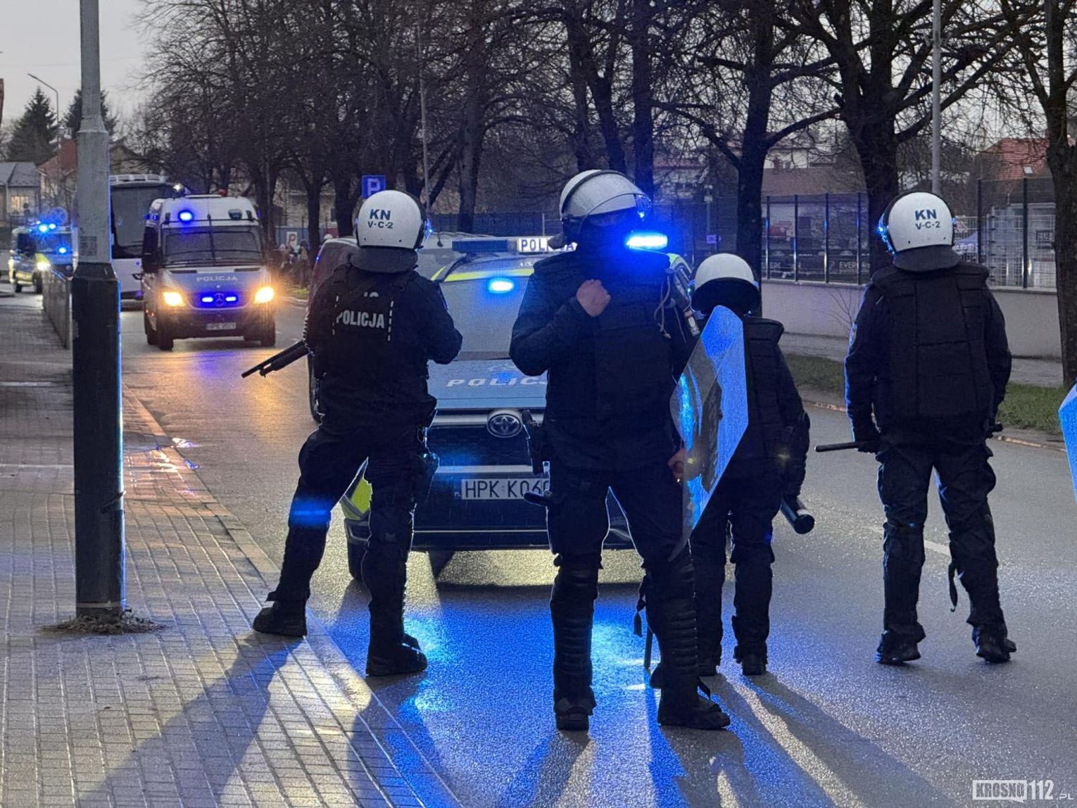 Nad bezpieczeństwem kibiców i spokojnym przebiegiem spotkania czuwają policjanci z kilku wydziałów krośnieńskiej komendy, wspierani przez kolegów z innych jednostek z Podkarpacia i Małopolski w tym z Oddziału Prewencji Policji w Rzeszowie. Obecni są także przewodnicy psów oraz funkcjonariusze z Ogniwa Konnego Wydziału Prewencji Komendy Wojewódzkiej Policji w Rzeszowie.