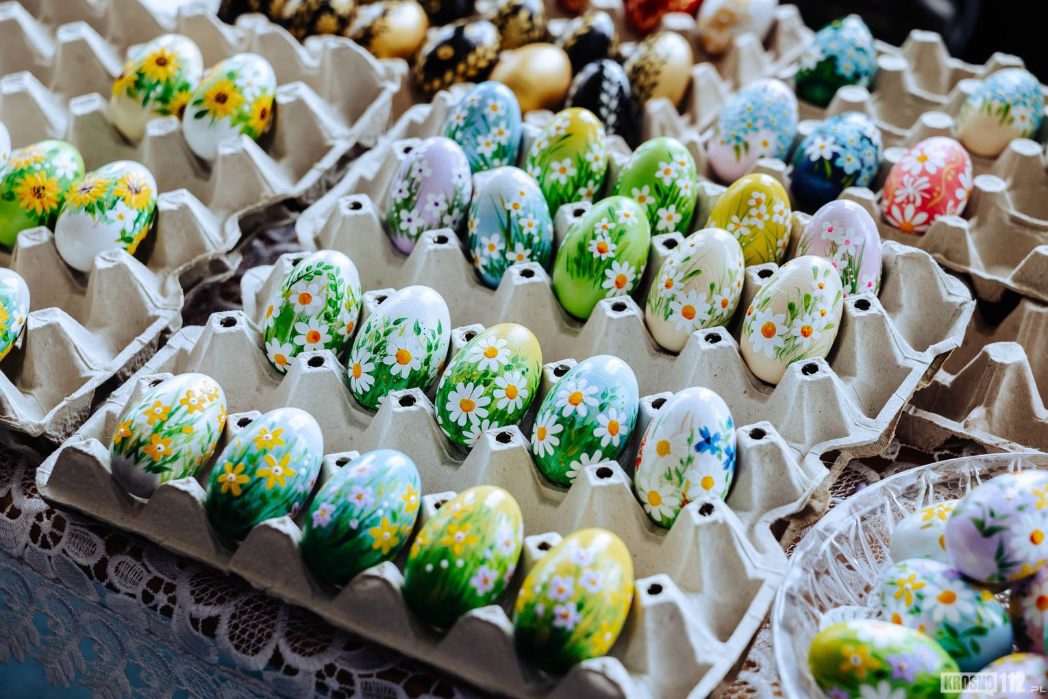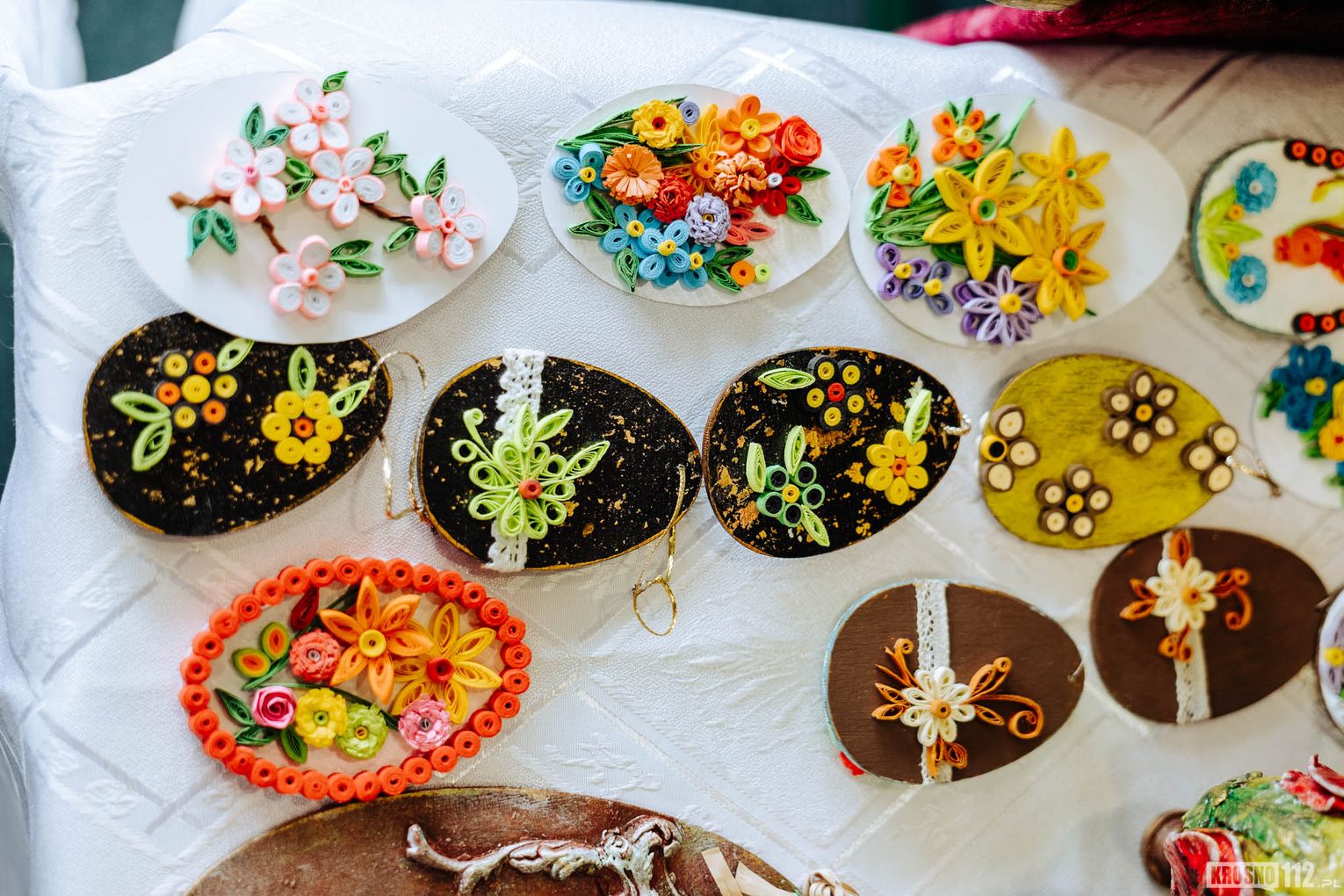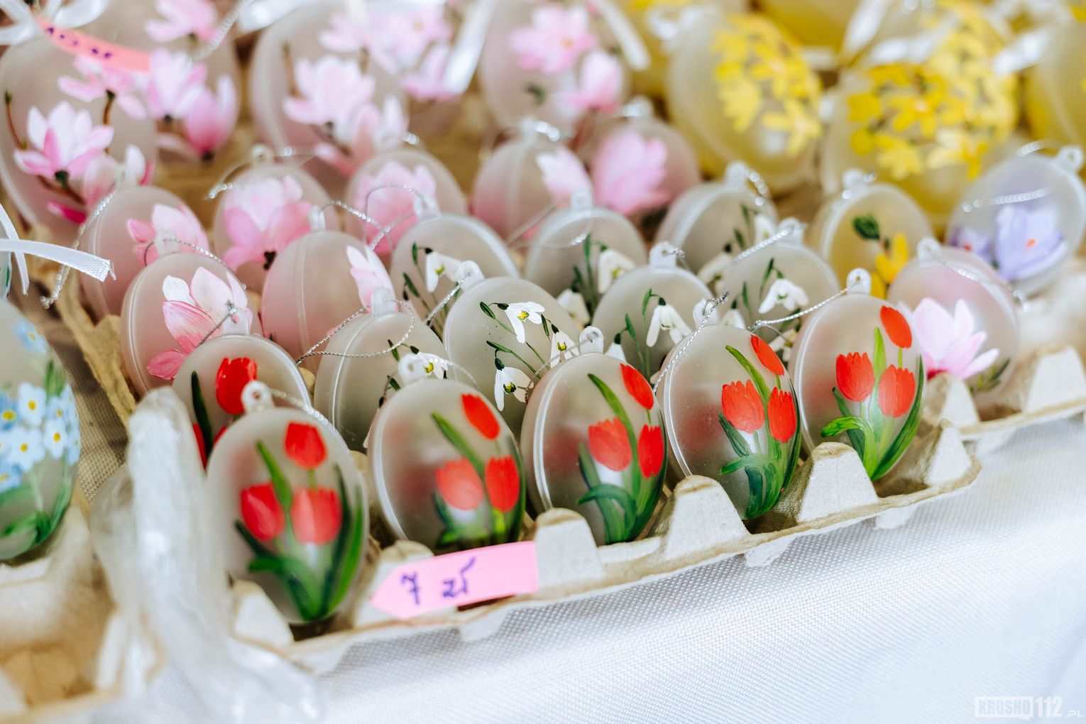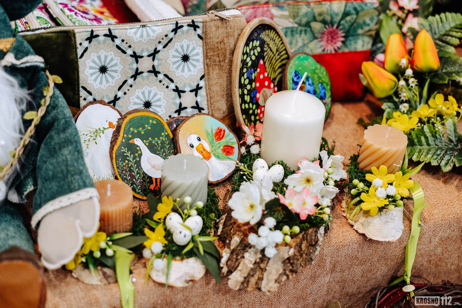 Na przygotowanych stoiskach wystawcy prezentują szeroki wybór rękodzieła oraz wyrobów związanych z nadchodzącymi świętami. Wśród dostępnych produktów można znaleźć między innymi ręcznie wykonane ozdoby wielkanocne, stroiki, pisanki czy inne dekoracje, które wprowadzają do domów świąteczny klimat. Nie brakuje także tradycyjnych potraw oraz regionalnych przysmaków przygotowanych przez lokalnych twórców i producentów.
