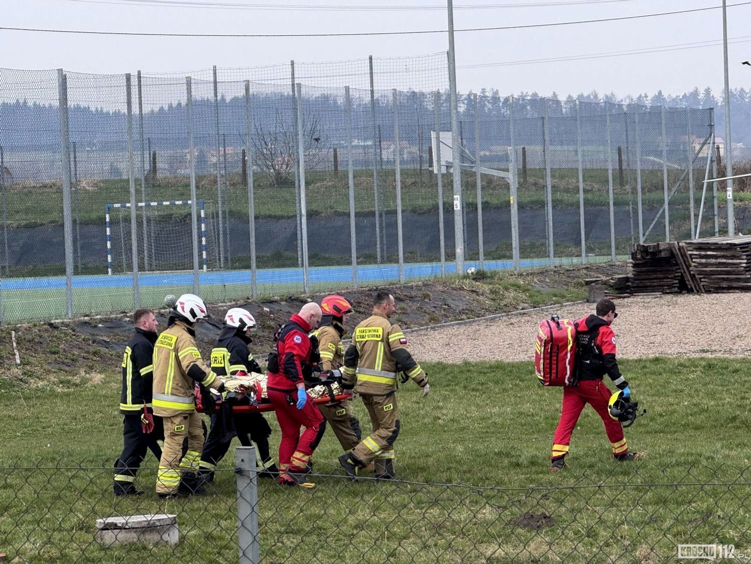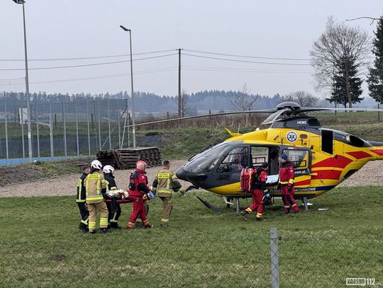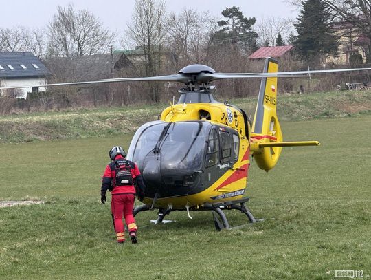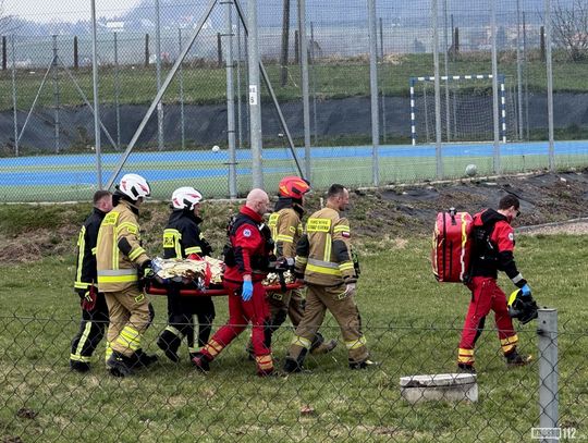 Helikopter LPR Ratownik 10 wylądował na boisku piłkarskim - na czas akcji ratunkowej przerwano rozgrywany na nim mecz piłkarski.