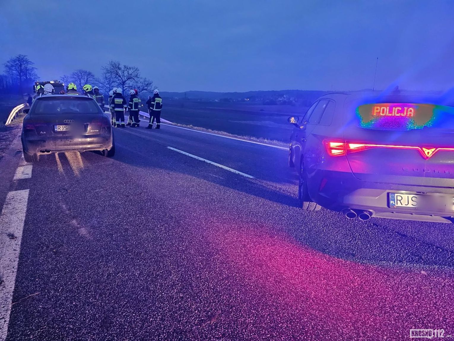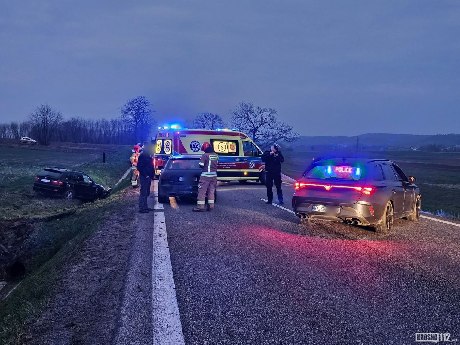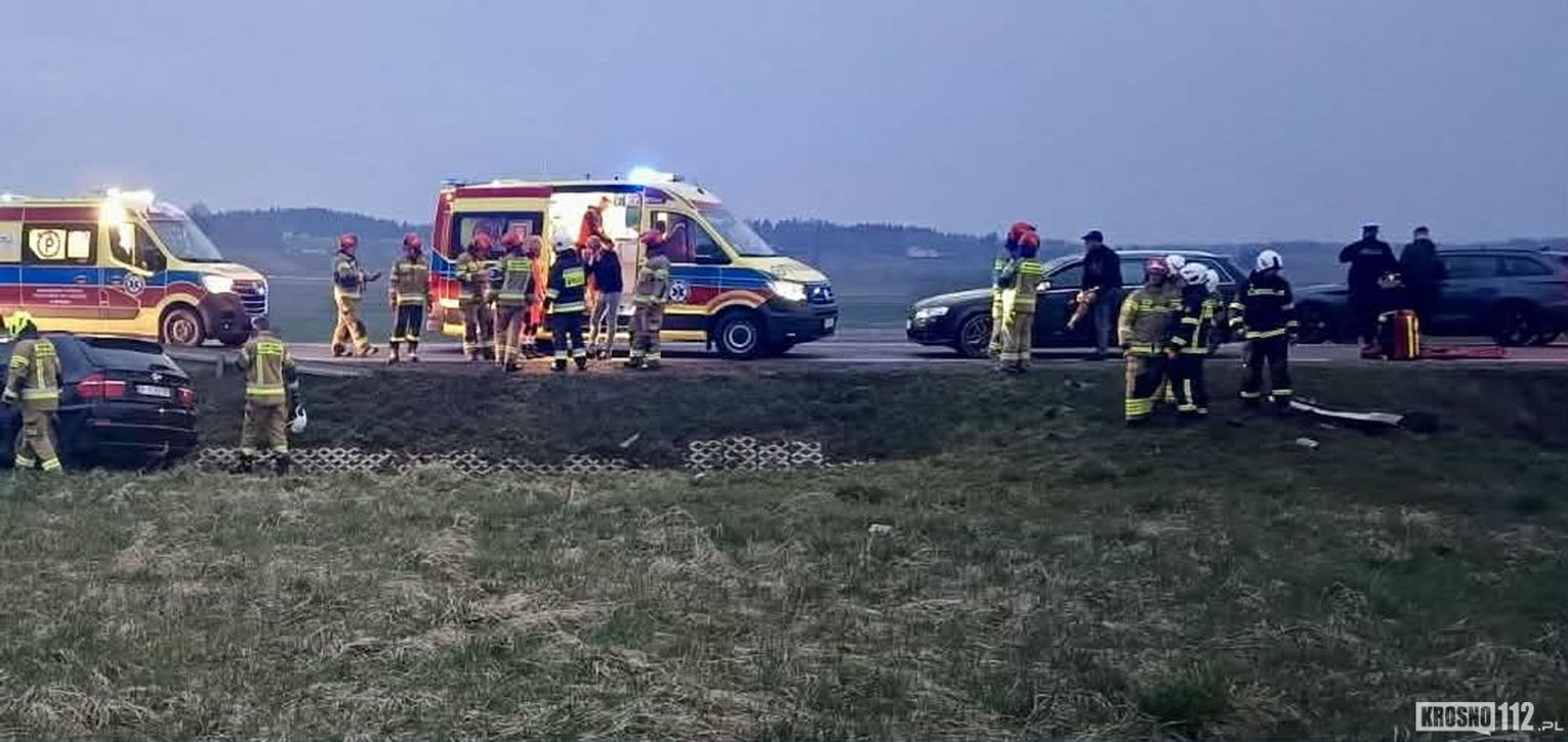 Służby ratunkowe zostały zaalarmowane przed godziną 18:40, że na odcinku Szebnie - Zimna Woda doszło do kolejnego wypadku samochodowego, w którym są dwie osoby poszkodowane. Zderzyły się dwa pojazdy: BMW oraz Audi. Do szpitala przewieziono dwie osoby jadące BMW.