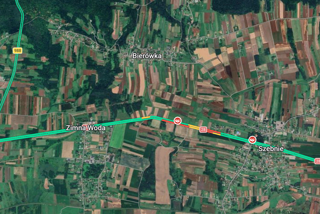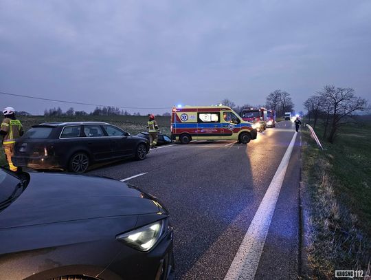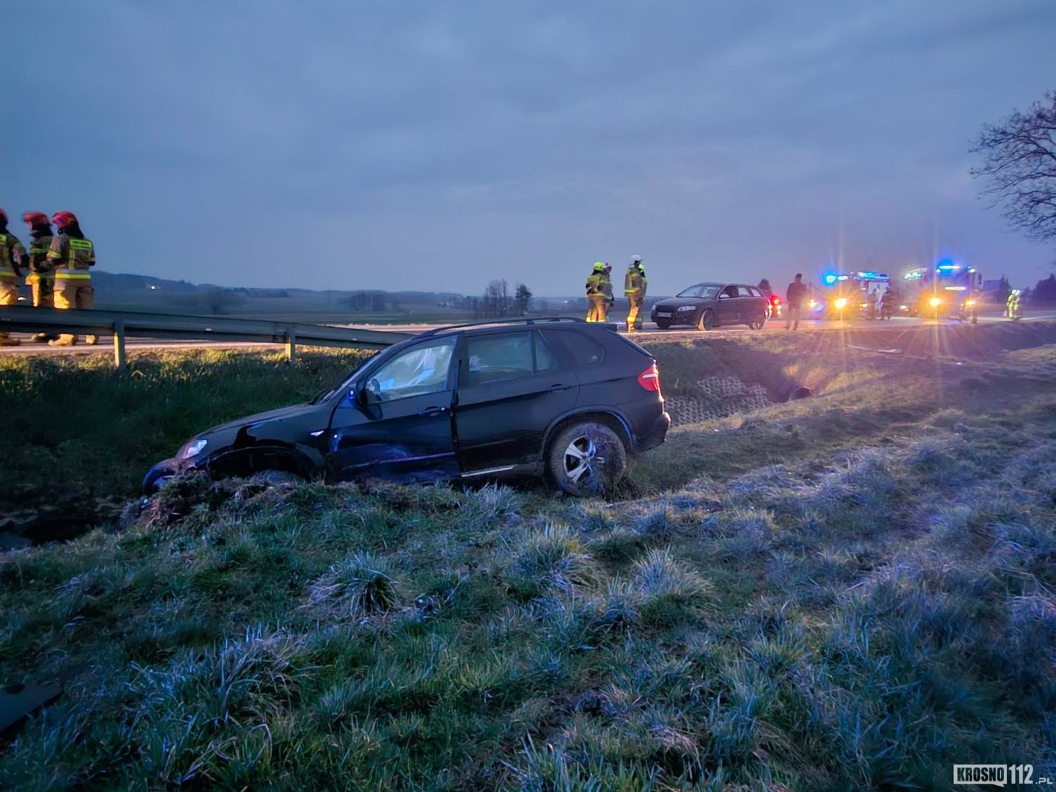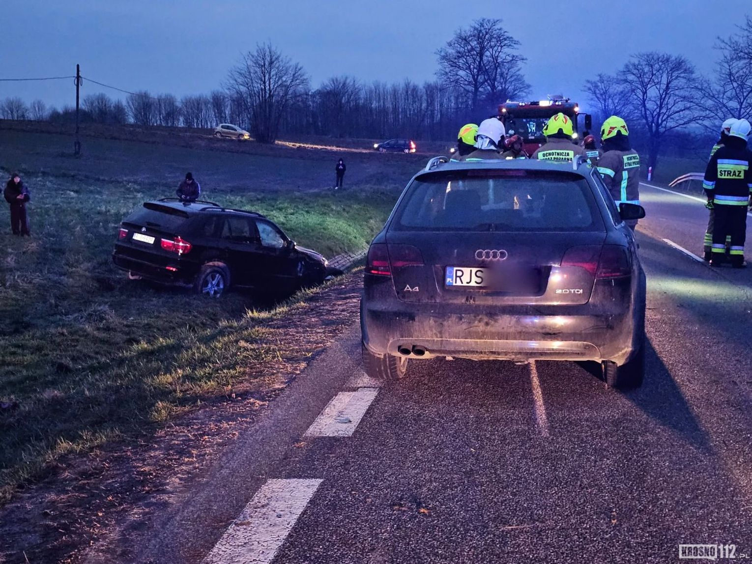 Służby ratunkowe zostały zaalarmowane przed godziną 18:40, że na odcinku Szebnie - Zimna Woda doszło do kolejnego wypadku samochodowego, w którym są dwie osoby poszkodowane. Zderzyły się dwa pojazdy: BMW oraz Audi. Do szpitala przewieziono dwie osoby jadące BMW.