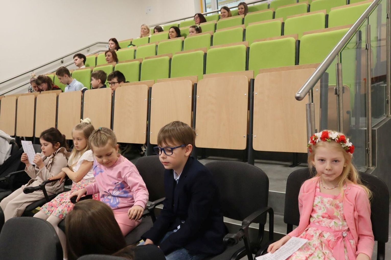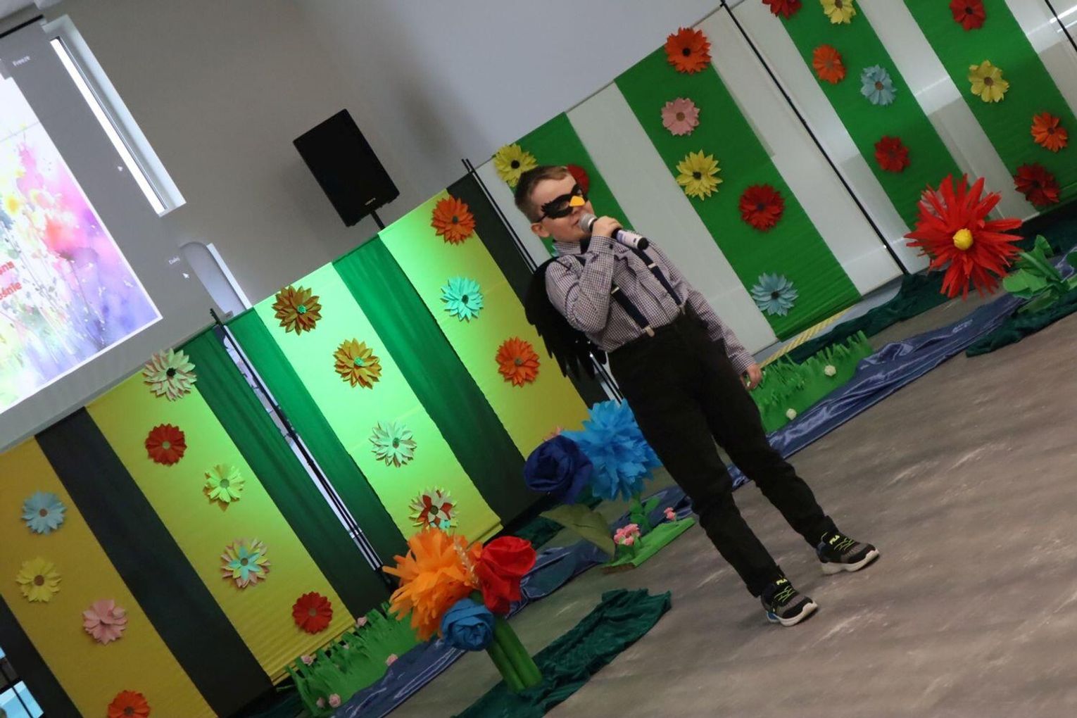 Już od pierwszych chwil można było poczuć, że nie jest to zwykłe wydarzenie – to święto słowa, emocji i dziecięcej wrażliwości. W szkolnych przestrzeniach rozbrzmiewały strofy znanych i mniej znanych utworów, a każdy z uczestników wnosił na scenę własny, niepowtarzalny świat. W konkursie wzięło udział łącznie 30 uczniów, których występy stworzyły barwną mozaikę interpretacji i emocji. Całość wydarzenia z wdziękiem i zaangażowaniem prowadziły uczennice Michalina Zych i Lena Szopa z klasy Vb, nadając spotkaniu płynny i przyjazny rytm.
