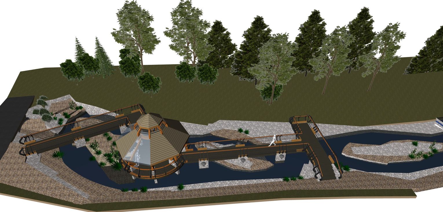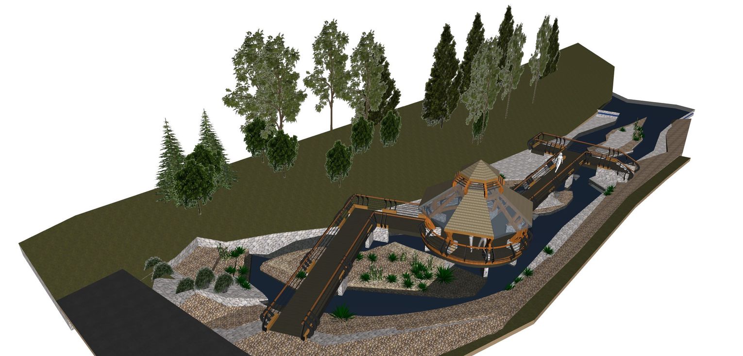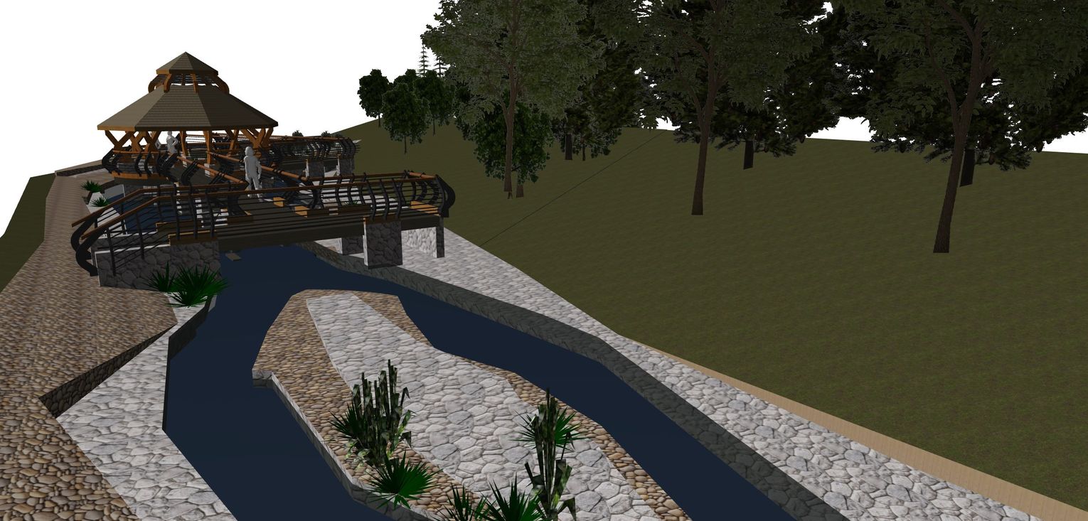 Niecka przez przepust zostanie połączona z tzw. suchą rzeką, która została wykonana w pierwszym etapie inwestycji w południowo-wschodniej części. Jej celem jest odprowadzanie wody z terenu parku do niecki w czasie wzmożonych opadów a przez pozostały okres jest elementem dekoracyjnym.