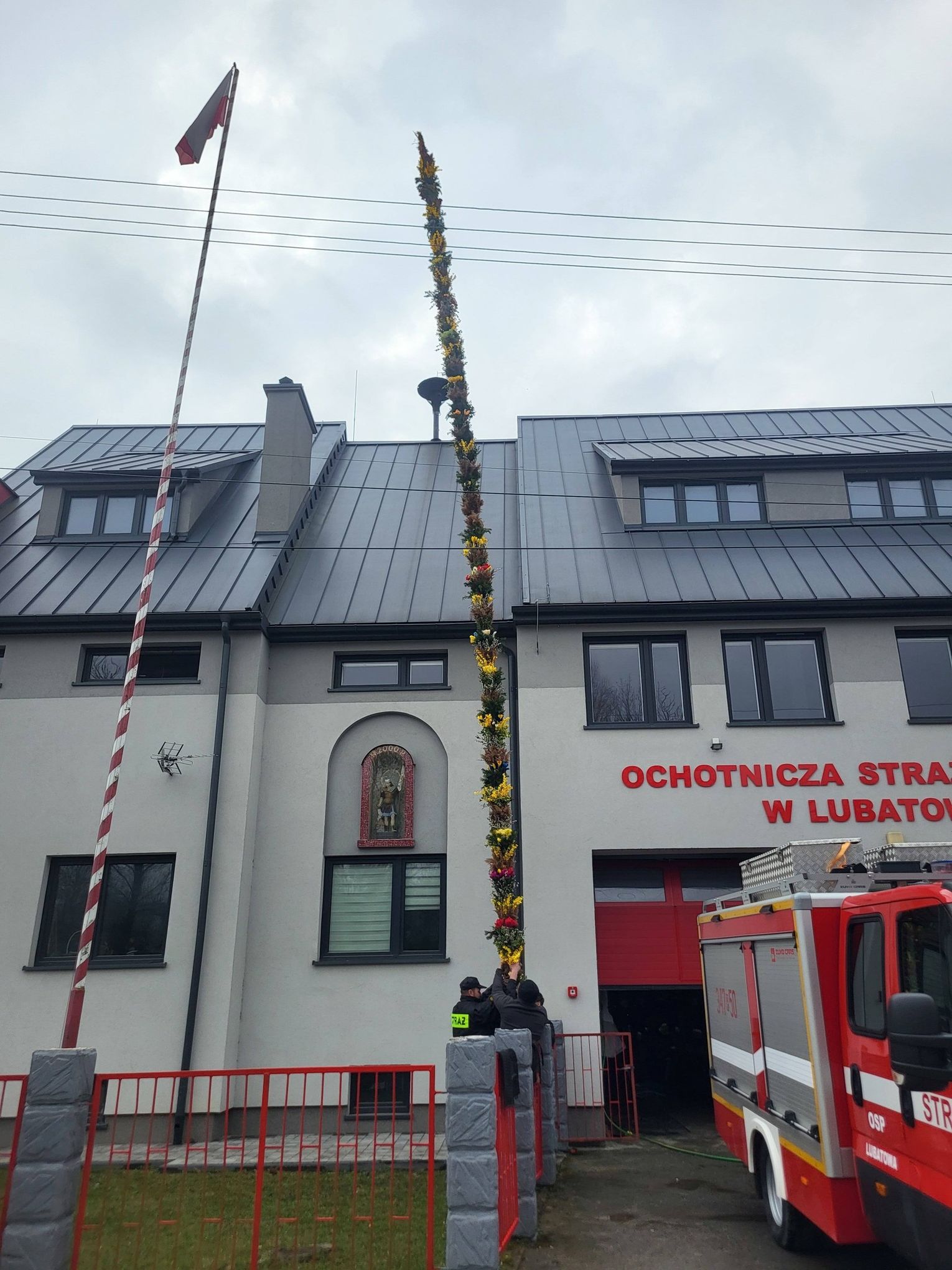 Członkowie Młodzieżowej Drużyny Pożarniczej OSP Lubatowa przygotowali okazałą palmę wielkanocną o wysokości 14,5 metra. Jej wykonanie było efektem kilkudniowej, zespołowej pracy.