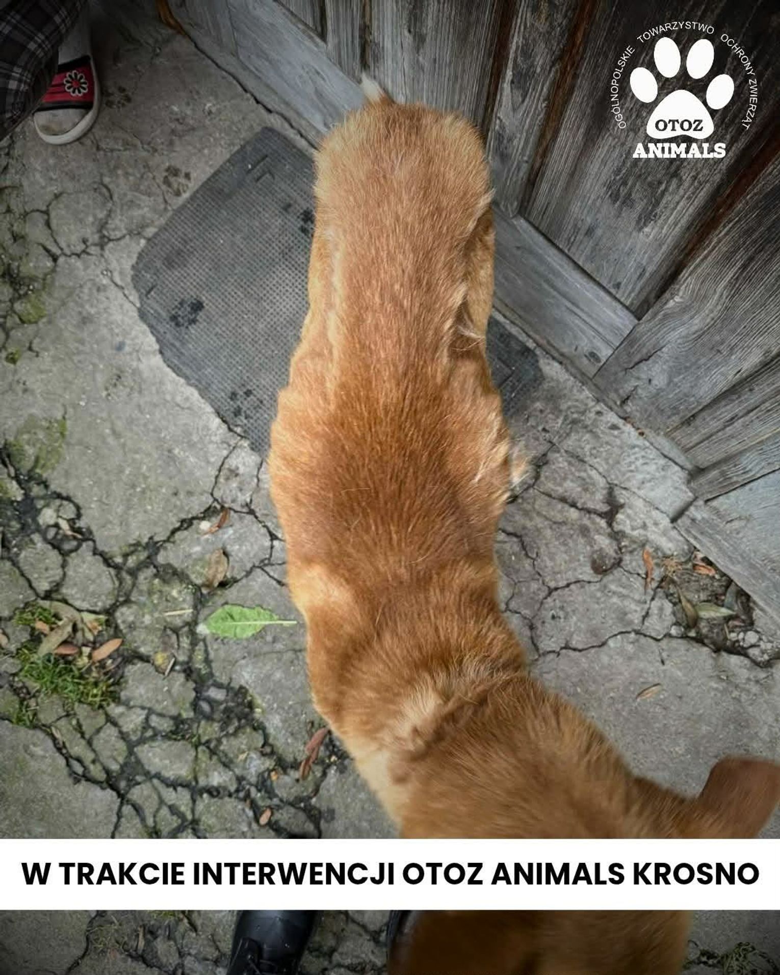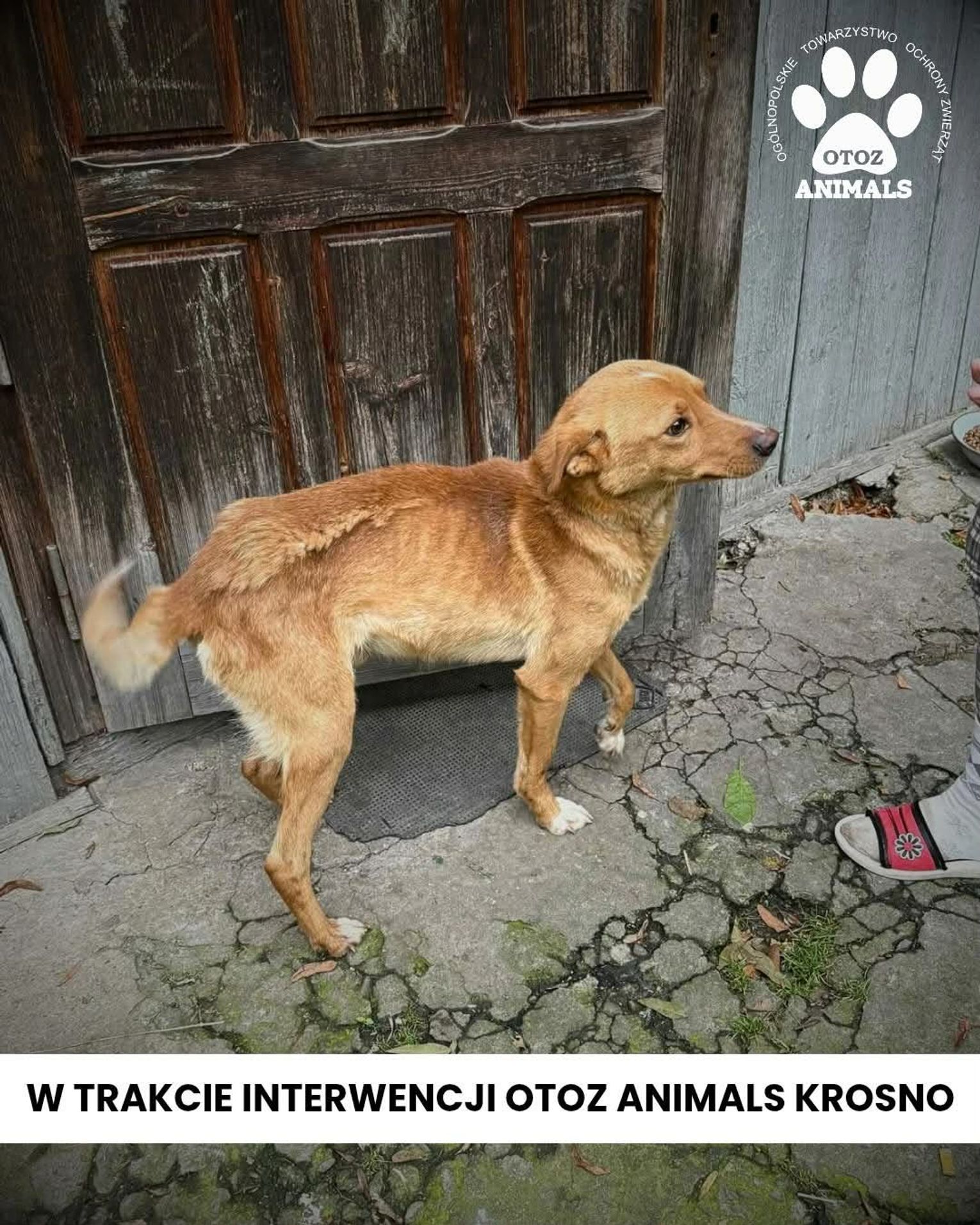 Niestety, rok później – w październiku 2025 – podczas rekontroli odkryto tragedię. Właścicielka wróciła do przemocowego partnera. Towarzyszka Rokiego nie przeżyła, a on sam ponownie był skrajnie zagłodzony, z zapadniętymi bokami, na granicy śmierci. Decyzja mogła być tylko jedna – natychmiastowe odebranie psa.