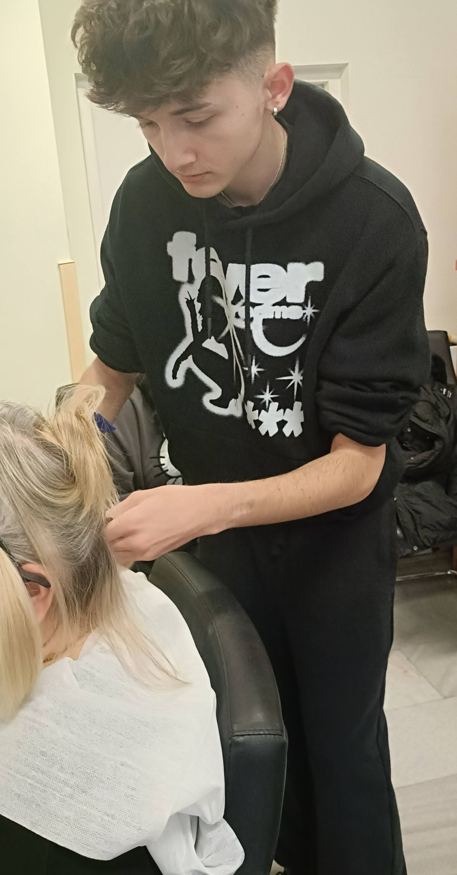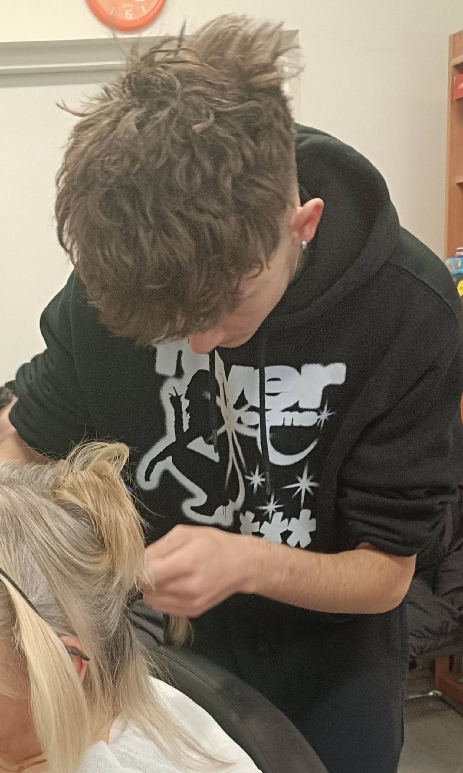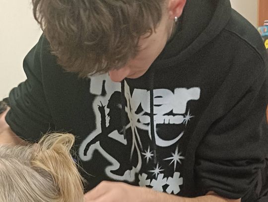 Młodzież ze „Szpetnara” wykonała stylizacje fryzur, tworząc fantazyjne i starannie dopasowane uczesania.