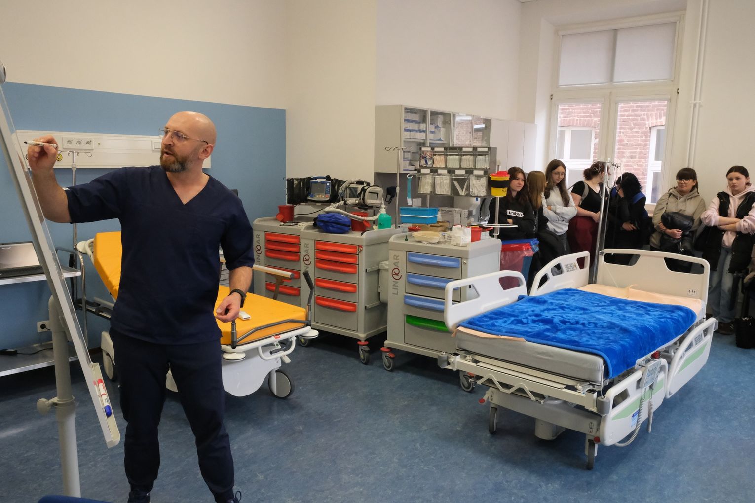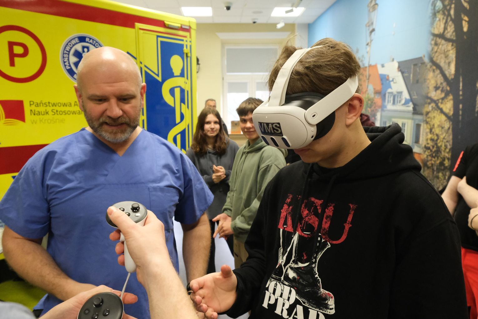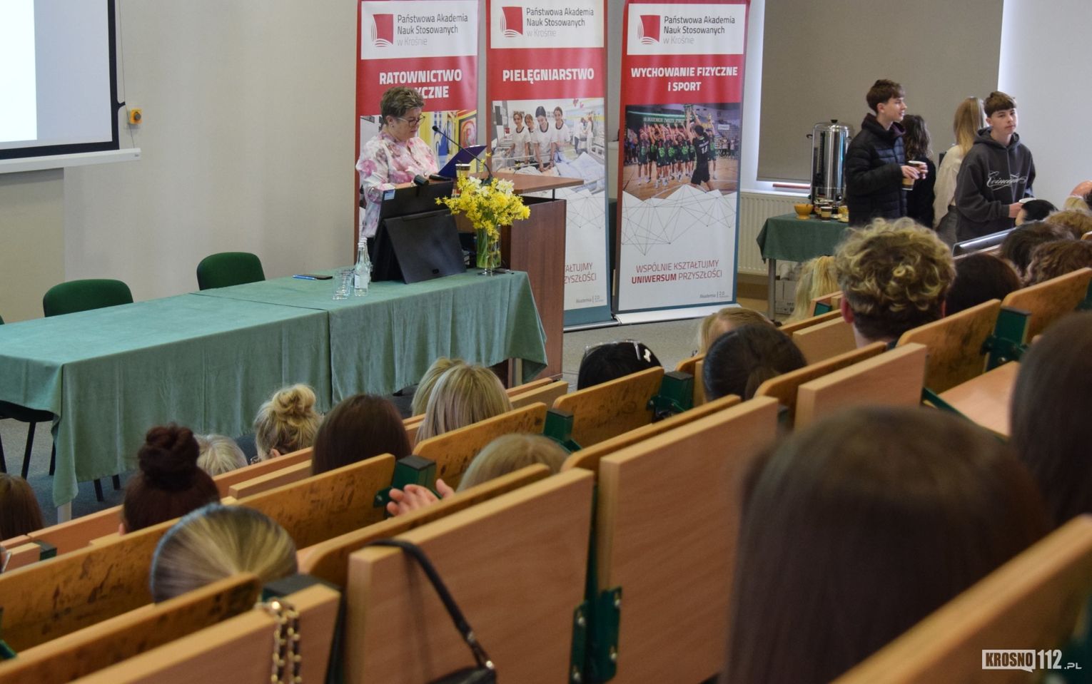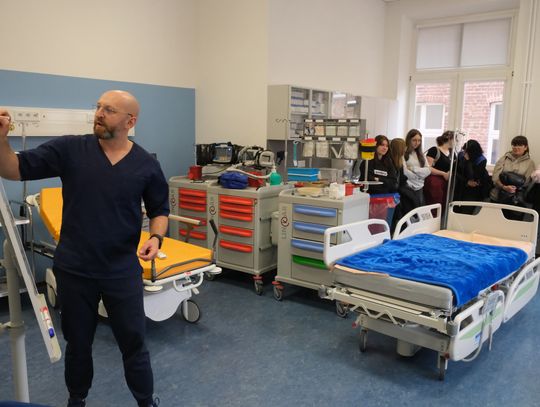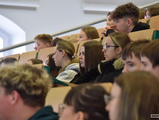 Dzisiejsze (10 kwietnia) spotkanie w murach krośnieńskiej uczelni podzielone było na dwie części. Pierwsza odbyła się w auli, natomiast druga w Centrum Symulacji Medycznej.