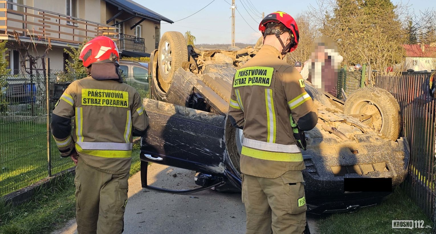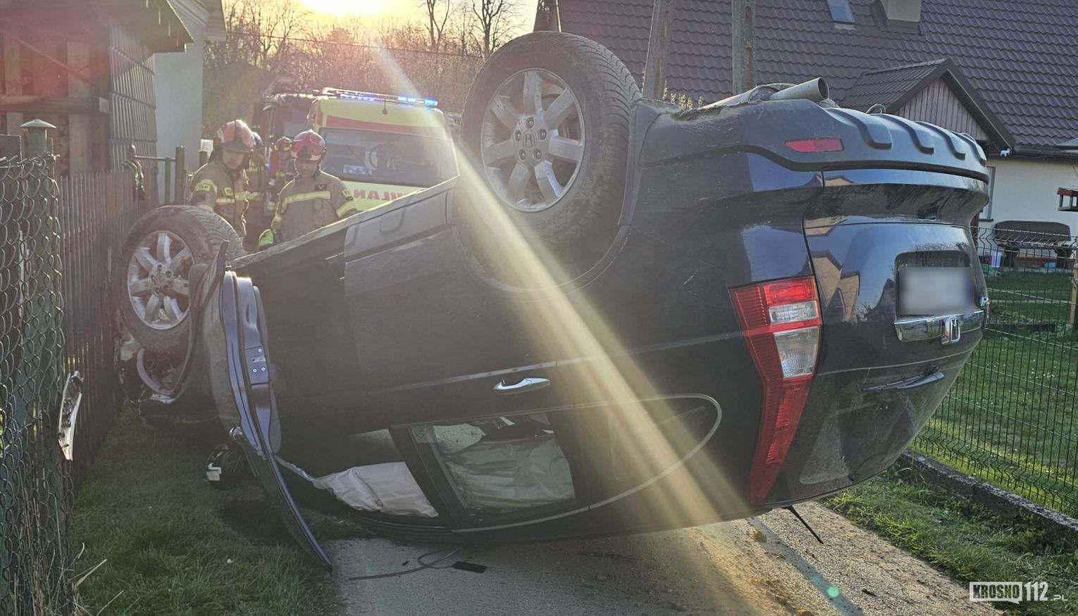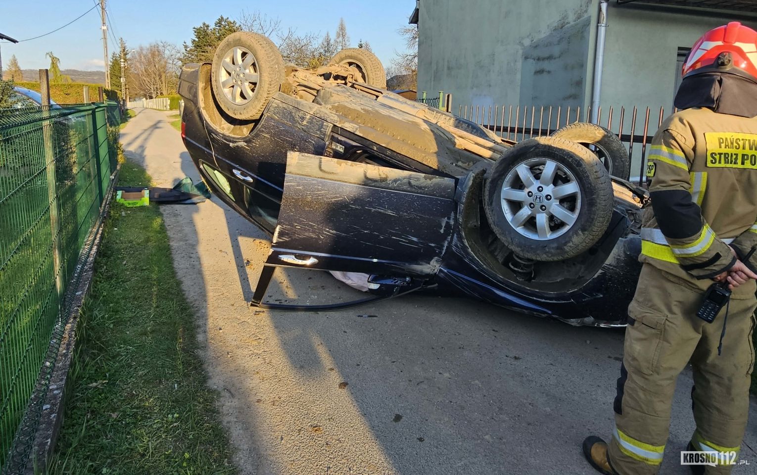 Sytuacja miała miejsce na wąskiej drodze gminnej pomiędzy domami. 30-letni mieszkaniec powiatu krośnieńskiego z dużą prędkością jechał w kierunku drogi głównej. Stracił panowanie nad samochodem i uderzył w ogrodzenie. Siła uderzenia przewróciła hondę na dach.