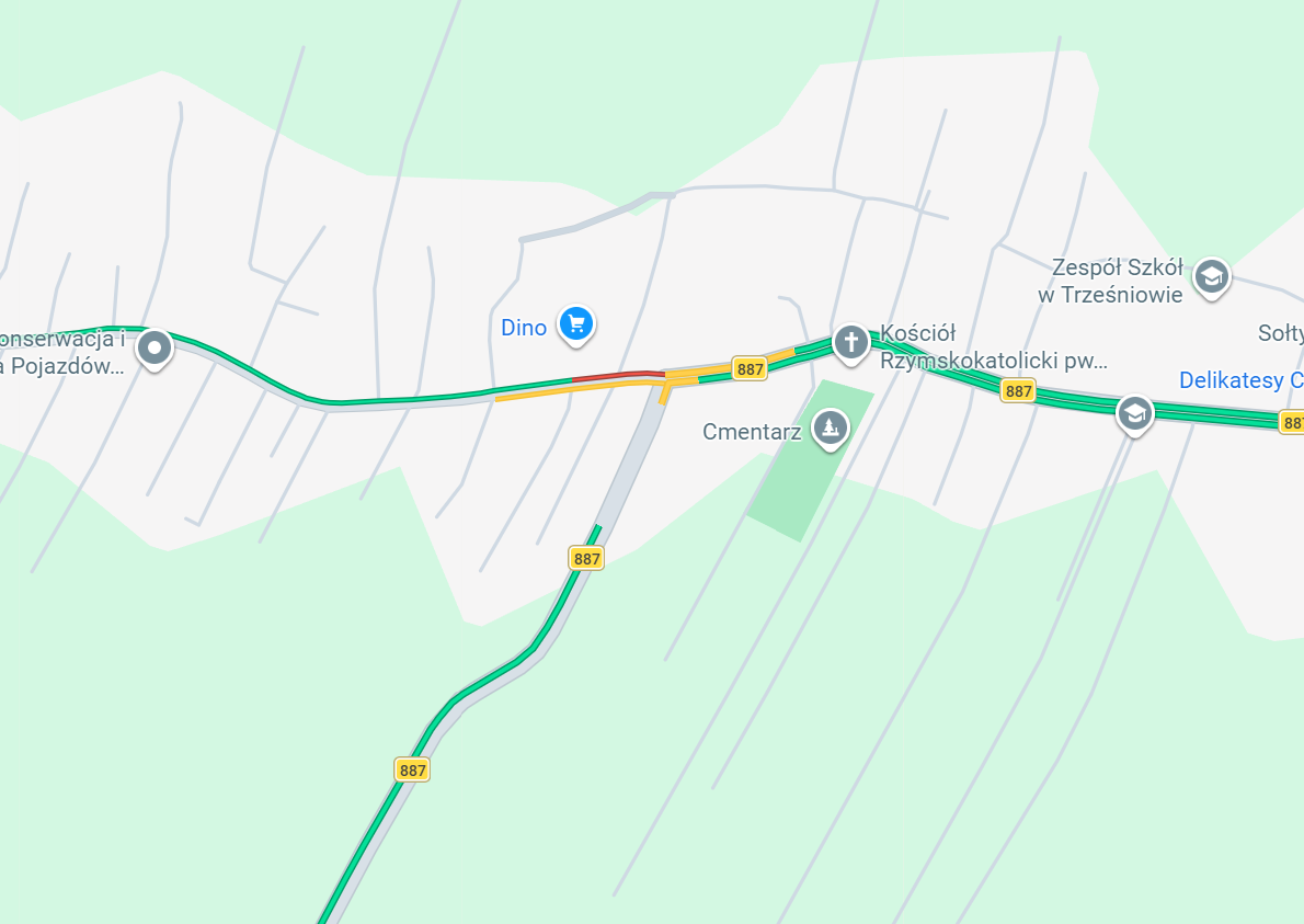 Ruch na skrzyżowaniu drogi powiatowej z DW887 odbywa się wahadłowo.