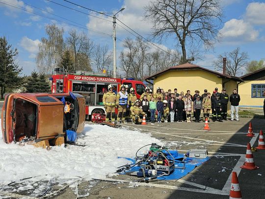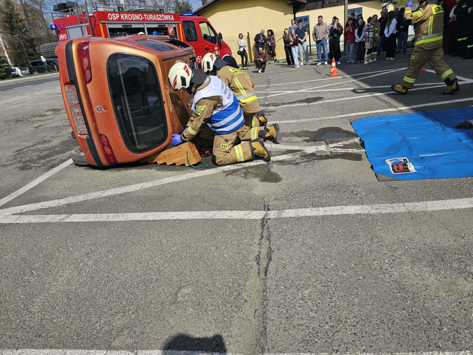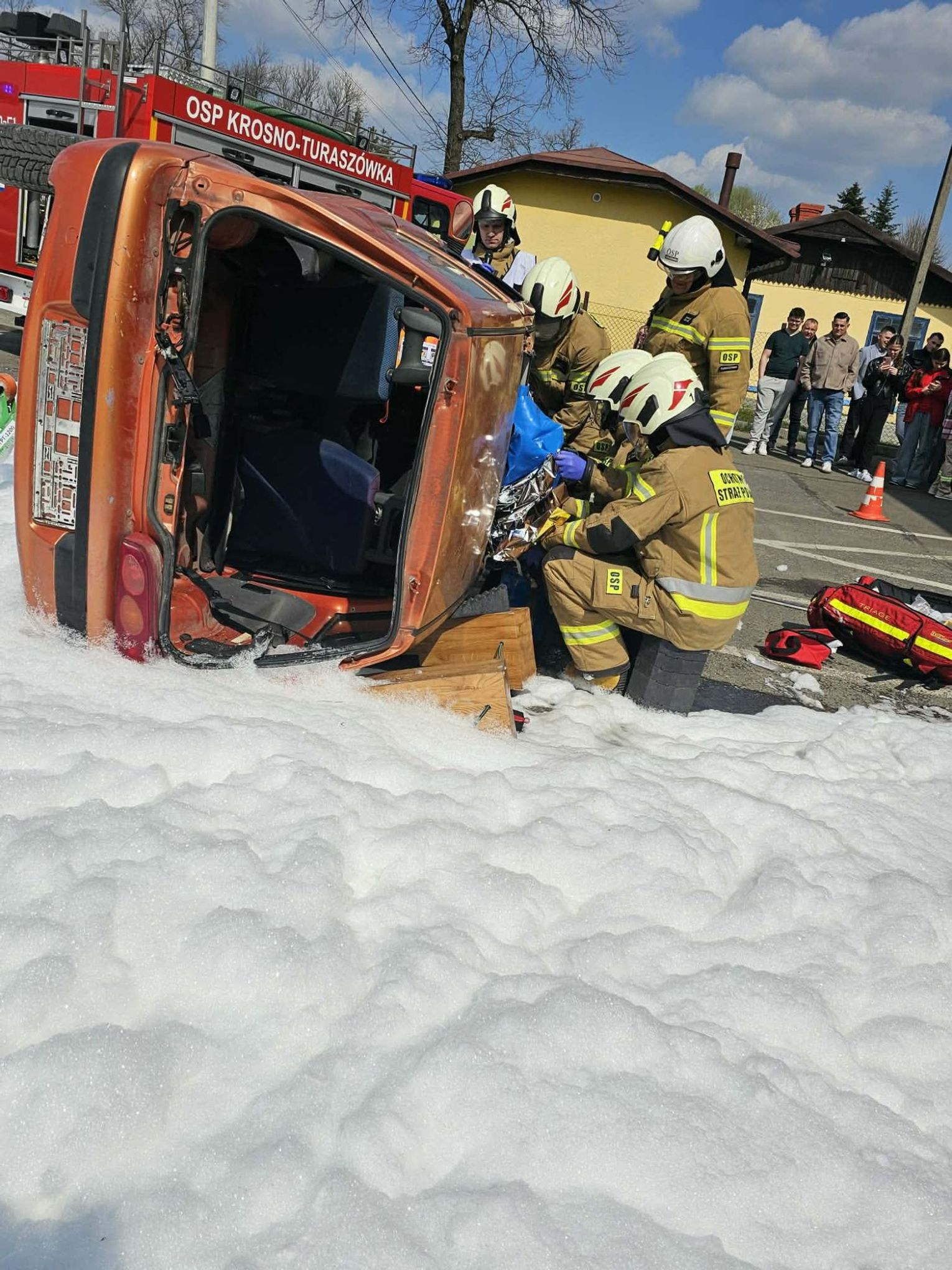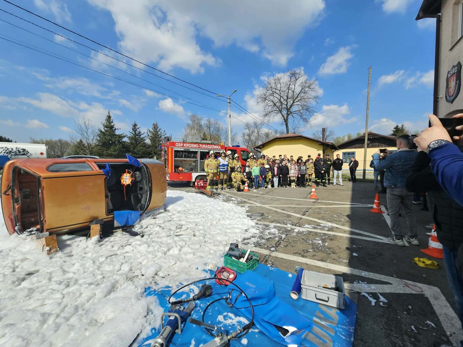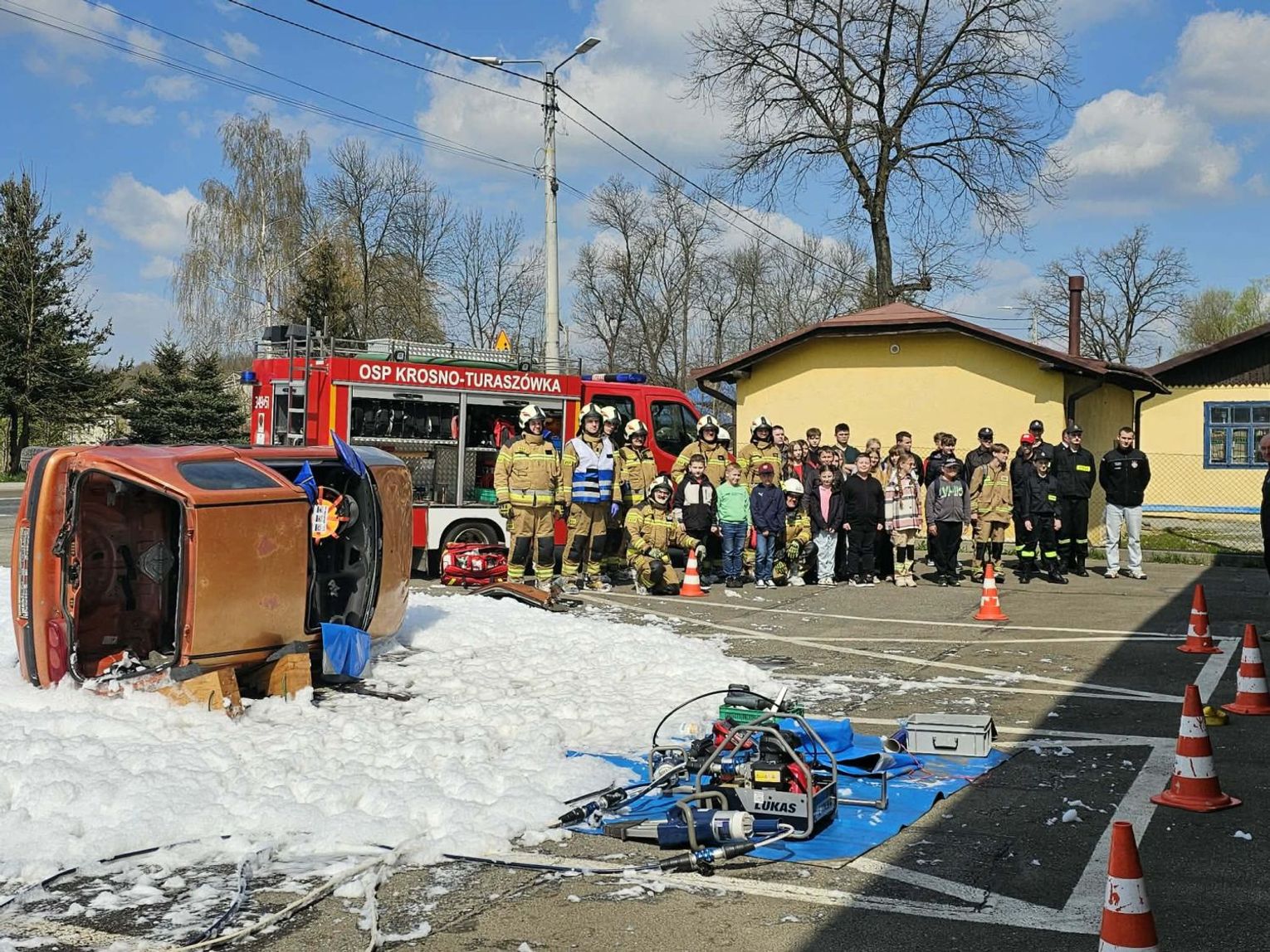 Młodzież, opiekunowie oraz zaproszeni goście w trakcie turnieju mogli obserwować pokaz umiejętności strażaków OSP Krosno-Turaszówka podczas zainscenizowanego wypadku drogowego.