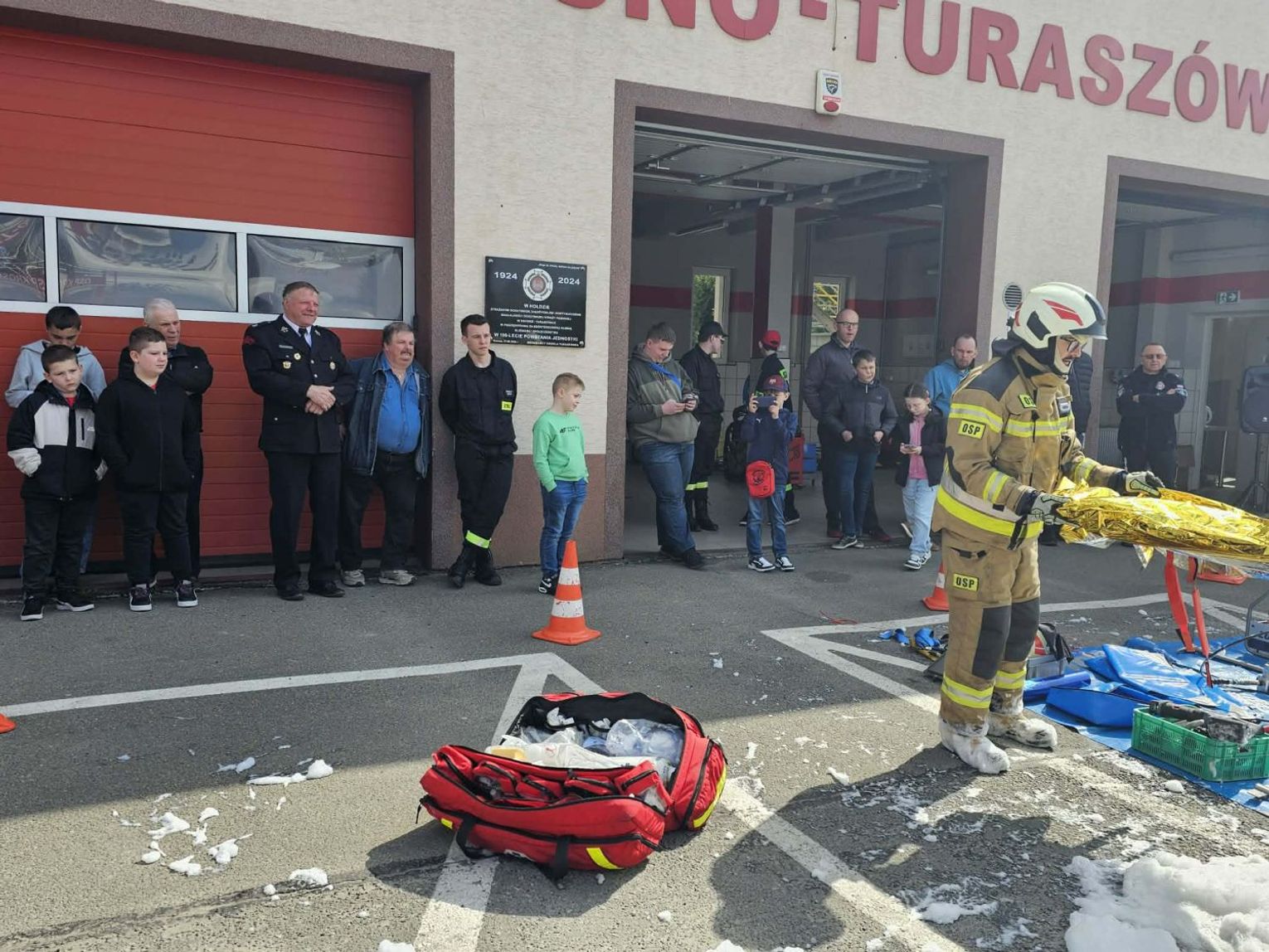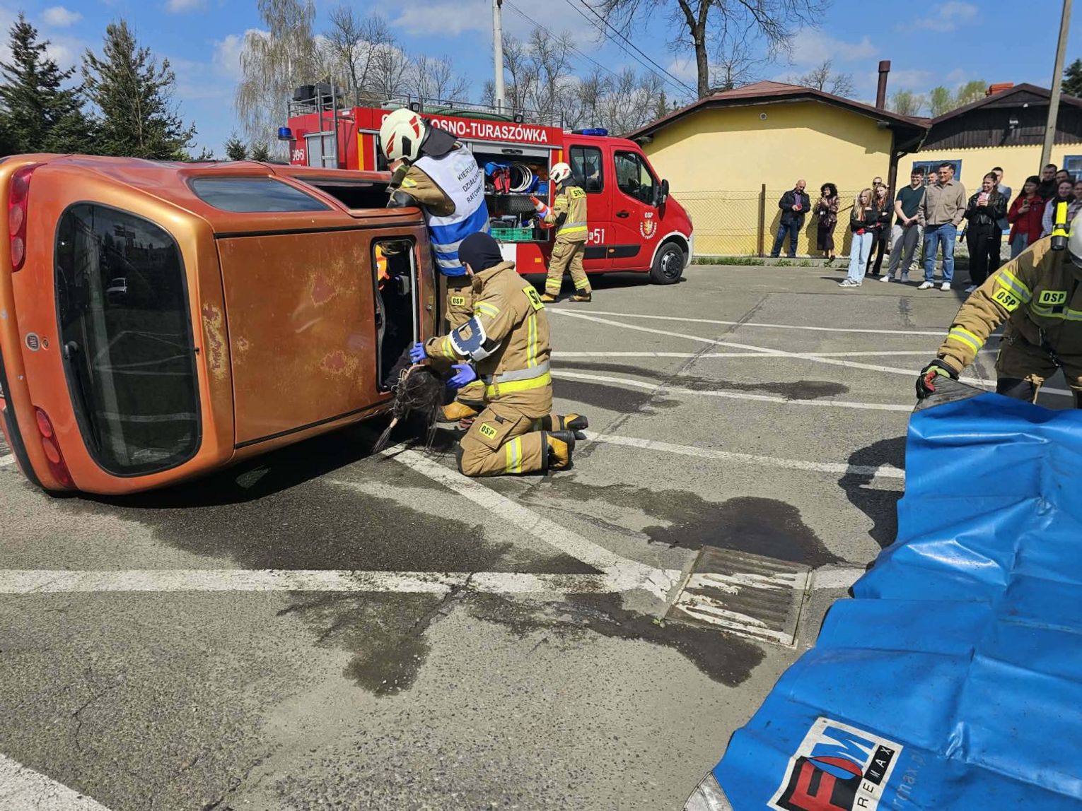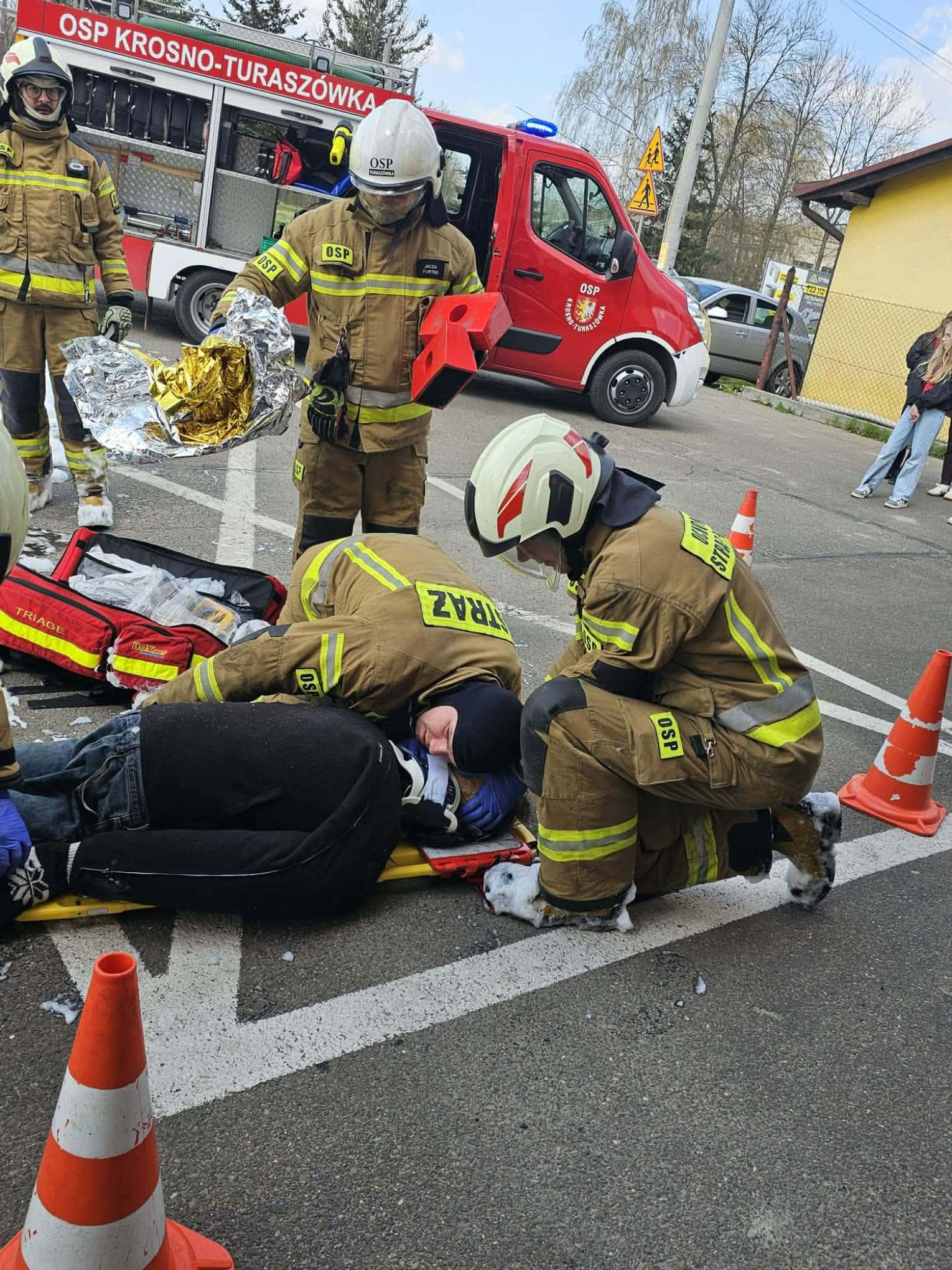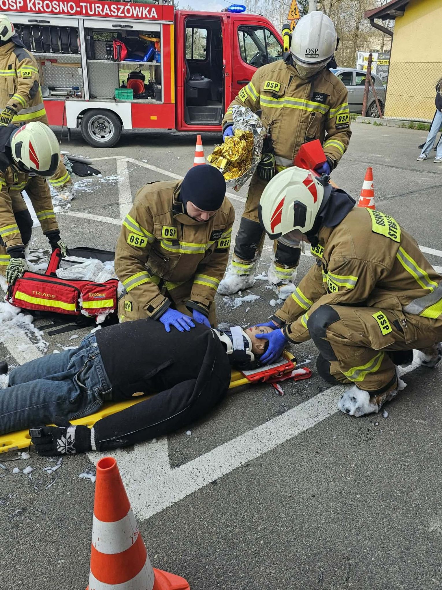 Młodzież, opiekunowie oraz zaproszeni goście w trakcie turnieju mogli obserwować pokaz umiejętności strażaków OSP Krosno-Turaszówka podczas zainscenizowanego wypadku drogowego.