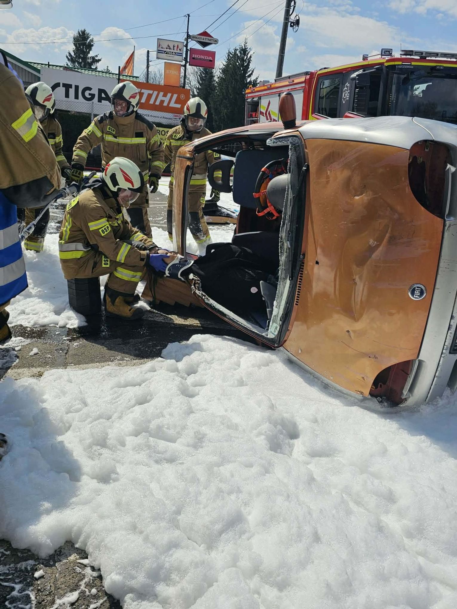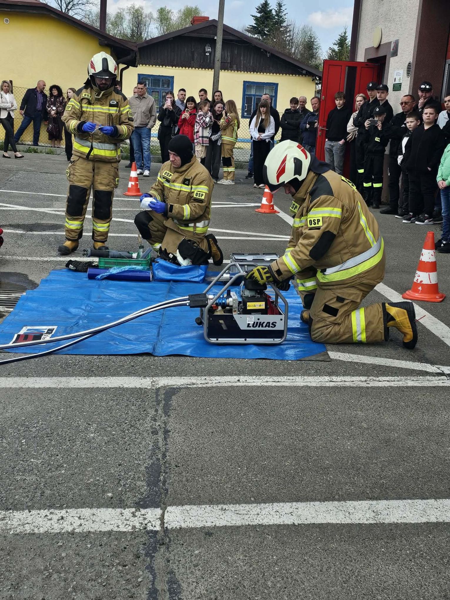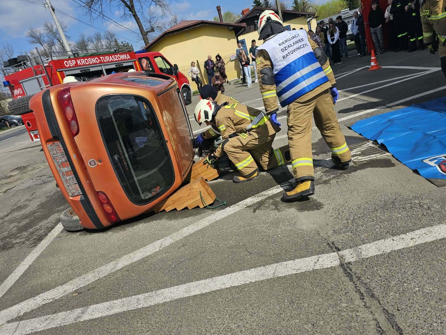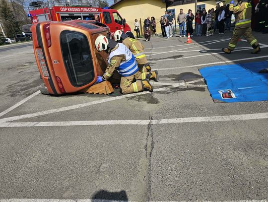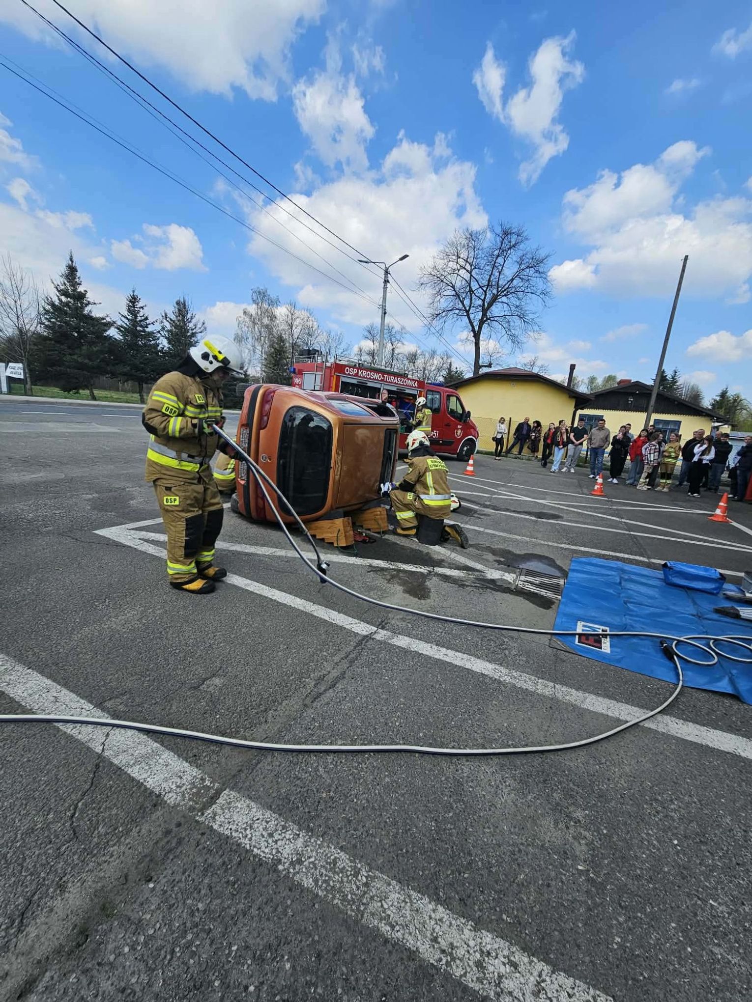 Młodzież, opiekunowie oraz zaproszeni goście w trakcie turnieju mogli obserwować pokaz umiejętności strażaków OSP Krosno-Turaszówka podczas zainscenizowanego wypadku drogowego.