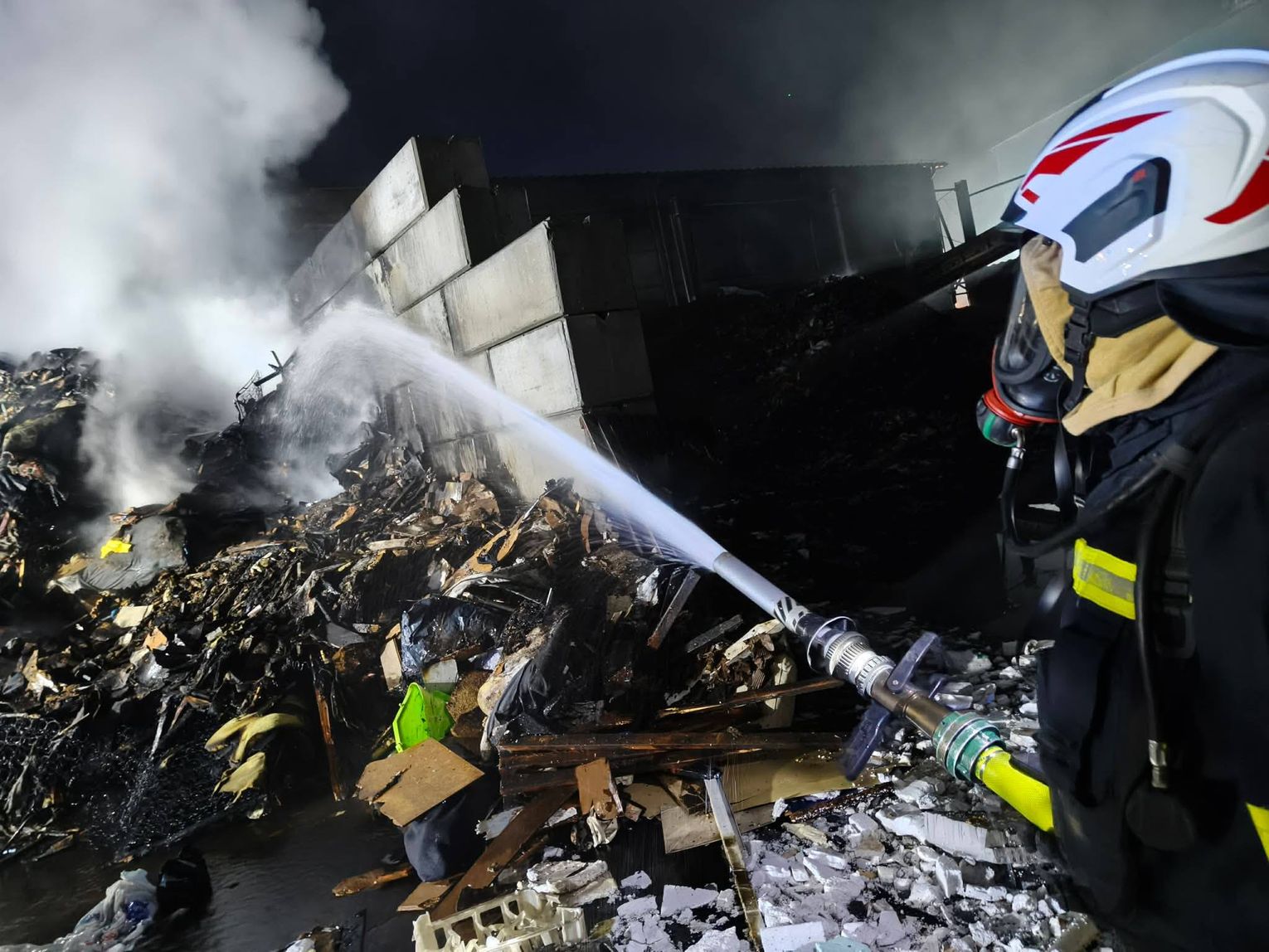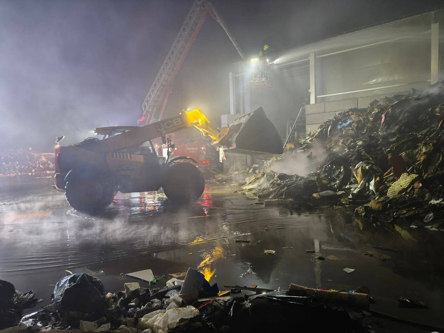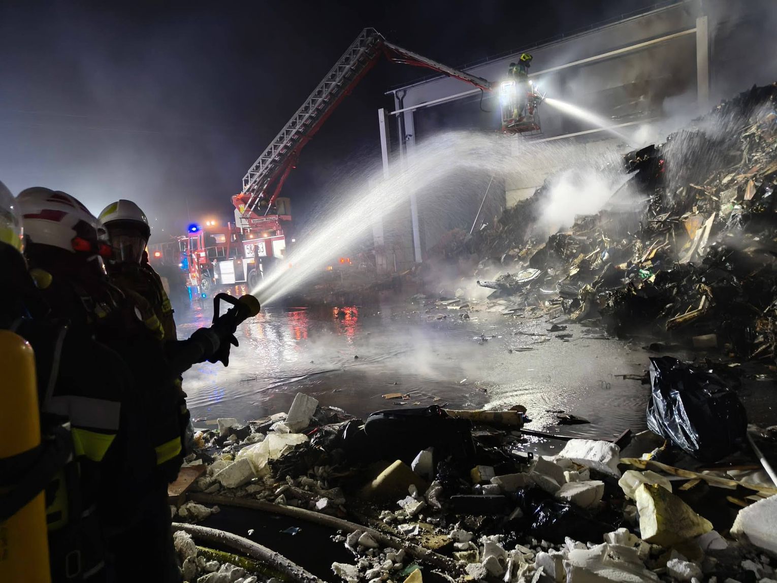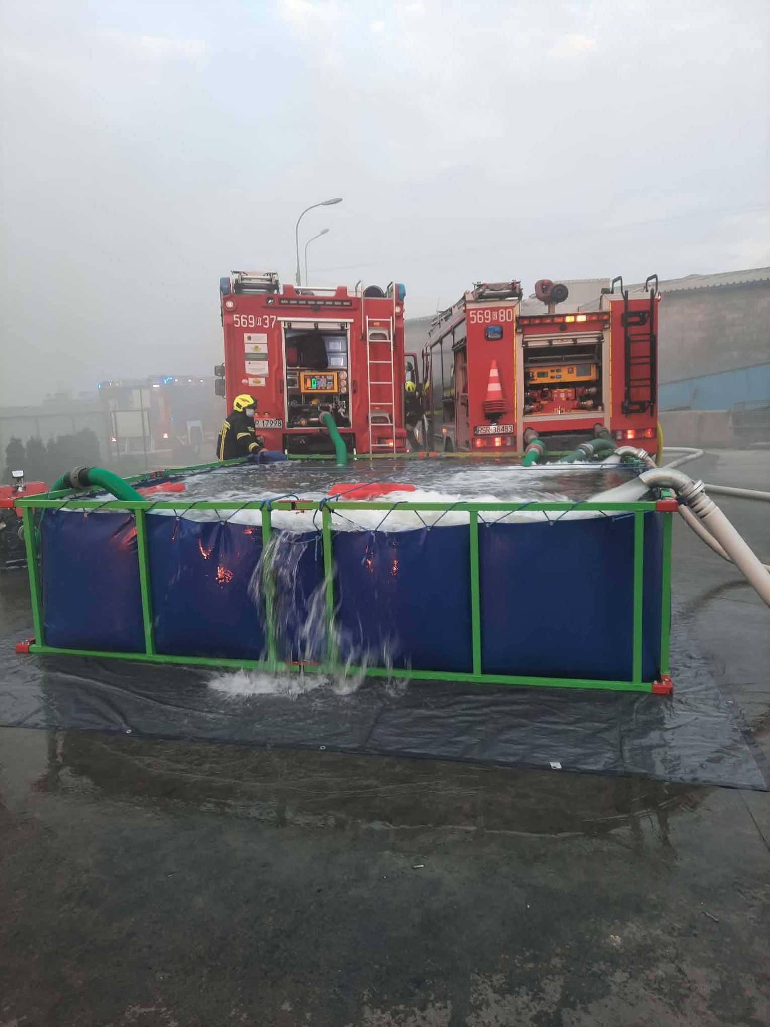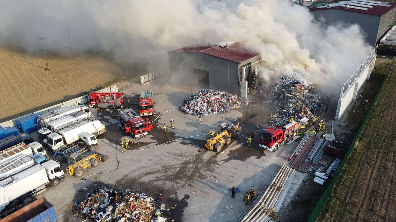 Ze względu na bardzo duże zadymienie oraz możliwość występowania toksycznych związków w powietrzu, strażacy prowadzili działania w aparatach ochrony dróg oddechowych. Jednostki uczestniczące w akcji zajmowały się m.in. dowożeniem wody, zasilaniem stanowisk gaśniczych oraz bezpośrednim gaszeniem płonących odpadów.