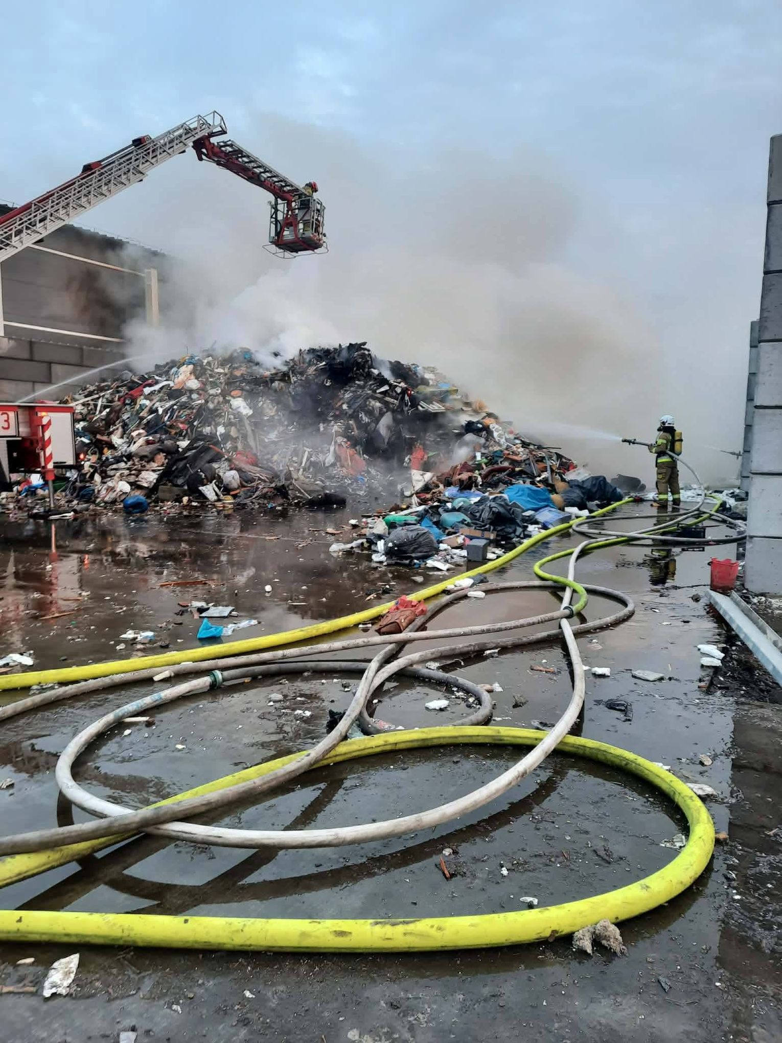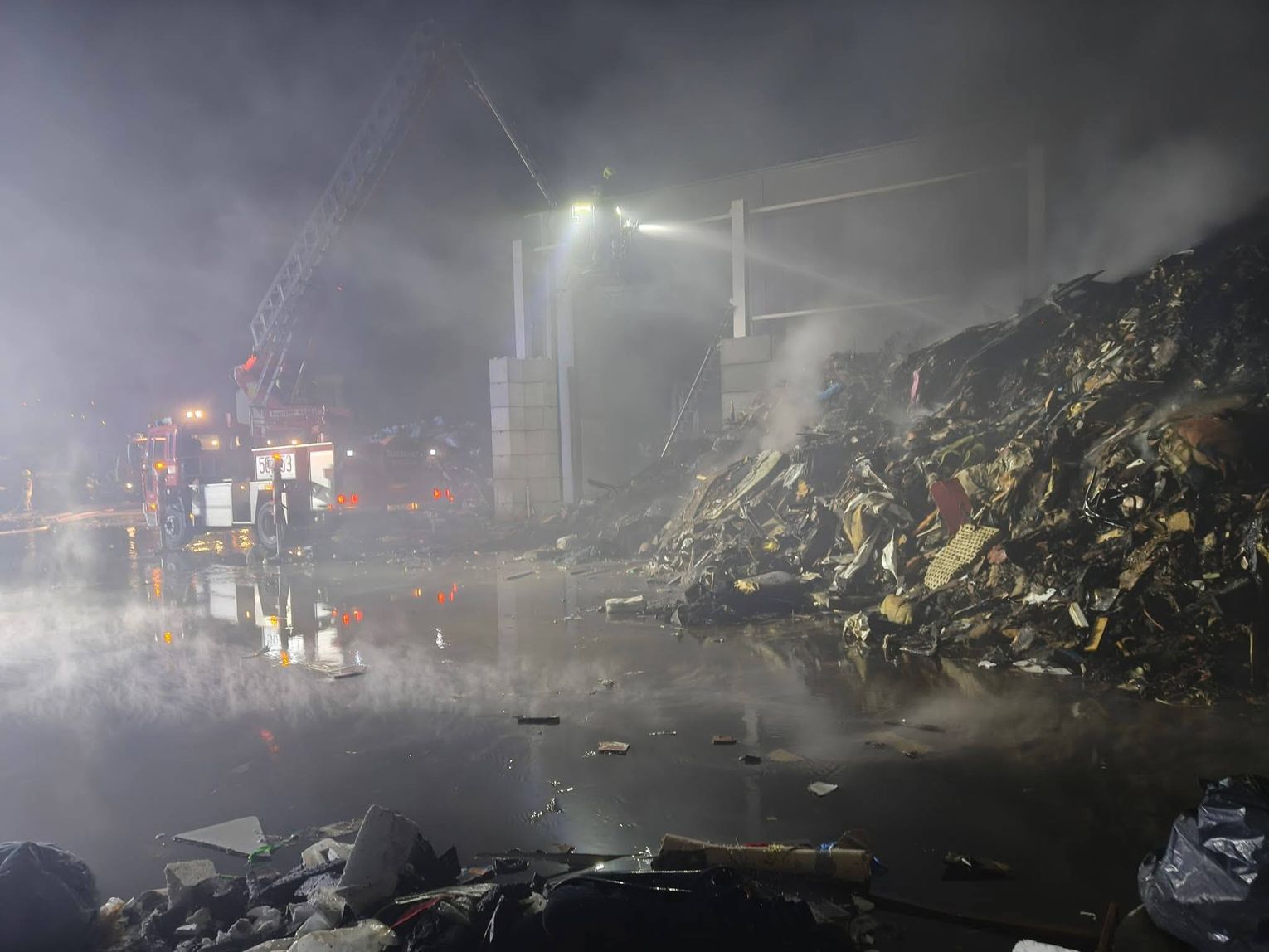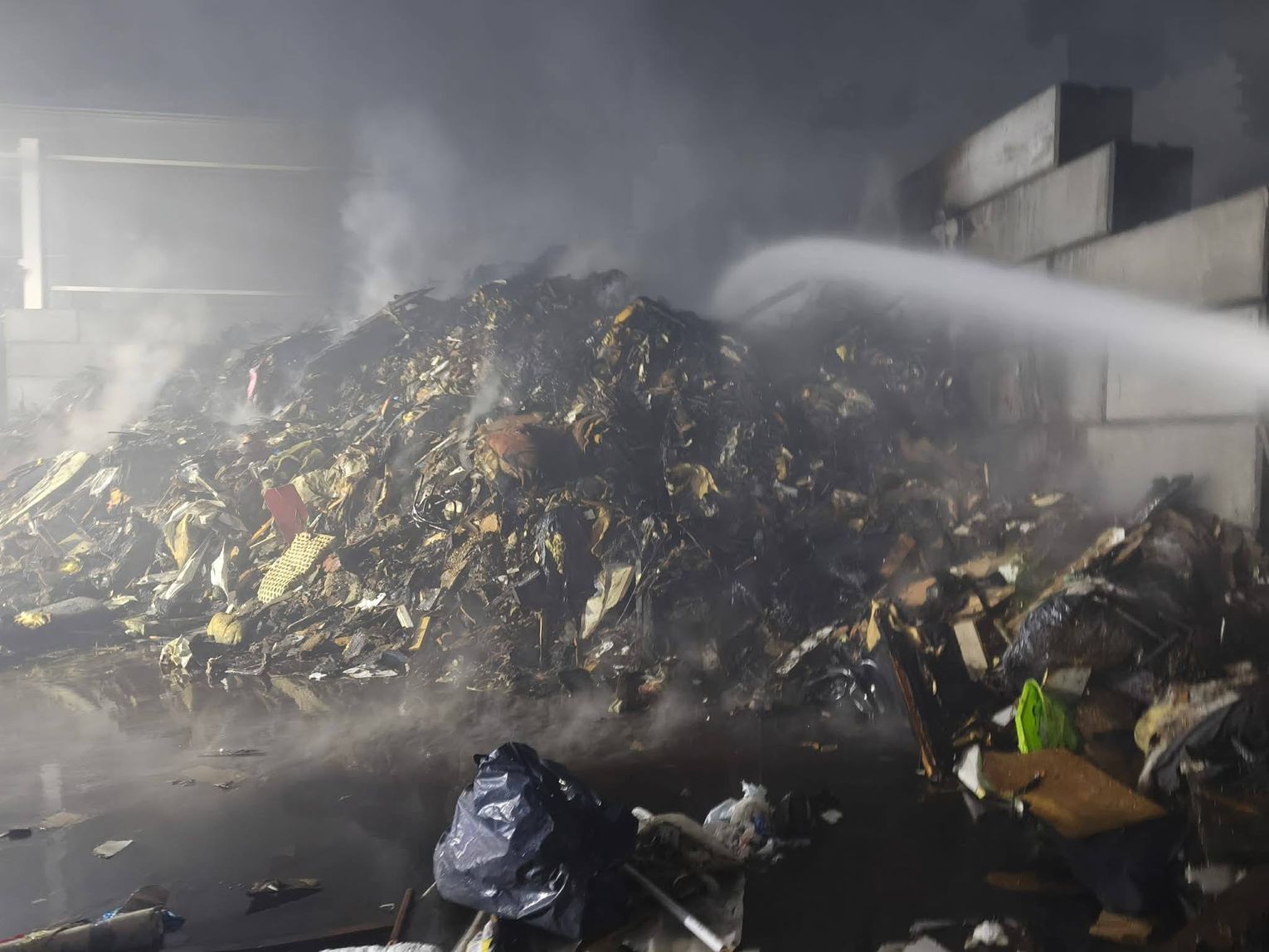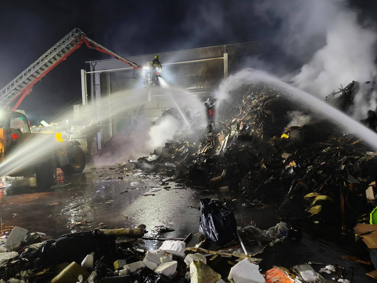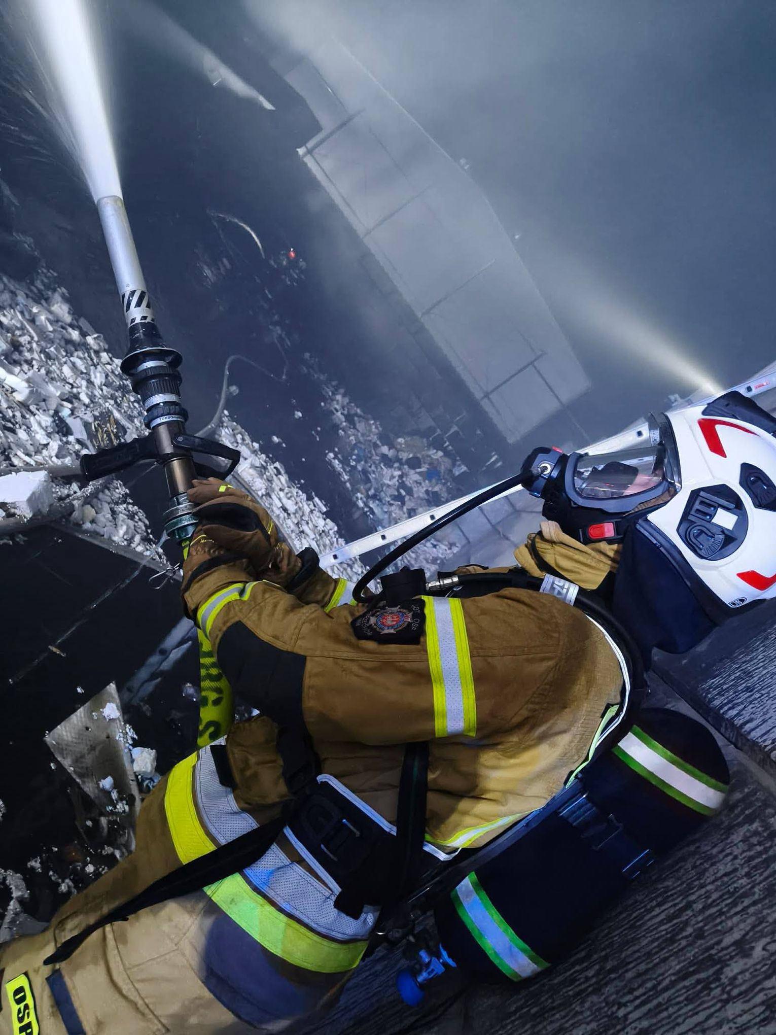 Ze względu na bardzo duże zadymienie oraz możliwość występowania toksycznych związków w powietrzu, strażacy prowadzili działania w aparatach ochrony dróg oddechowych. Jednostki uczestniczące w akcji zajmowały się m.in. dowożeniem wody, zasilaniem stanowisk gaśniczych oraz bezpośrednim gaszeniem płonących odpadów.