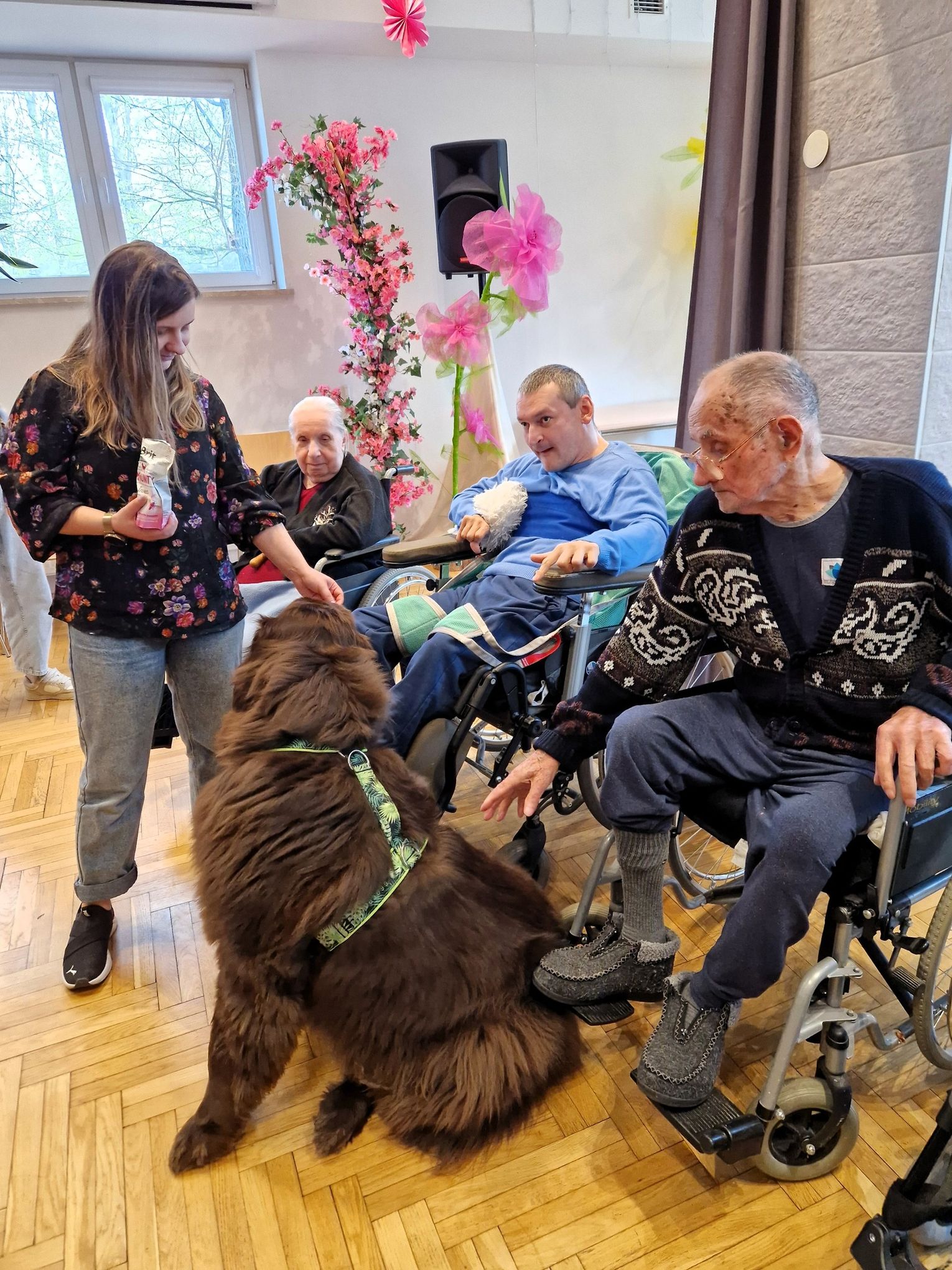 Już od pierwszych chwil sympatyczna czworonożna terapeutka skradła serca mieszkańców. Tajga okazała się prawdziwą specjalistką od przytulasów, poprawiania humoru oraz zdobywania smaczków w ekspresowym tempie. Jej obecność szybko przełamała bariery i zachęciła uczestników spotkania do rozmów oraz wspólnej aktywności.