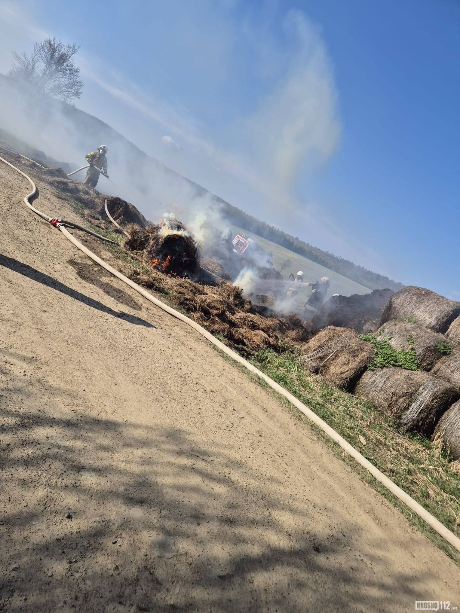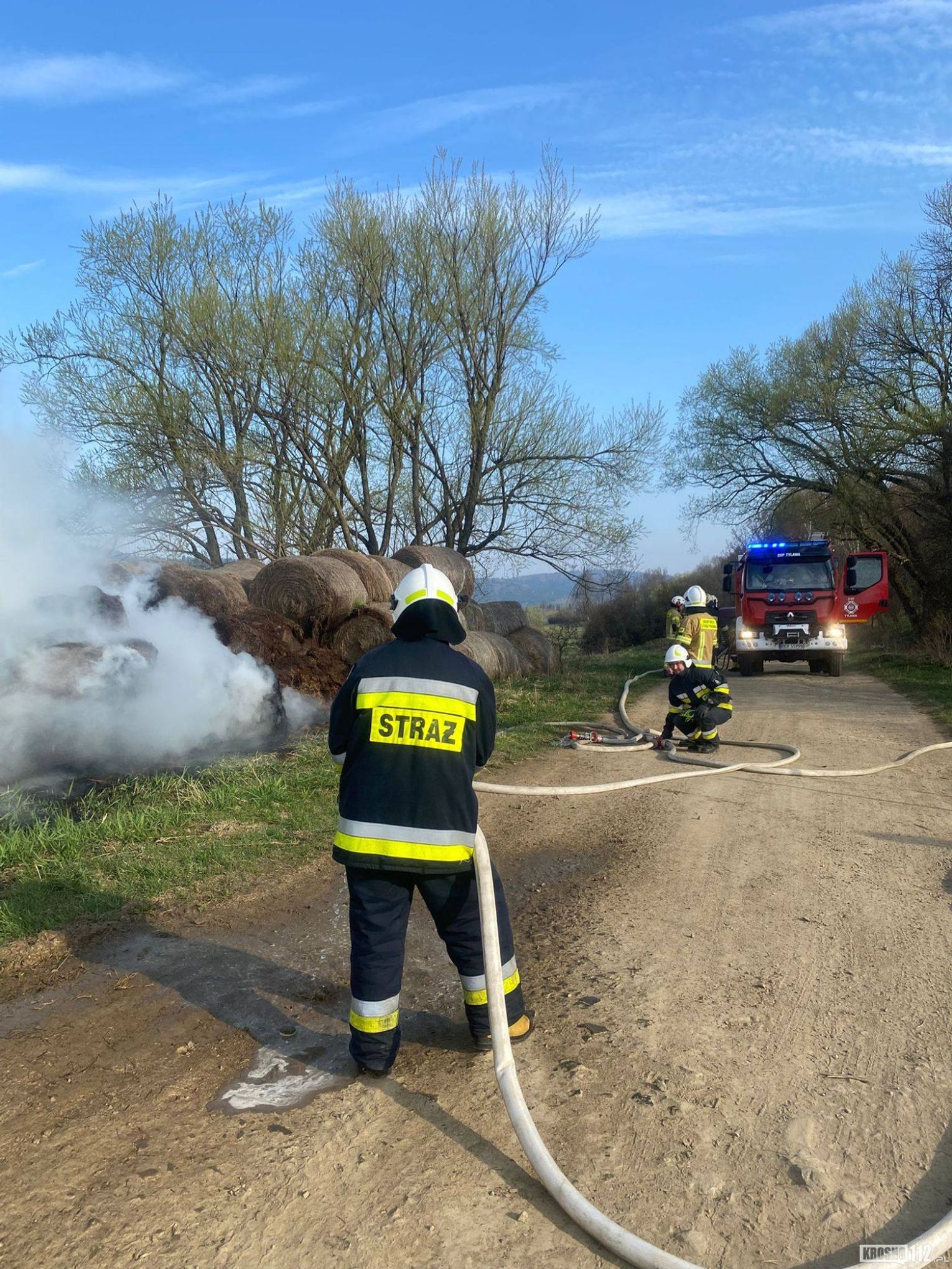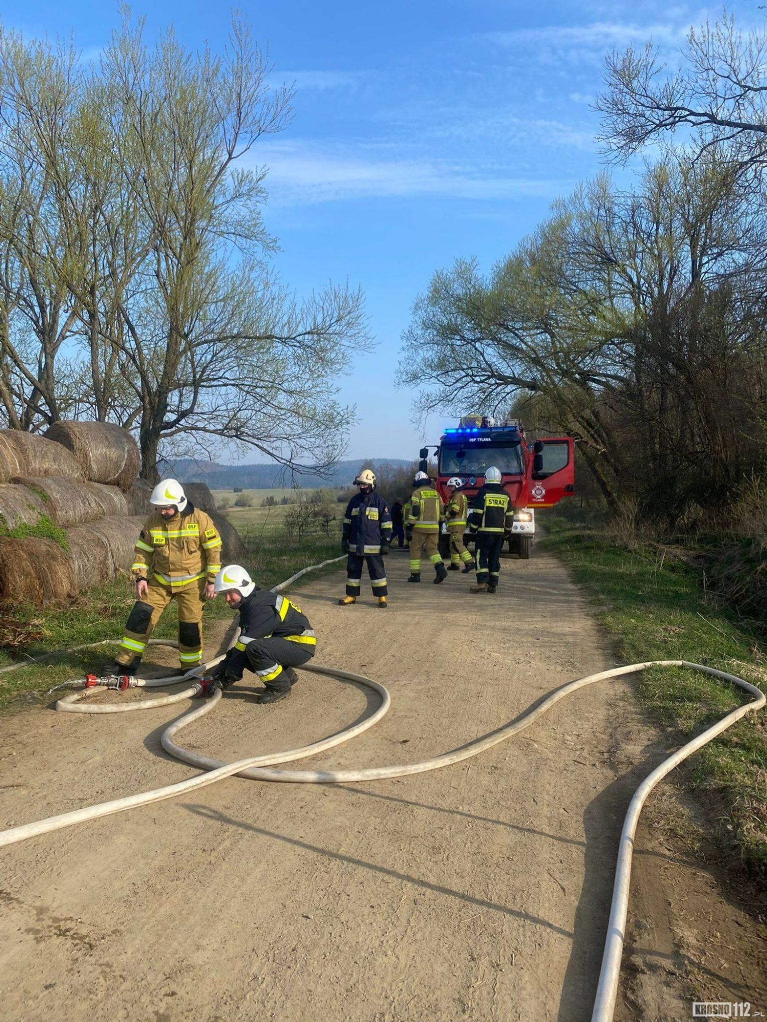 Pierwsze zgłoszenie wpłynęło do Stanowiska Kierowania Komendanta Miejskiego PSP w Krośnie około godziny 7.30. Do zdarzenia zadysponowano strażaków z jednostek Ochotniczych Straży Pożarnych: OSP KSRG Tylawa, OSP KSRG Jaśliska (dwa zastępy) oraz OSP KSRG Dukla. Działania polegały na ugaszeniu palących się balotów siana oraz zabezpieczeniu miejsca zdarzenia.
