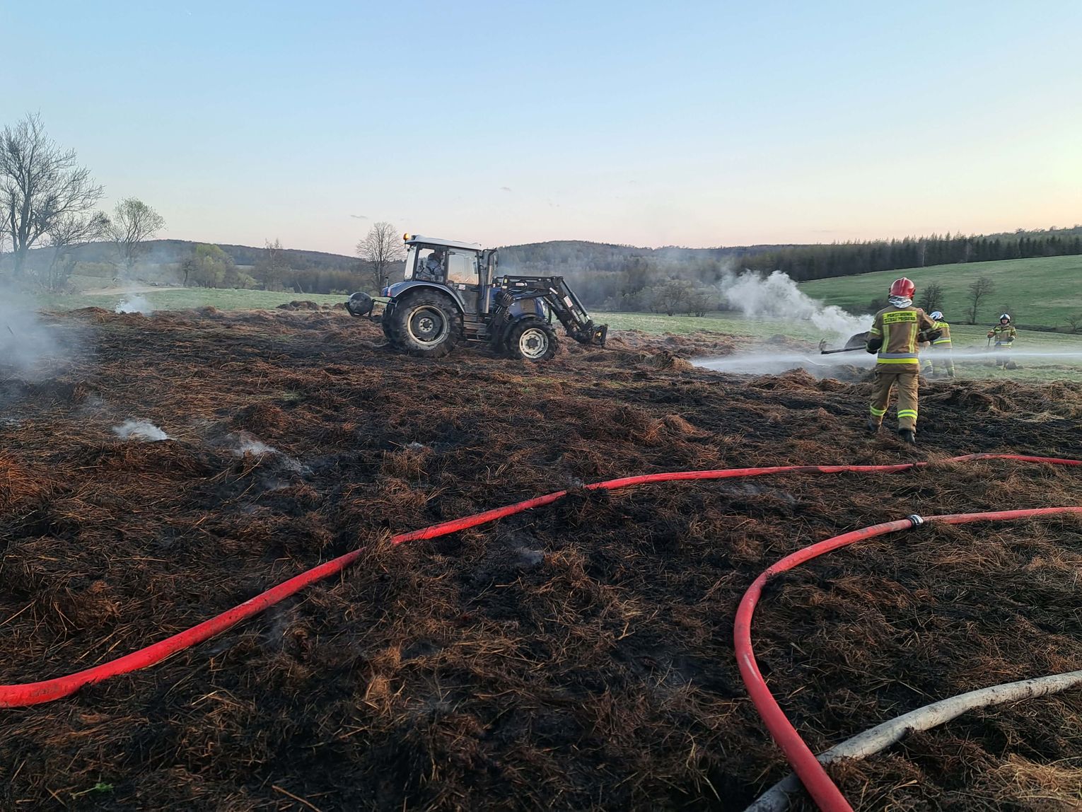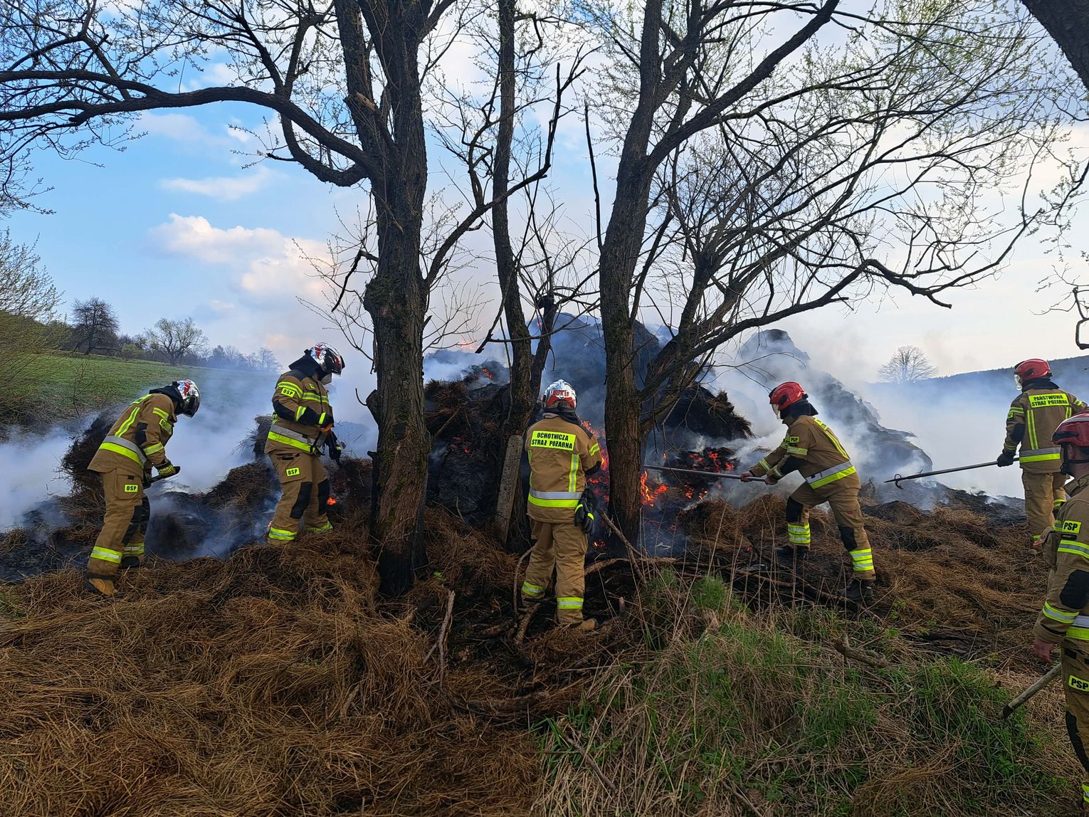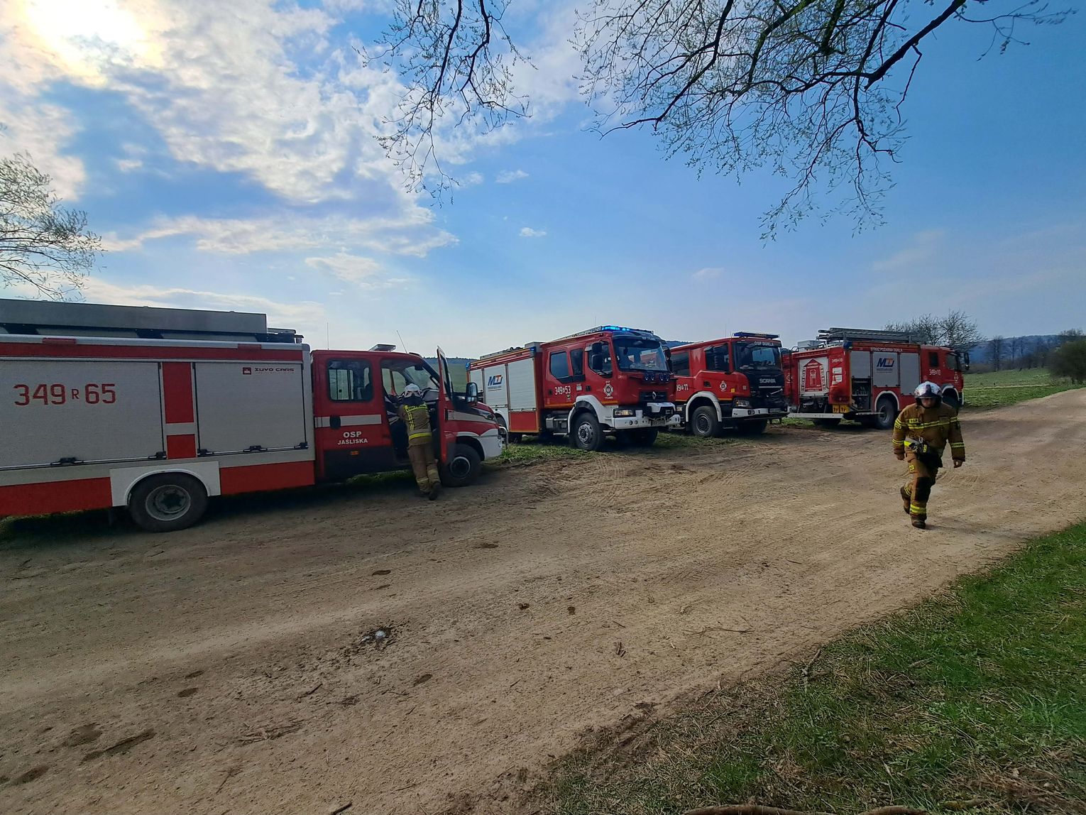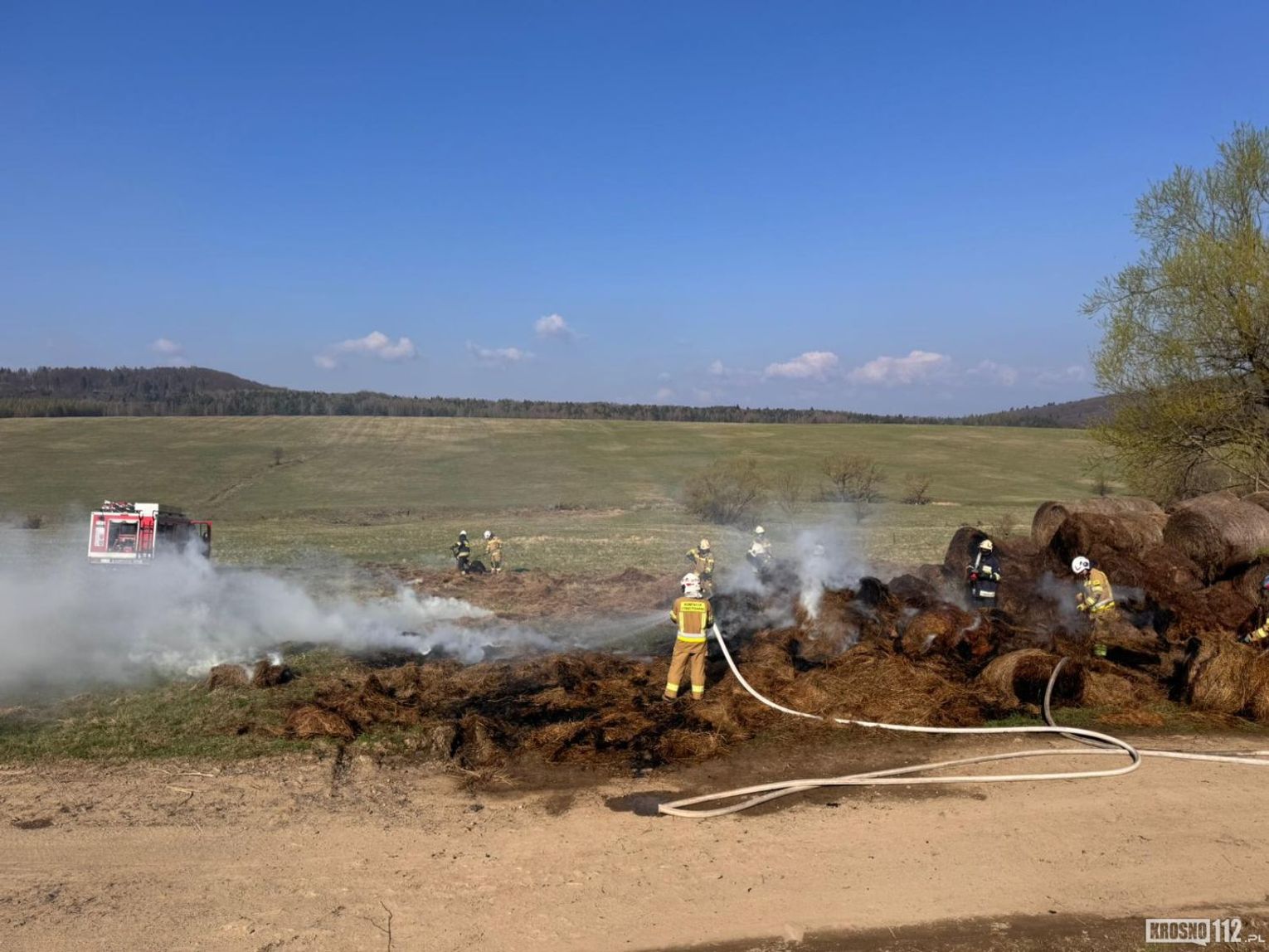 Pierwsze zgłoszenie wpłynęło do Stanowiska Kierowania Komendanta Miejskiego PSP w Krośnie około godziny 7.30. Do zdarzenia zadysponowano strażaków z jednostek Ochotniczych Straży Pożarnych: OSP KSRG Tylawa, OSP KSRG Jaśliska (dwa zastępy) oraz OSP KSRG Dukla. Działania polegały na ugaszeniu palących się balotów siana oraz zabezpieczeniu miejsca zdarzenia.