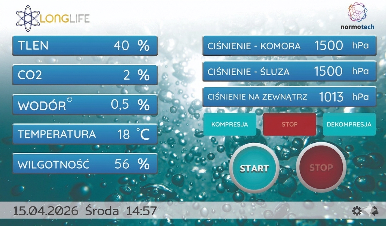 Normobaria to przestrzeń, w której zmienia się coś, o czym na co dzień w ogóle nie myślimy - powietrze, którym oddychamy. Brzmi prosto, ale to właśnie ono ma ogromny wpływ na to, jak funkcjonuje organizm. Wewnątrz normobarii panują inne warunki niż na zewnątrz, wyższe ciśnienie oraz powietrze o specjalnie dobranym składzie, wzbogacone m.in. w tlen, dwutlenek węgla i cząsteczkowy wodór. I tu pojawia się coś, co dla wielu osób jest zaskoczeniem. Oprócz samej ilości tlenu istotne jest również to, jak efektywnie jest on transportowany i wykorzystywany w organizmie. Dwutlenek węgla odgrywa w tym procesie istotną rolę, wspierając transport tlenu tam, gdzie występuje na niego zapotrzebowanie, dzięki czemu cały mechanizm działa sprawniej. Dlatego wiele osób już po pierwszej wizycie mówi o uczuciu lekkości, wyraźnym odprężeniu, poprawie jakości snu oraz zupełnie innym poziomie regeneracji. Dodatkowo powietrze wzbogacone jest o cząsteczkowy wodór, który znany jest ze swoich właściwości antyoksydacyjnych i wspiera naturalne procesy zachodzące w organizmie.