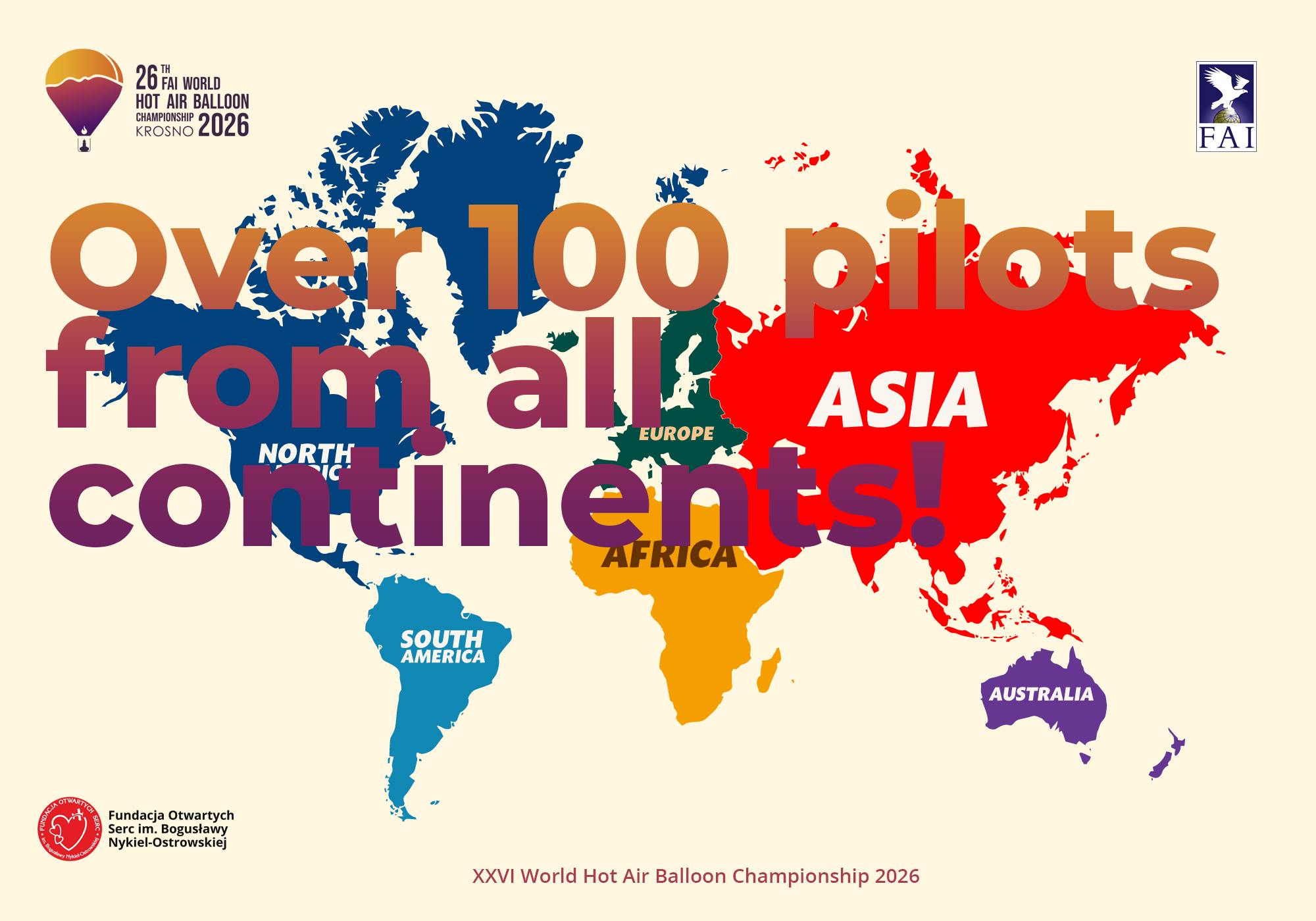 We wrześniu do Krosna przyjadą najlepsi piloci balonowi reprezentujący wszystkie kontynenty. Na liście startowej znajdą się zawodnicy z Europy, Azji, Afryki, Australii, Ameryki Północnej, Ameryki Południowej.