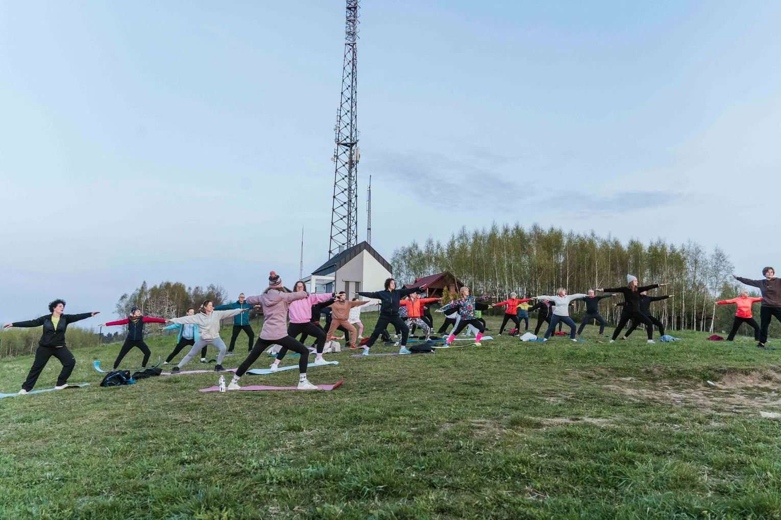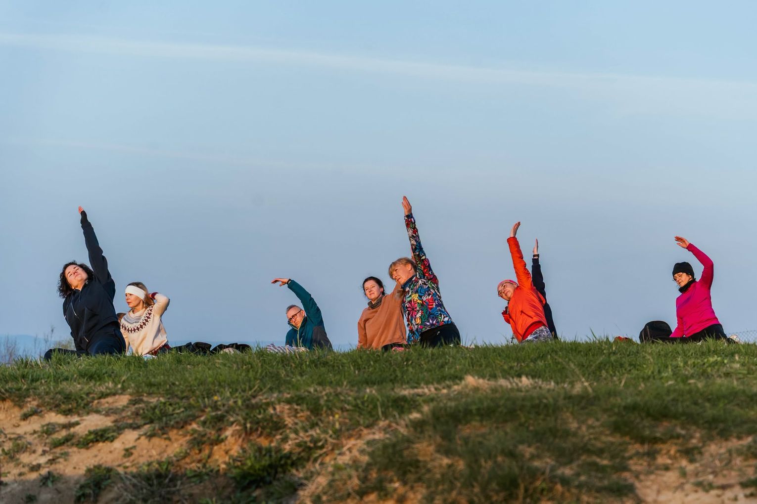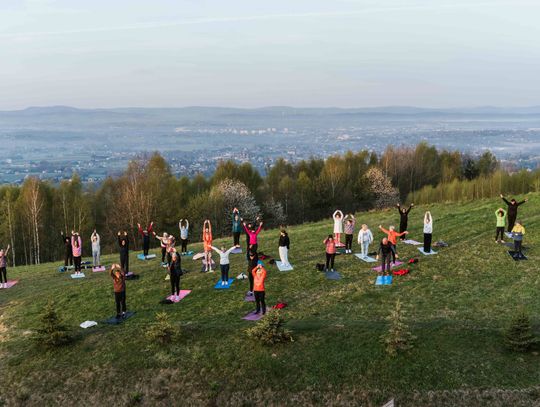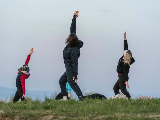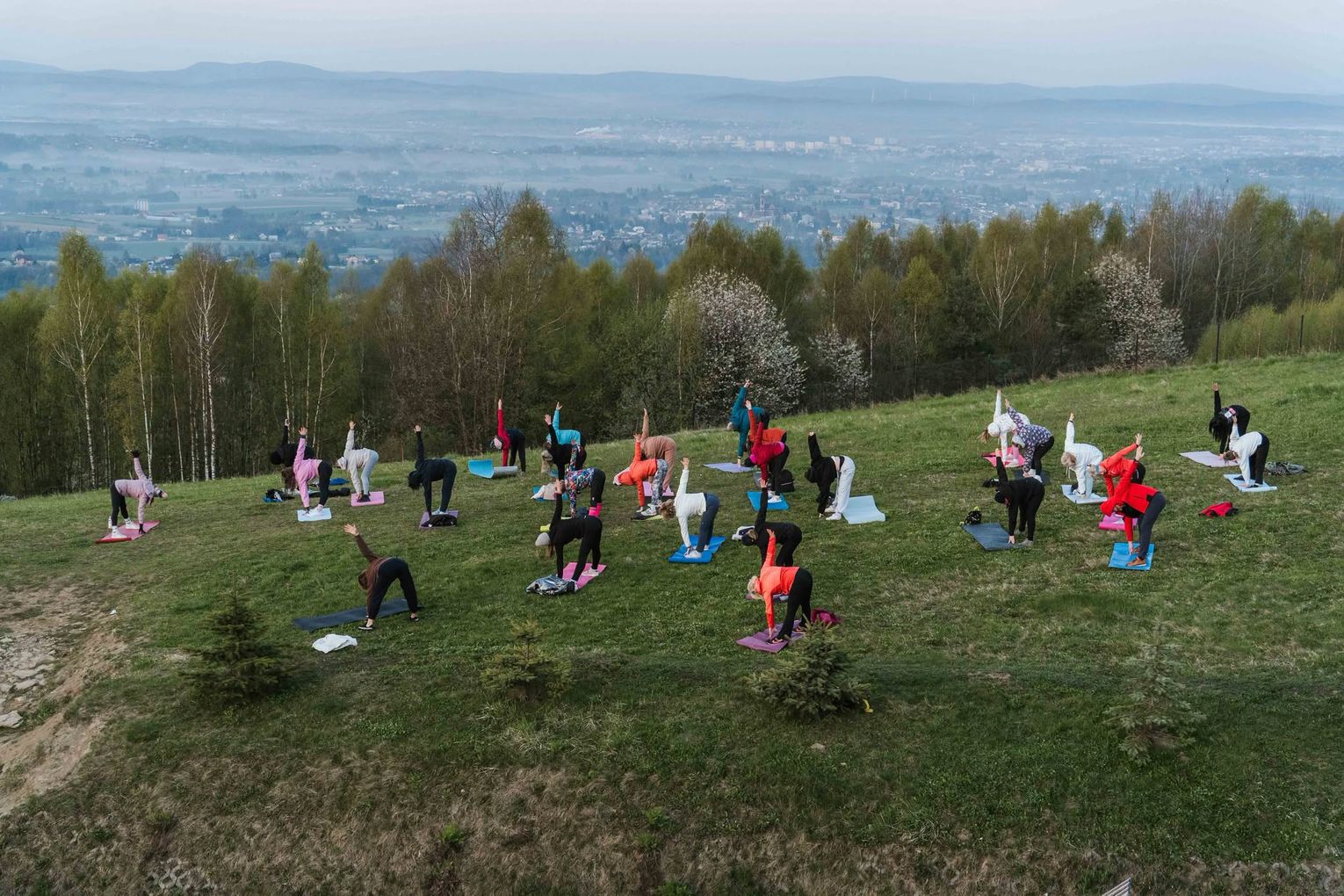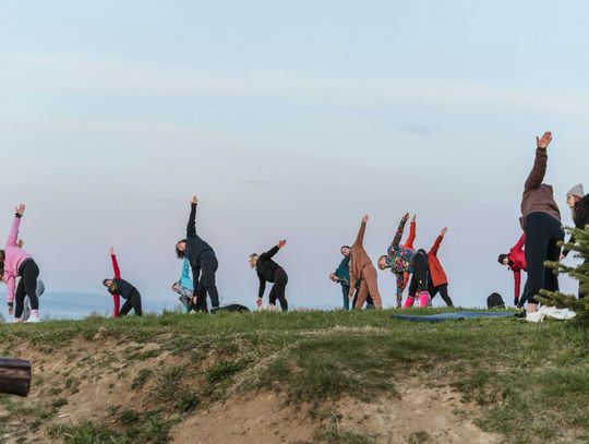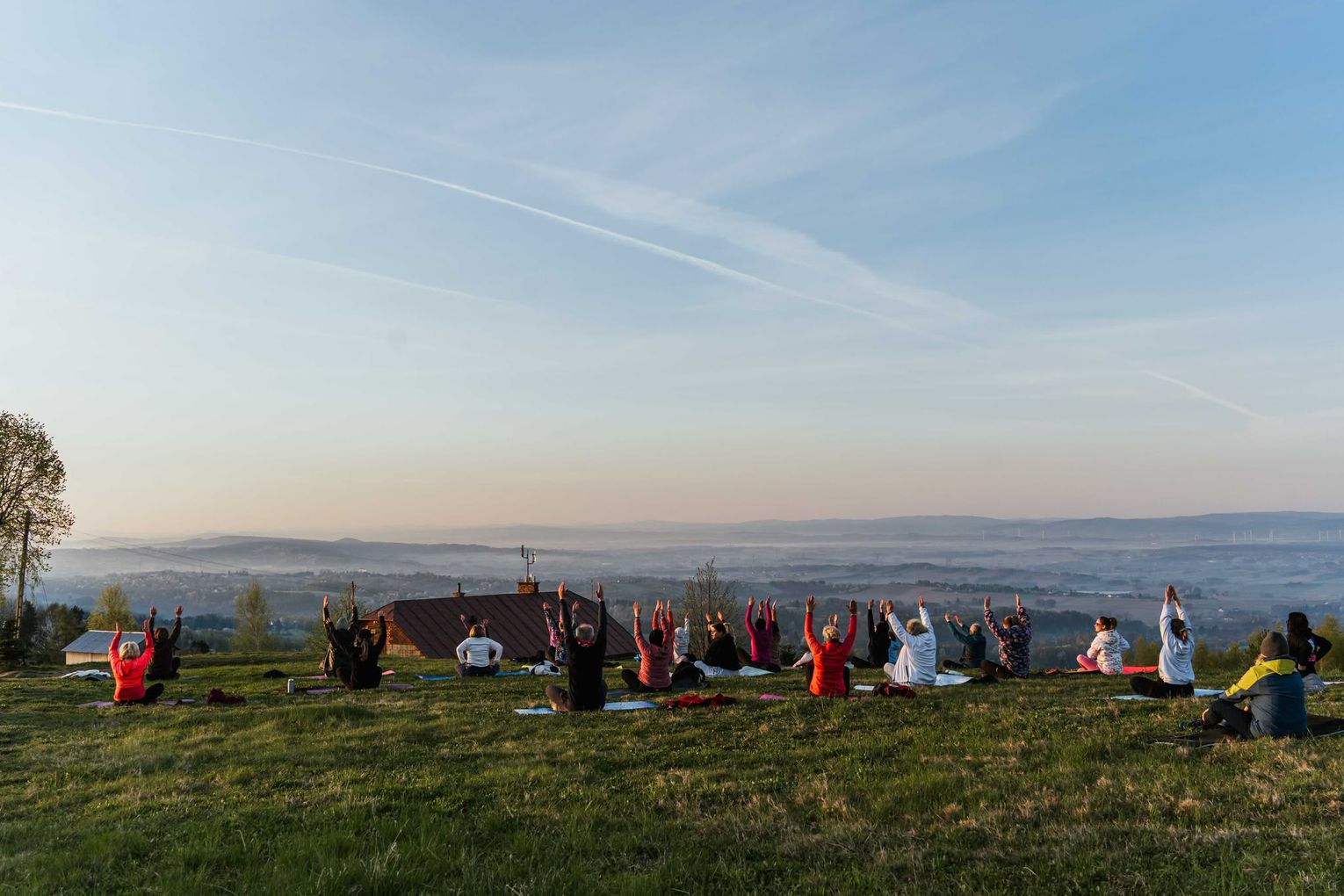 Mimo chłodnego poranka uczestnikom towarzyszyła wyjątkowa atmosfera – pełna radości, spokoju i wewnętrznego wyciszenia. Wędrówka zakończyła się na szczycie, gdzie wśród malowniczych krajobrazów i pierwszych promieni słońca rozpoczęła się sesja jogi prowadzona przez Lidię Urbanek. Zajęcia pozwoliły uczestnikom odnaleźć równowagę między ciałem a umysłem, a jednocześnie na chwilę zatrzymać się i w pełni doświadczyć piękna budzącego się dnia.