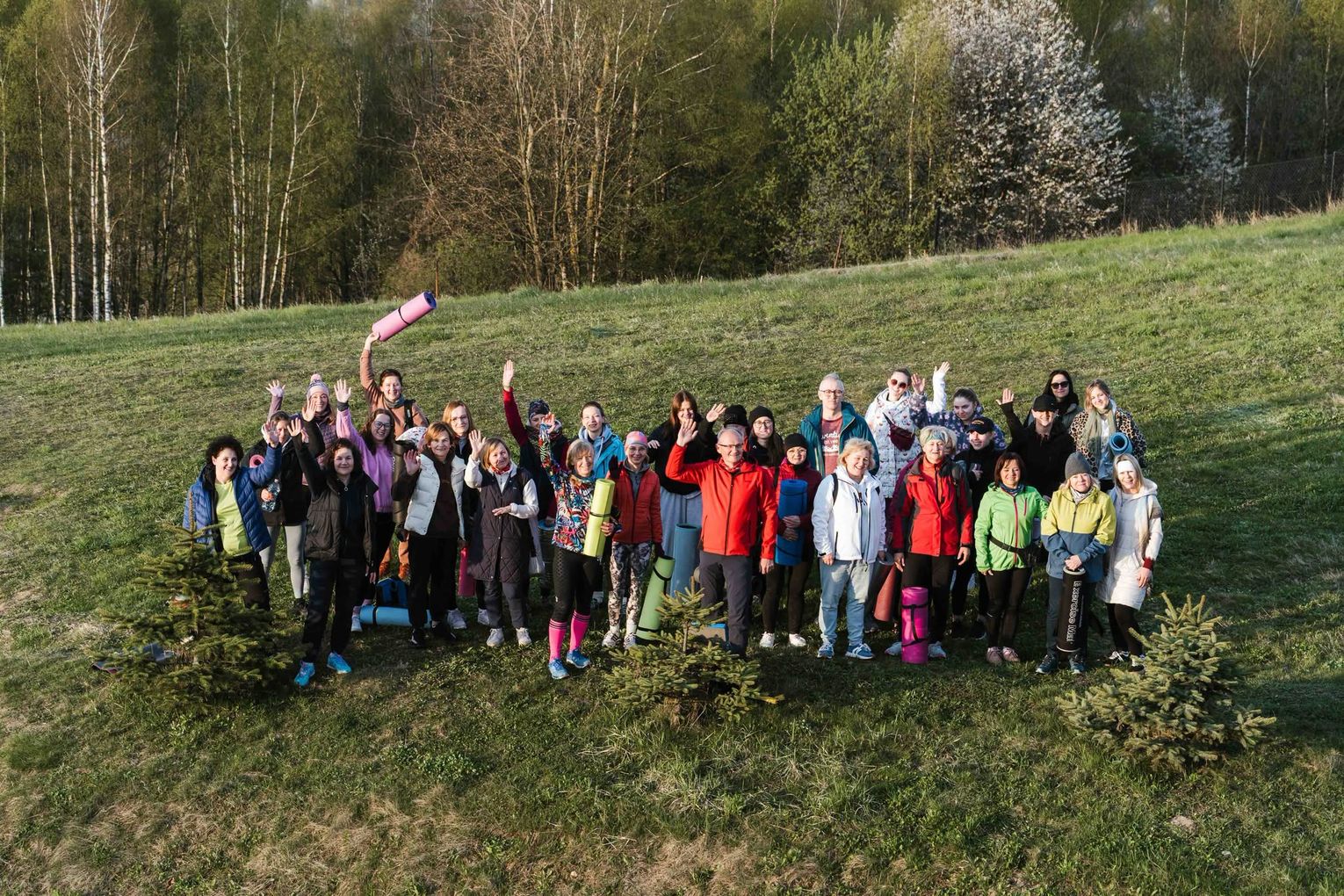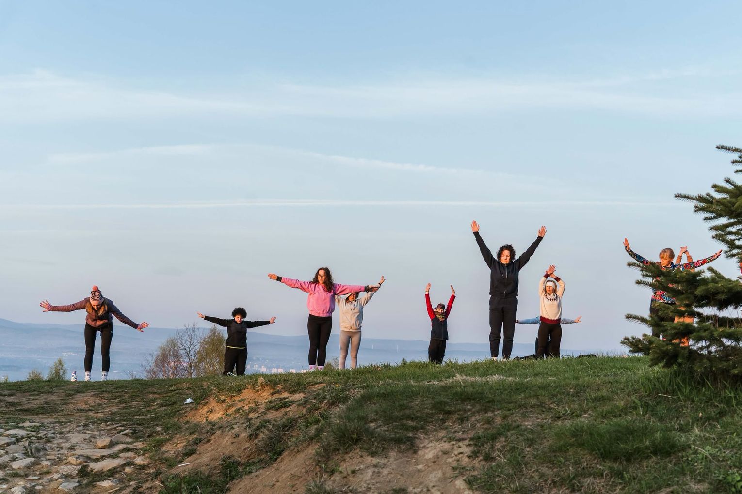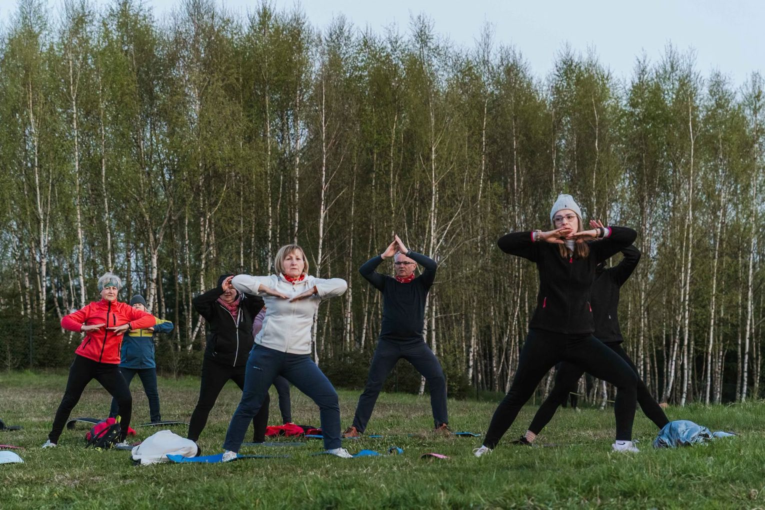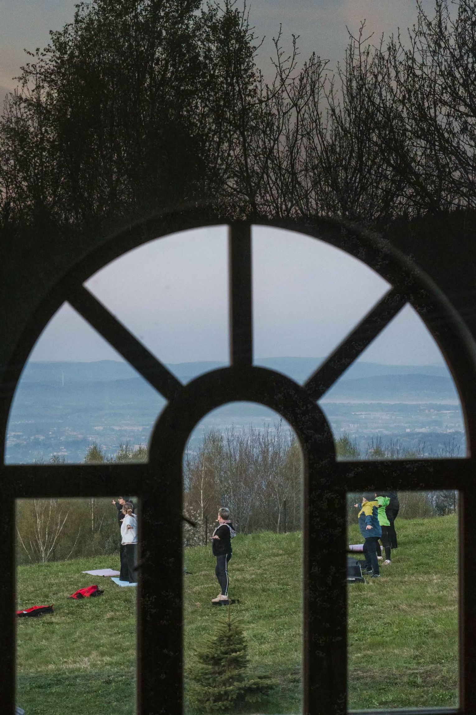 Mimo chłodnego poranka uczestnikom towarzyszyła wyjątkowa atmosfera – pełna radości, spokoju i wewnętrznego wyciszenia. Wędrówka zakończyła się na szczycie, gdzie wśród malowniczych krajobrazów i pierwszych promieni słońca rozpoczęła się sesja jogi prowadzona przez Lidię Urbanek. Zajęcia pozwoliły uczestnikom odnaleźć równowagę między ciałem a umysłem, a jednocześnie na chwilę zatrzymać się i w pełni doświadczyć piękna budzącego się dnia.